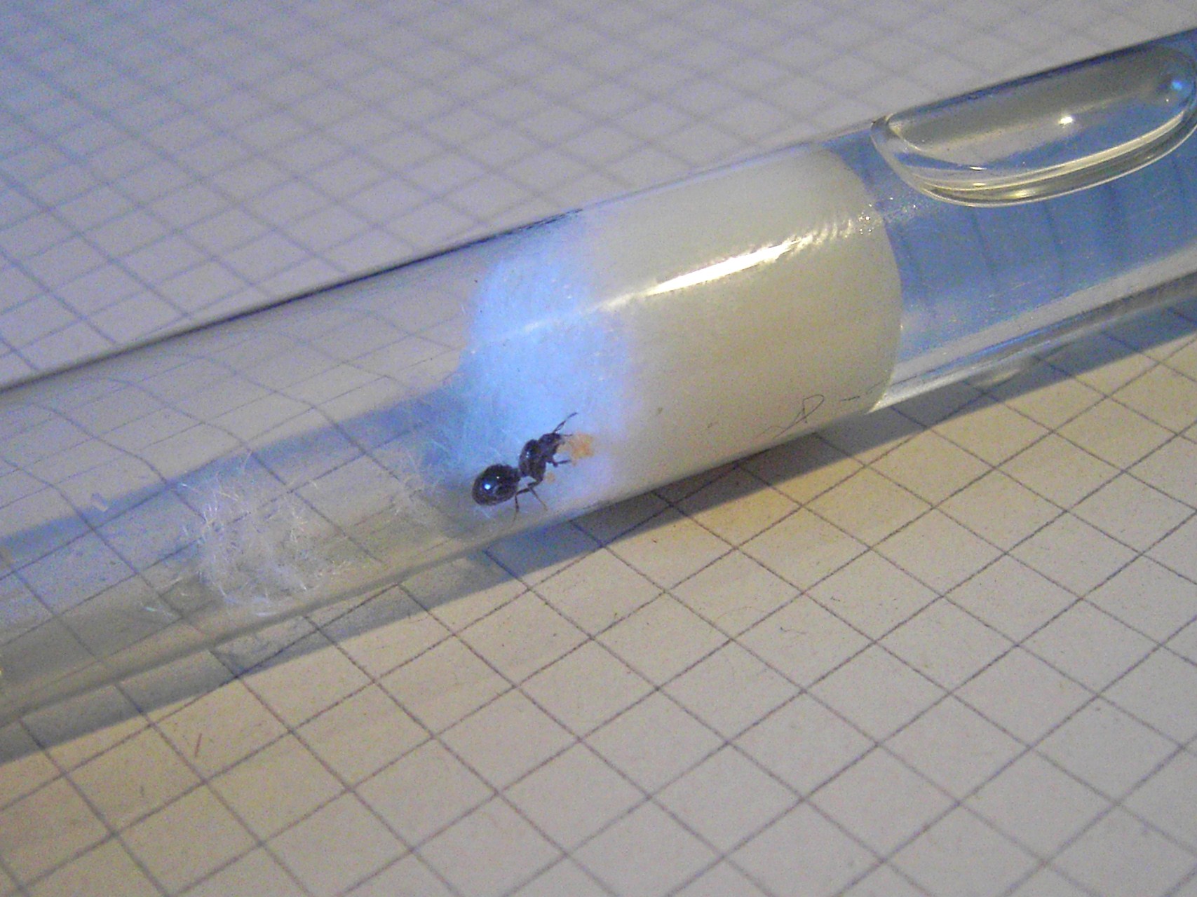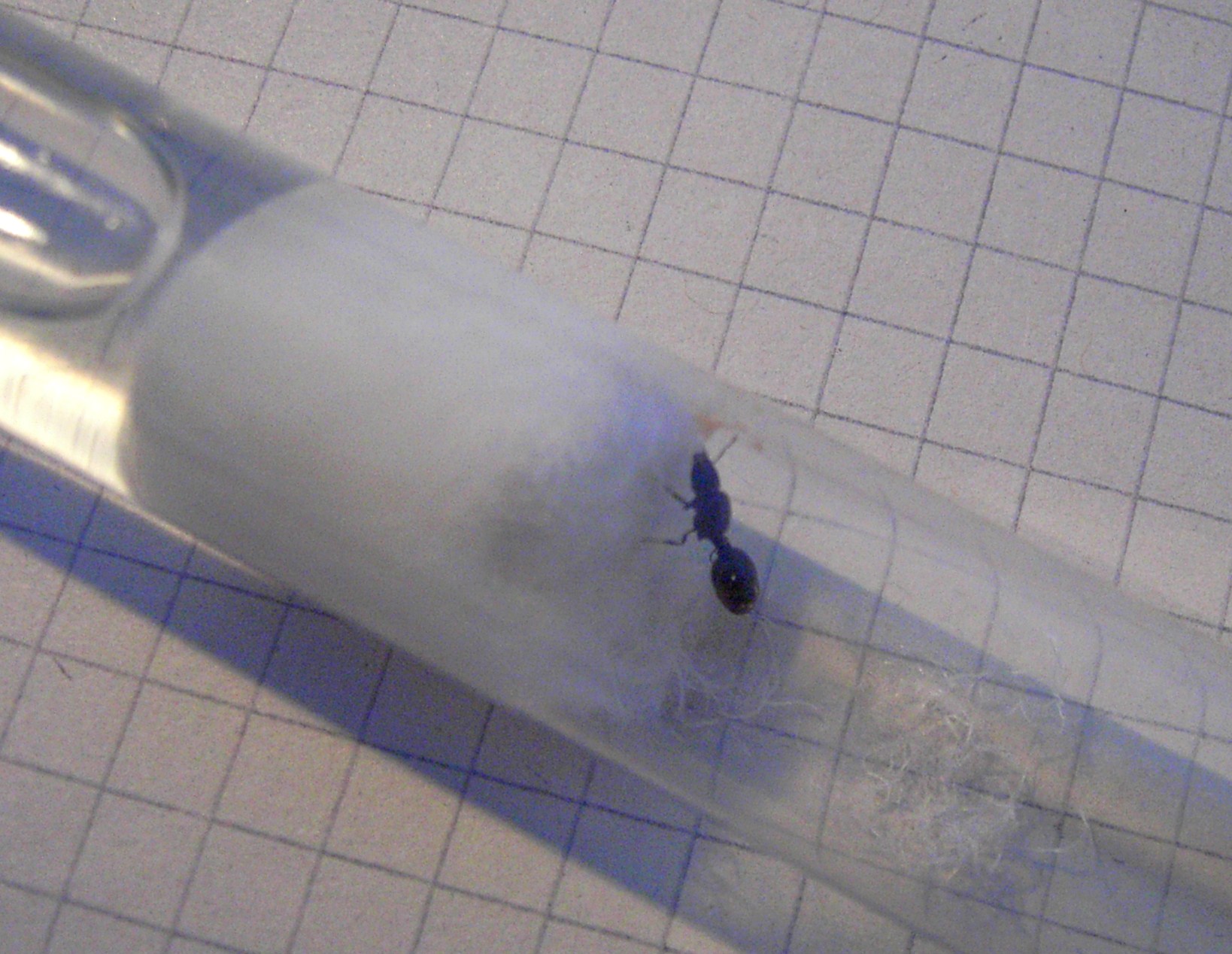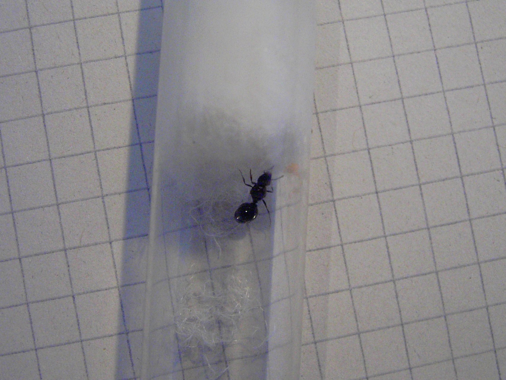 [font=Calibri]letzten Donnerstag den 7.6. lief mir eine Königin über den Weg die ich auch sofort einfing und mit nach Hause nahm. Der Fundort ist ein kleiner Hof einer Großküche der gepflastert ist, die Fundzeit war 10 Uhr vormittags. Zuhause kam sie erst einmal in ein RG was ich mit Alufolie umwickelt hatte. Zu meiner Überraschung musste ich feststellen dass die Königin am nächsten Tag schon Eier hatte. Heute eine Woche später konnte ich am selben Ort wieder mehrere Dieser Königinnen beobachtet. Ich konnte beobachten wie einige der Königinnen hin und wieder in kleinen Löschern in den Fugen der Pflastersteine verschwanden. Kann es sein das es sich um eine polygyne Art handelt? Desweiteren konnte ich auch noch einige geflügelte Tiere entdecken. [/font]
