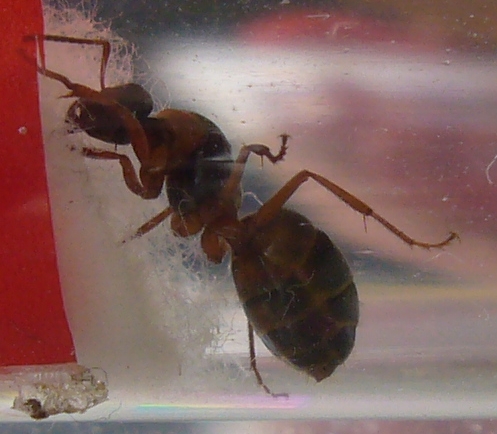 Im Verhalten gibt es wenig AuffĂ€lligkeiten. Sie scheint noch keine Eier gelegt zu haben. Ăber Nacht hat Sie ne Menge Watte vom RG-Verschluss abgezupft. Erst lag es ĂŒberall verstreut im RG, aber dann sah es fast so aus, als wĂŒrde Sie sich damit ein Bettchen bauen. Jetzt hat Sie die ganz Watte zusammengetragen und in eine Ecke gequetscht. Ich bin mir nicht sicher, aber möglicherweise hat Sie damit eine undichte Stelle am Wassertank abgedichtet. Zumindest sieht es sehr danach aus.