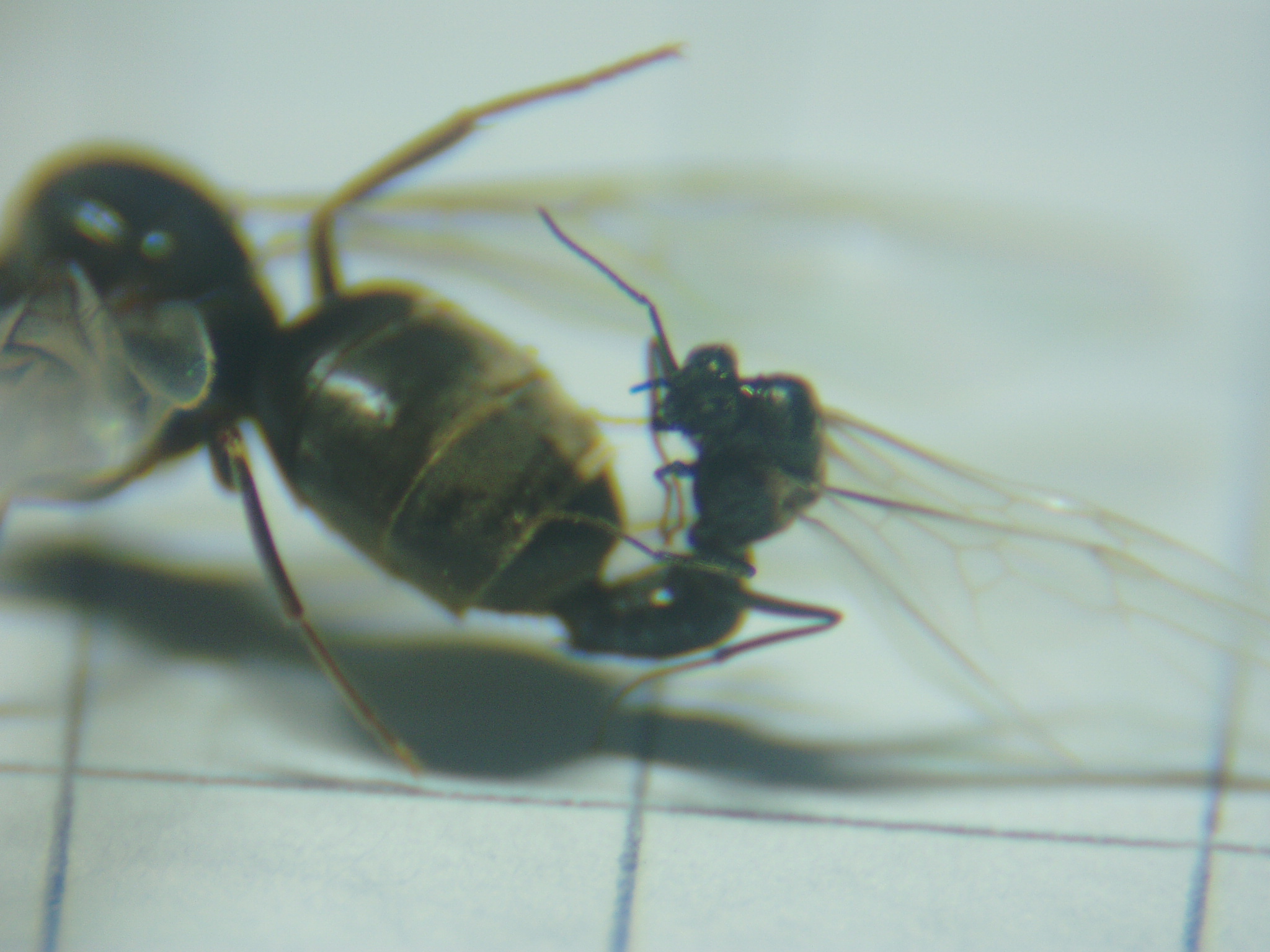 Ich habe einige der Königinnen eingesammelt. Sie sind zwischen 6 und 8 mm lang. Eine habe ich einzeln ins RG gesetzt, in einem anderen gründen 6 Königinnen in Pleometrose. Also zumindest haben Sie sich bis jetzt nichts getan. Sie putzen sich sogar gegenseitig. Scheint also erfolgreich zu verlaufen. Jetzt wüsste ich gerne um welche Art es sich handelt.