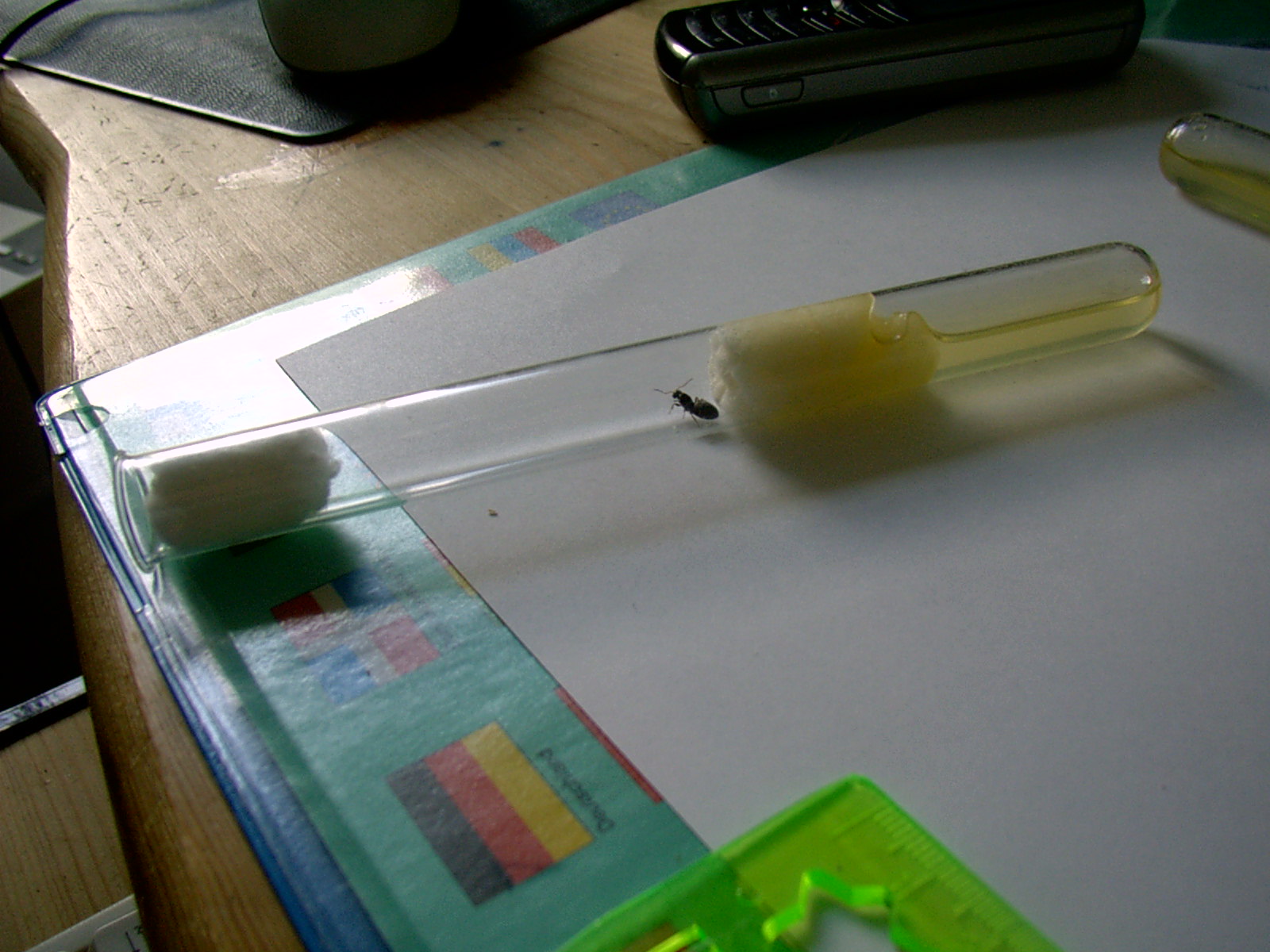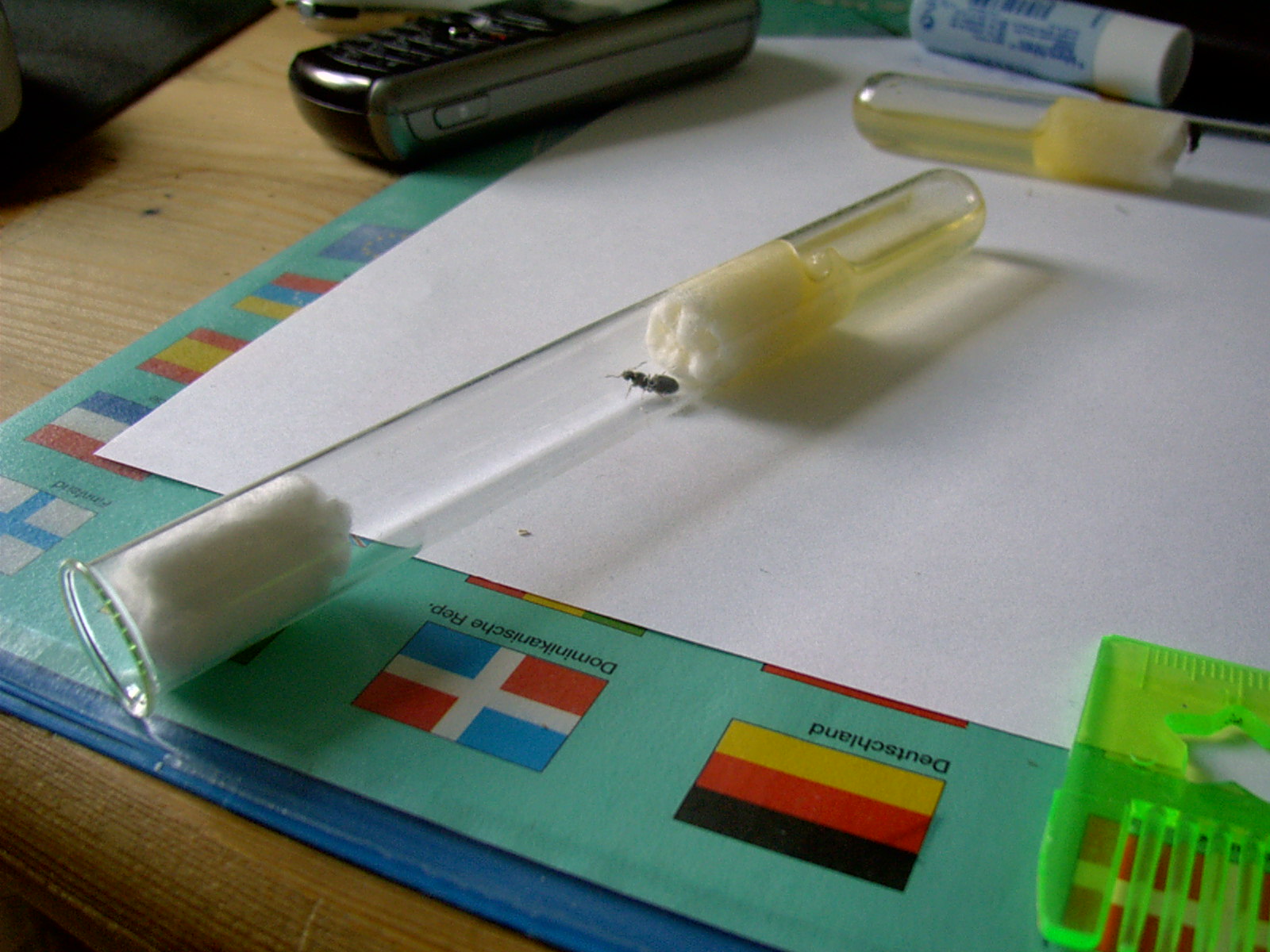 Die Ameisen befinden sich in Reagenzgläsern mit Wasser-Honig Gemisch, eine