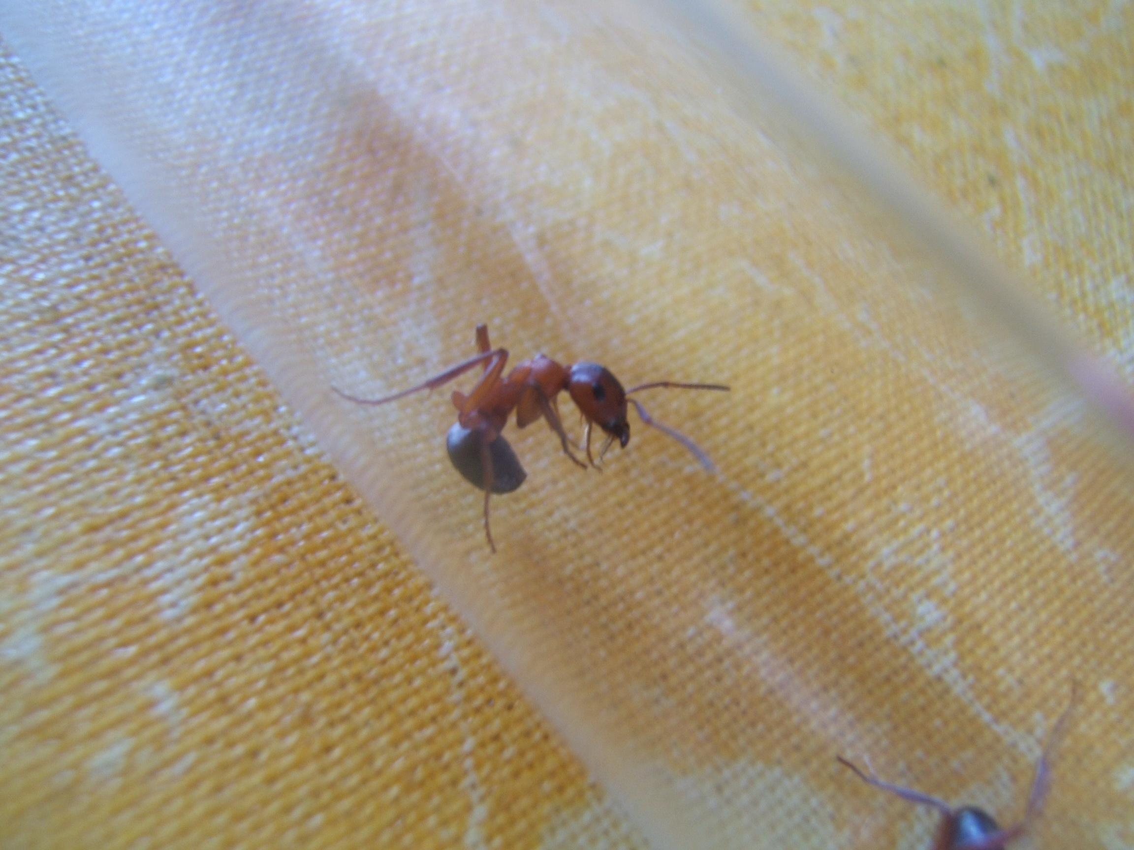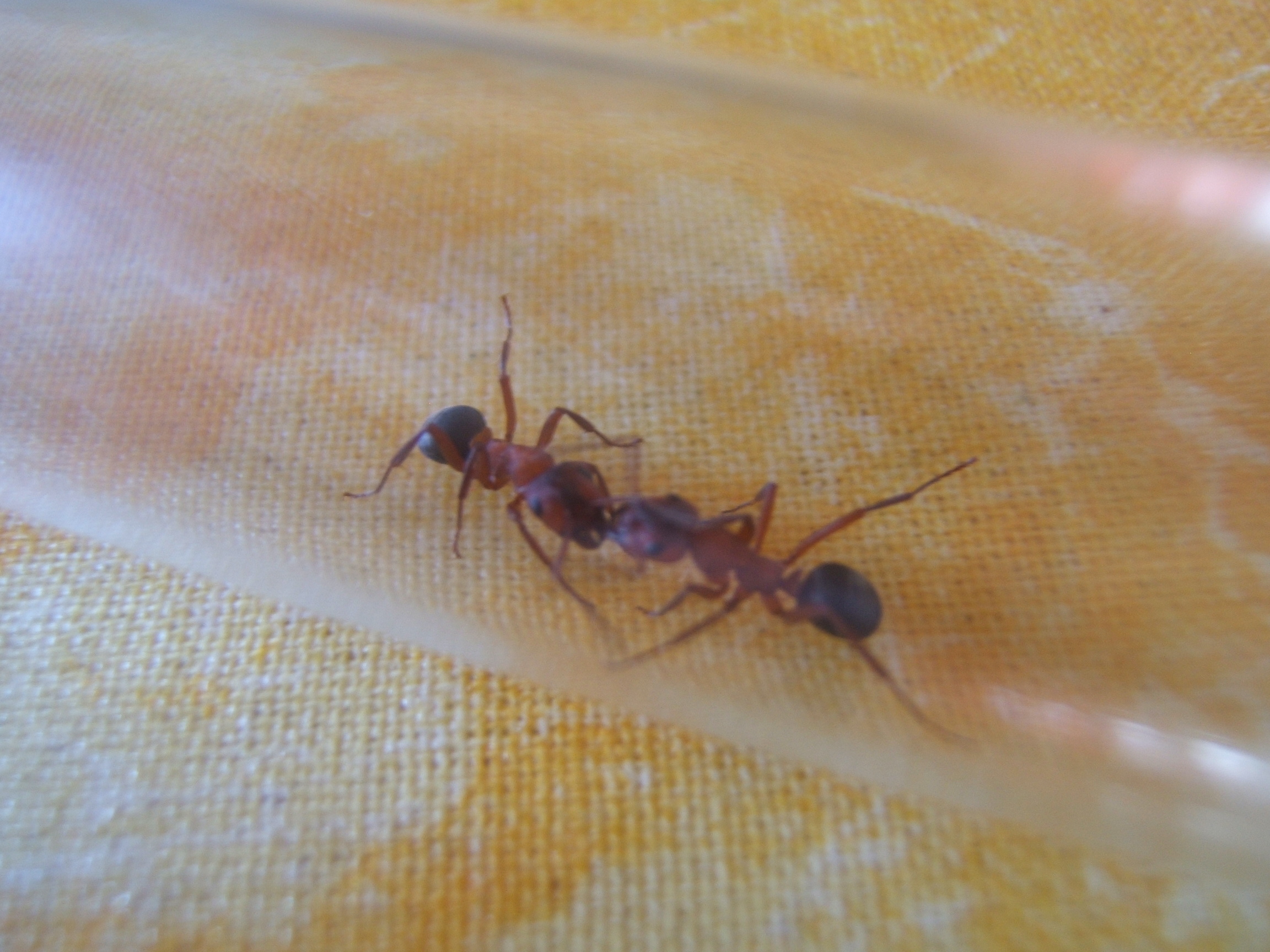 Von der Farbgebung her wĂŒrde ich auf Formica sanguinea tippen. Auf bild2 ist auch (sofern man das durch die unschĂ€rfe erkennen kann) leicht die Einkerbung des Clypeus / Kopfschilds zu erkennen. Allerdings mĂŒssten dann doch etwas schĂ€rfere Bilder des Kopfes her. Kannst ja mal schaun, ob da ein deutliche Kerbe ist.