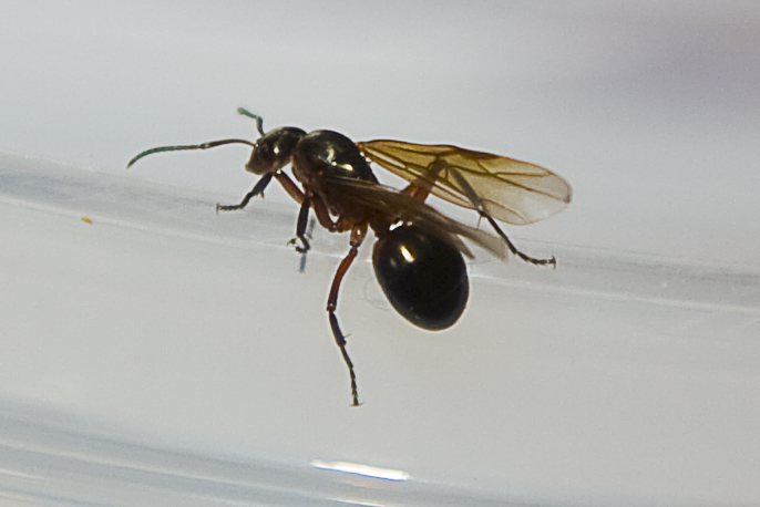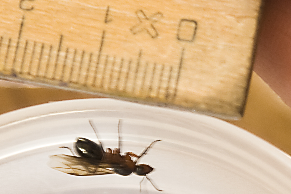 Gaster. Auch der sehr frühe Schwärmtermin würde in die selbe Richtung weisen: Formica polyctena schwärmt im Durchschnitt von allen Waldameisen am frühesten, ab Mitte April und 20 Tage früher als die sehr ähnlich aussehende Formica rufa (Seifert 2007, S. 314)
