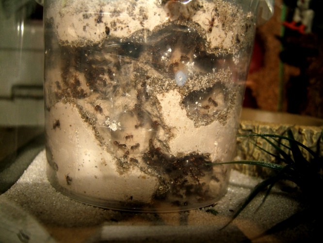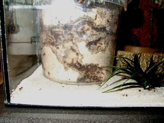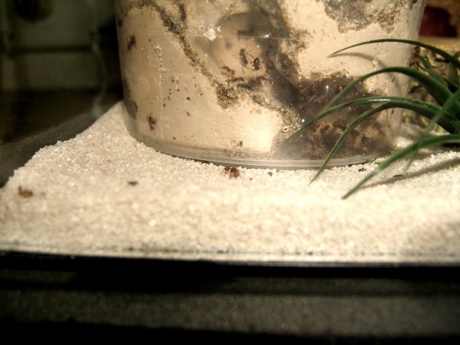 ich wollte mal berichten, wie sich meine Myrmica rubra Kolonie entwickelt, bzw. ist es kein Haltungsbericht, sondern darüber, wie sie ihre Leibspeise zu sich nehmen. Sie lieben Drosophila. Ich züchte diese selbst, das ist sehr einfach, sauber und ergiebig.