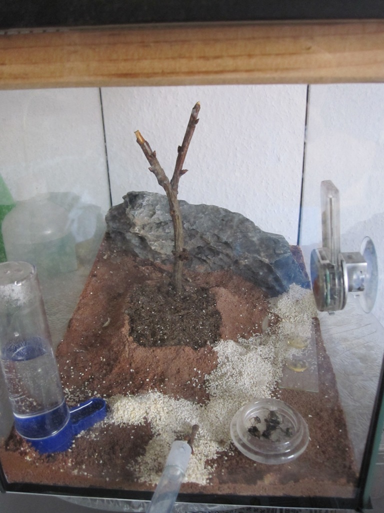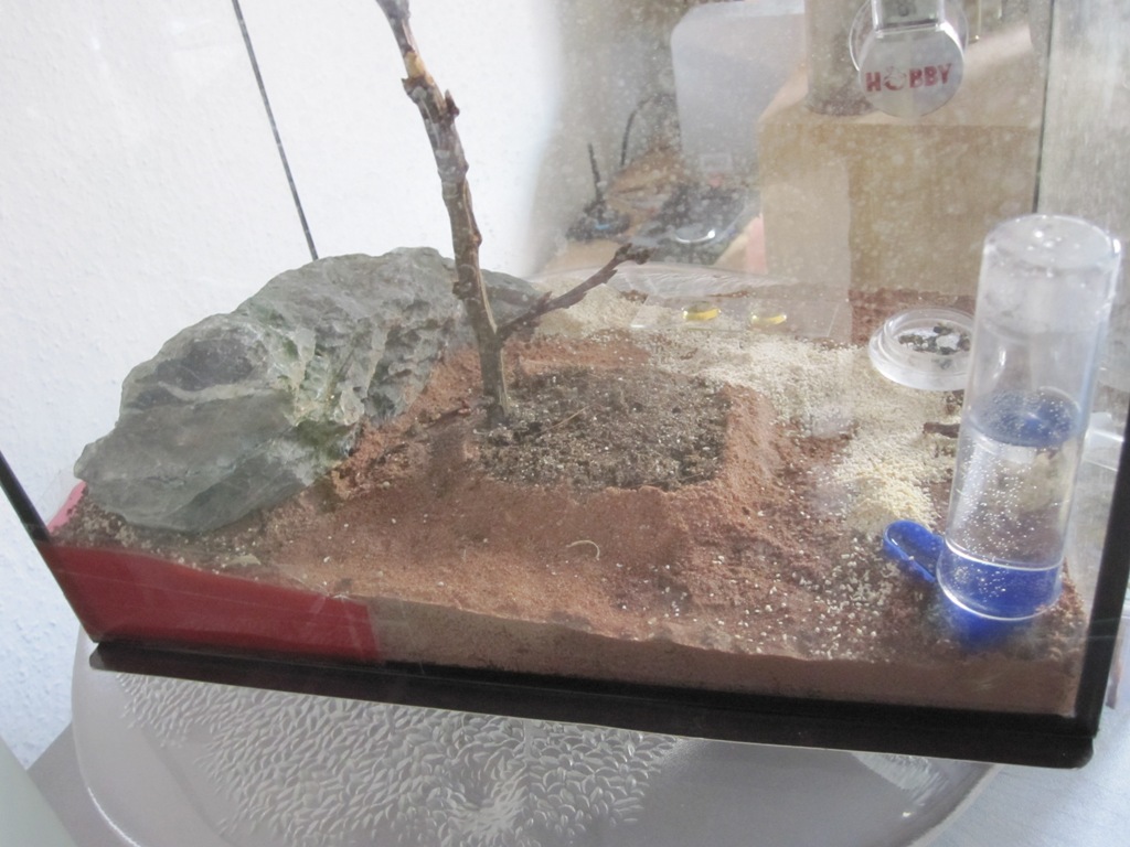 Luftfeuchtigkeit wurde immer ĂĽber 50 % gehalten und die Arena wurde einmal in der Woche befeuchtet auch das Erdnest.
