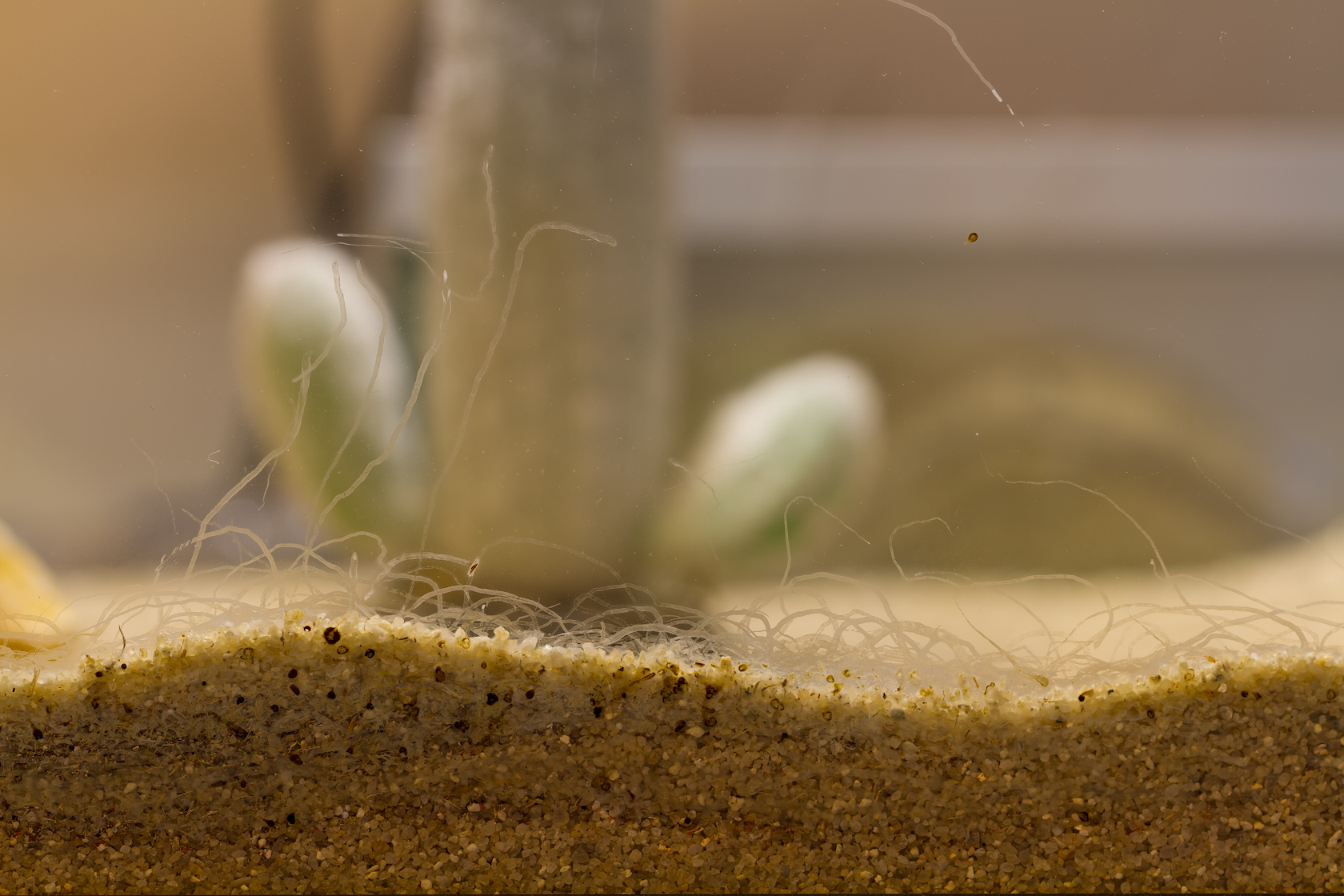 Ich halte seit etwa eineinhalb Jahren Messor cf. meridionale, nach etwa einem halben Jahr habe ich diesen, nennen wir es mal Pilz, an der Scheibe der Arena gesehen. Danach habe ich 2 mal pro Monat die Scheiben sauber gekratzt, dieser Pilz wuchs aber immer wieder nach...