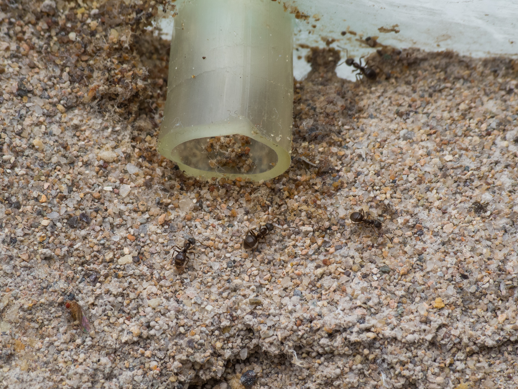 Die Ameisen sind richtig munter und verteilen sich ĂŒber die Nestkammern.