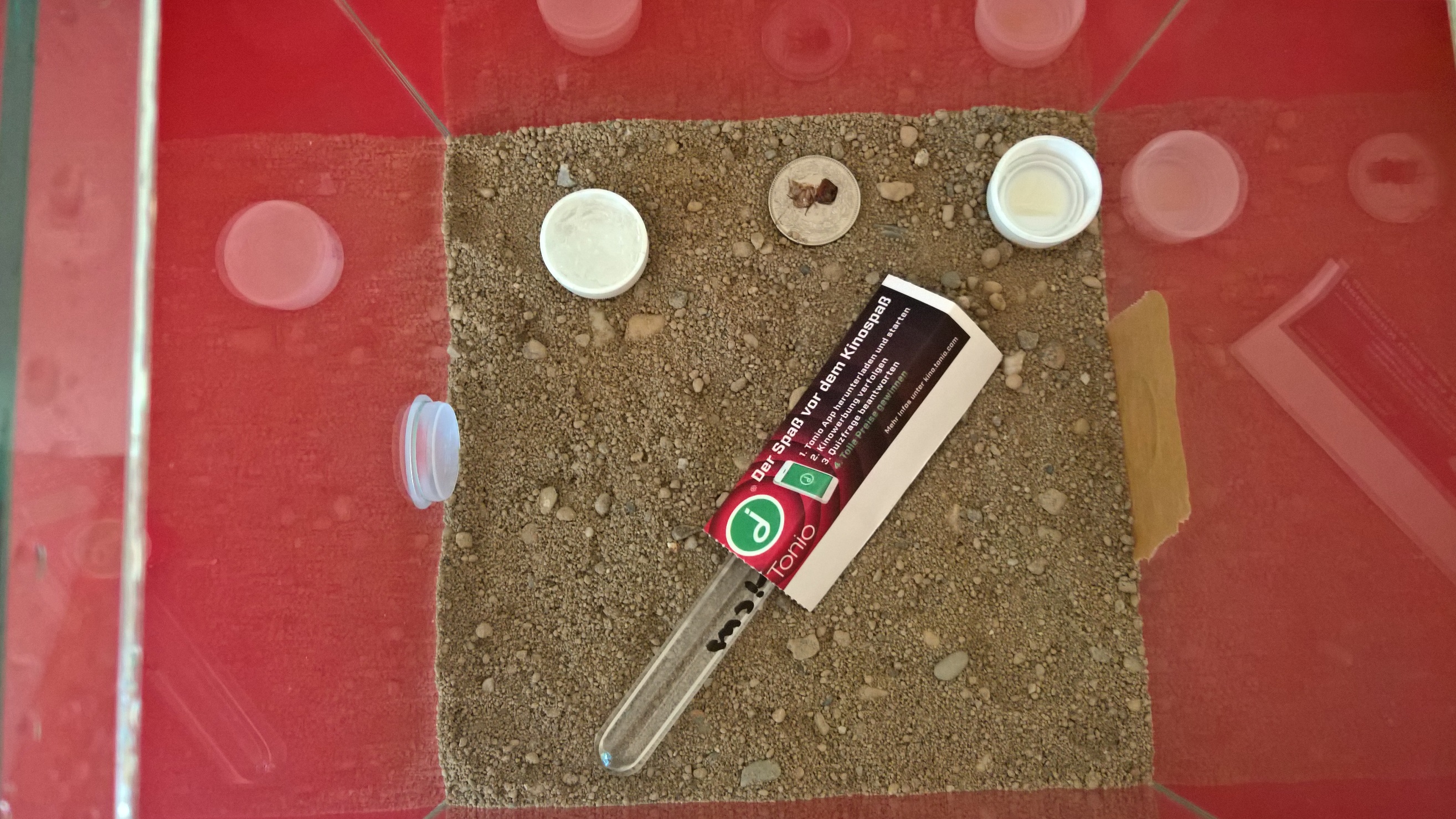 Was mach ich den jetzt? Schnell in den Keller und ne Box suchen. Von Meiner Alten Arena (2011) Sand abfüllen und alles vorbereiten.