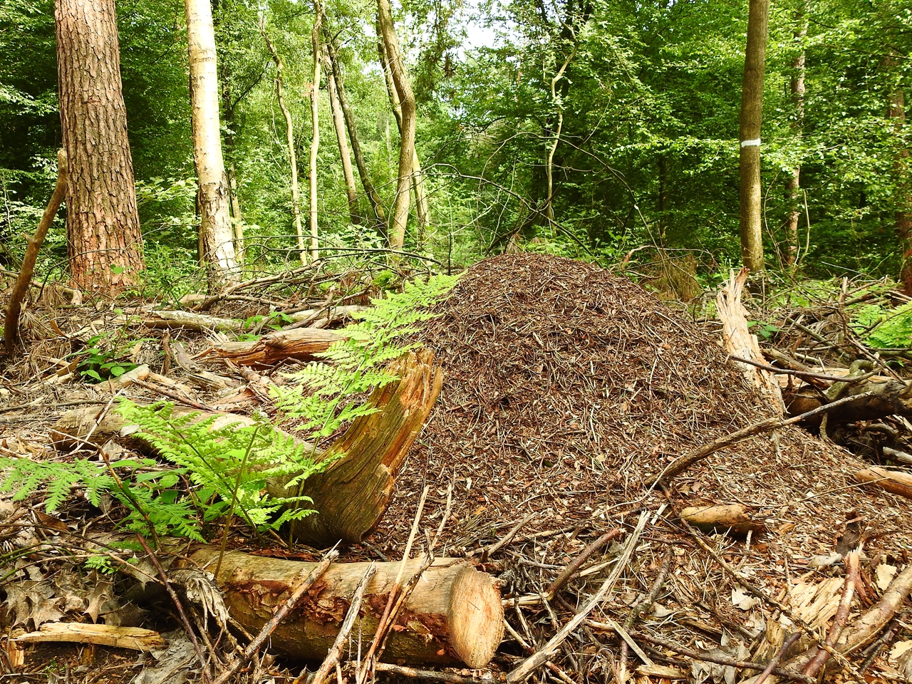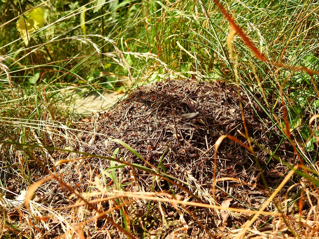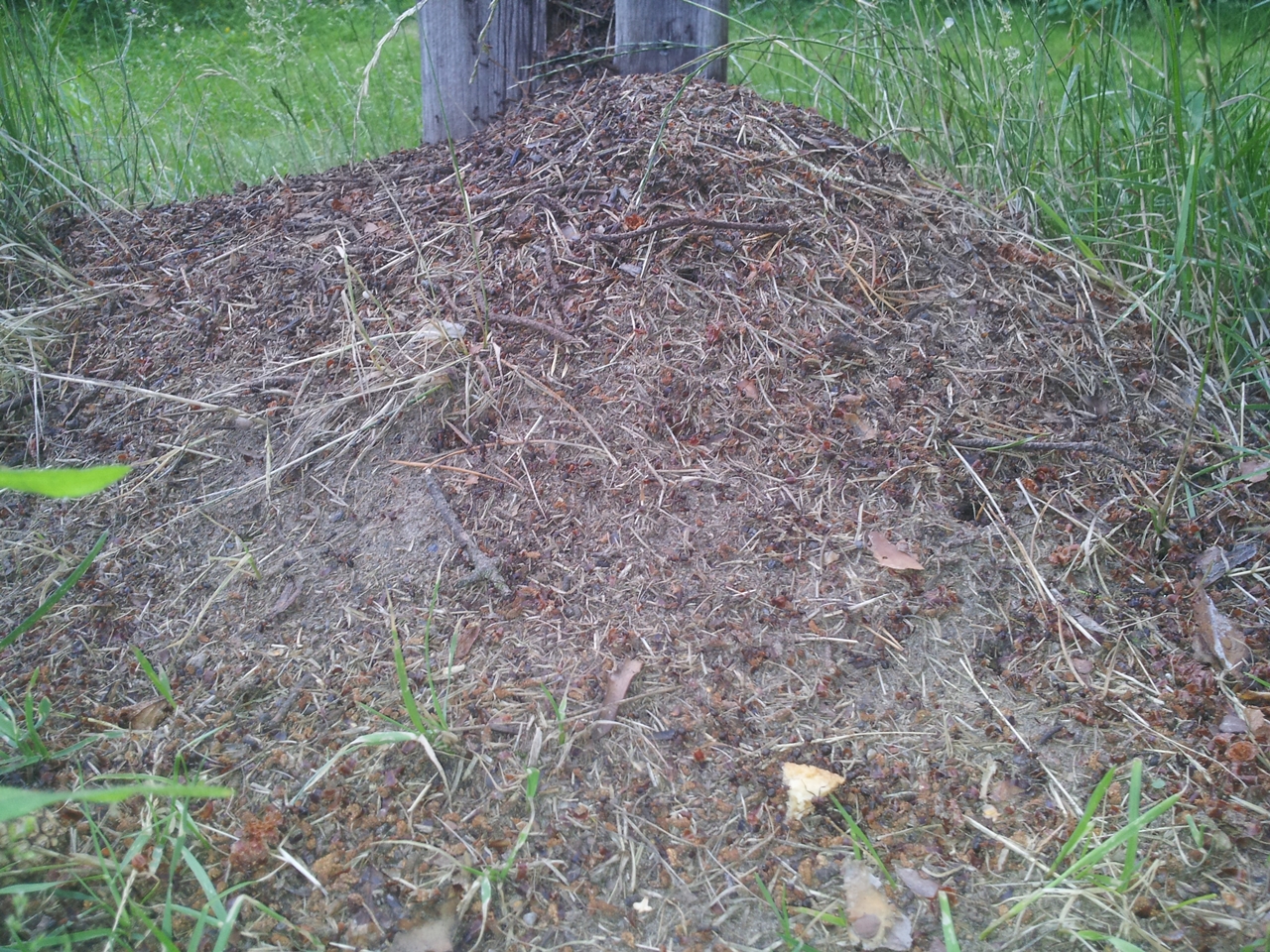 ich habe das Glück, dass in unmittelbarer Nähe, teils sogar auf dem eigenen Grundstück vom Stall meiner Freundin, viele Hügelnester von Waldameise zu finden sind. Ich gehe von Formica rufa, der roten Waldameise aus. Auf Anhieb weiß ich von etwa neun Nestern den Standort, bei genauerer Suche lassen sich aber mit Sicherheit deutlich mehr finden. Von klein bis groß sind alle Nestgrößen zu finden. Hier mal ein paar Bilder.