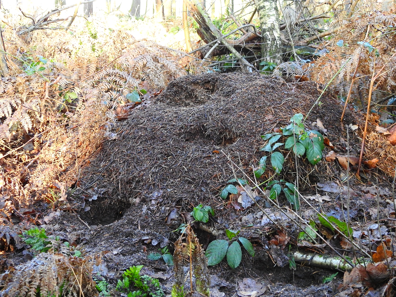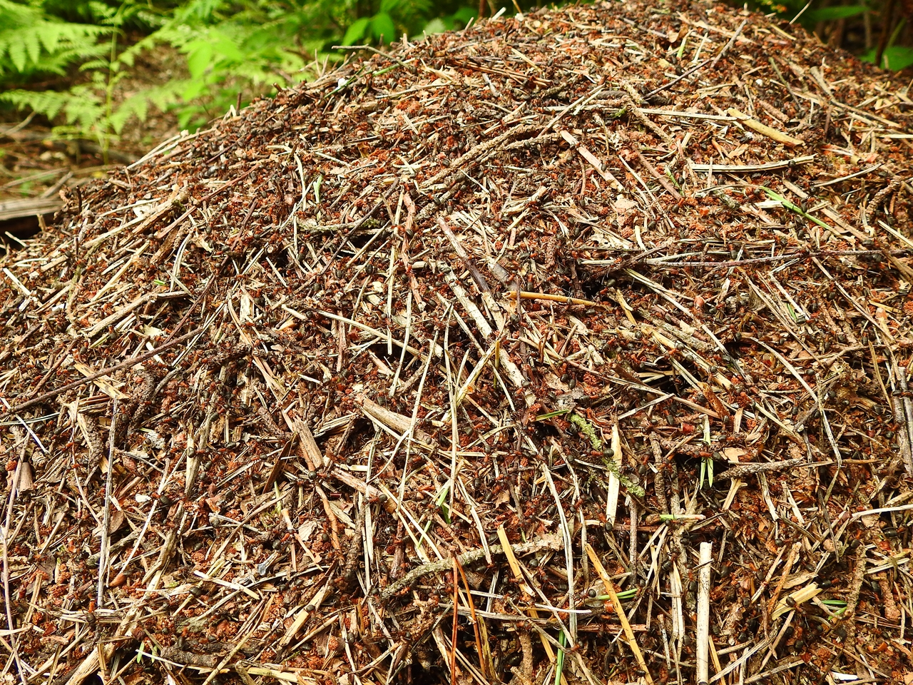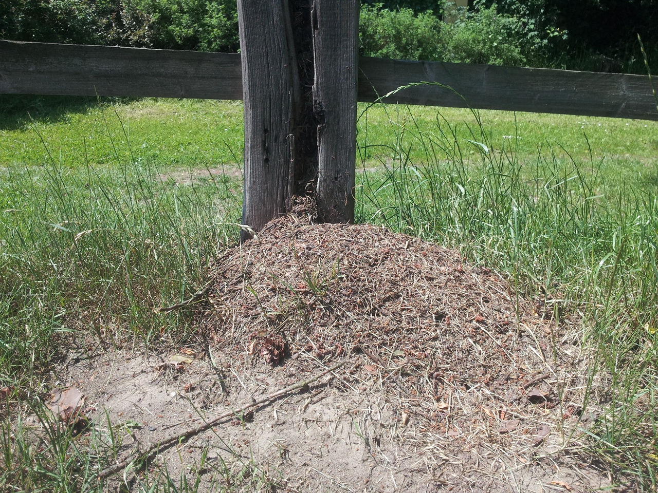 ich habe das Glück, dass in unmittelbarer Nähe, teils sogar auf dem eigenen Grundstück vom Stall meiner Freundin, viele Hügelnester von Waldameise zu finden sind. Ich gehe von Formica rufa, der roten Waldameise aus. Auf Anhieb weiß ich von etwa neun Nestern den Standort, bei genauerer Suche lassen sich aber mit Sicherheit deutlich mehr finden. Von klein bis groß sind alle Nestgrößen zu finden. Hier mal ein paar Bilder.