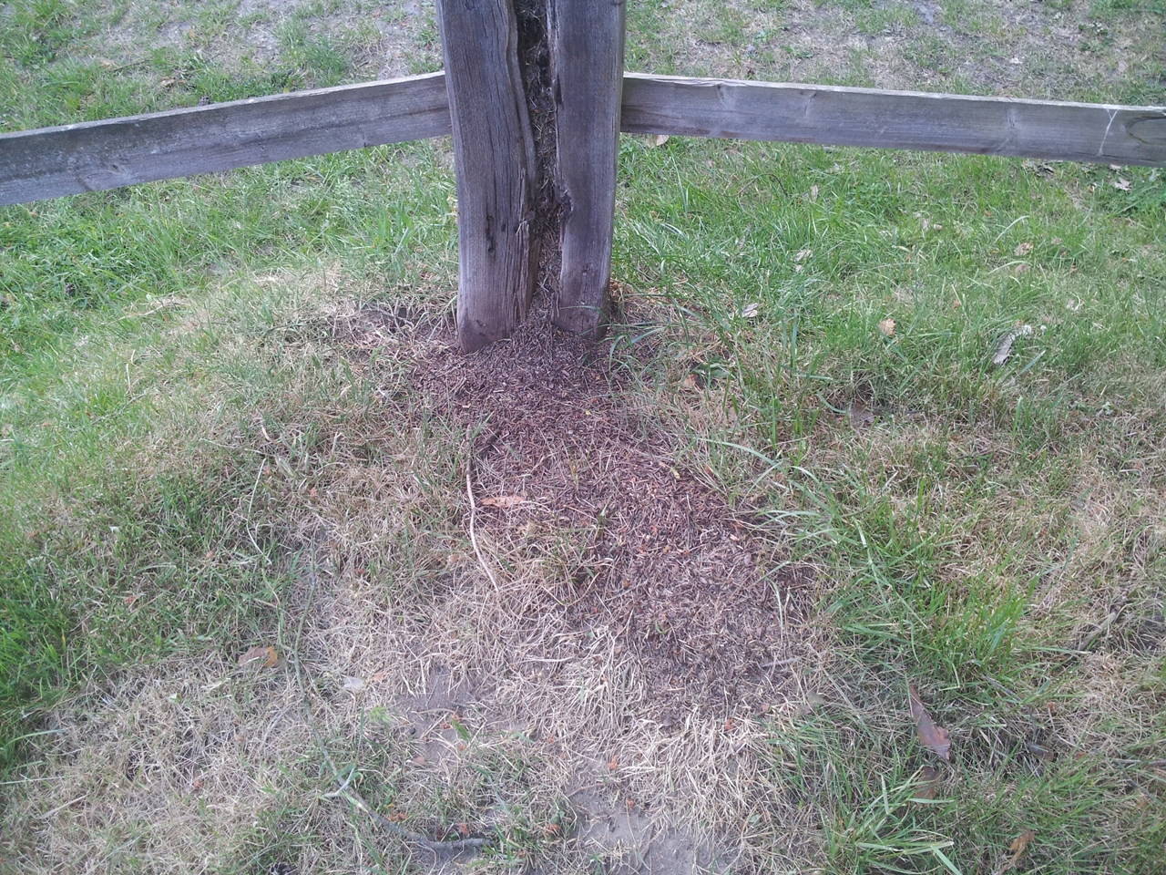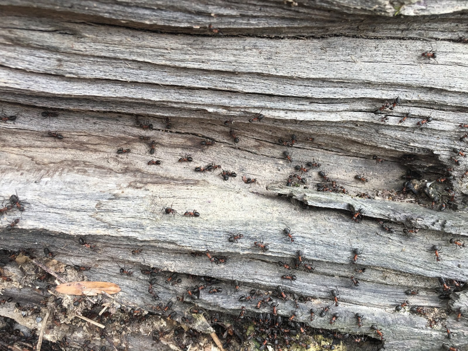 Hier gibt es eine gigantische Kolonie von (ich nehme mal an) Formica rufa - das Hauptnest scheint aus einem großen Ameisenhügel und einem großen Baumstumpf (ca. 20 Meter voneinander entfernt) zu bestehen.