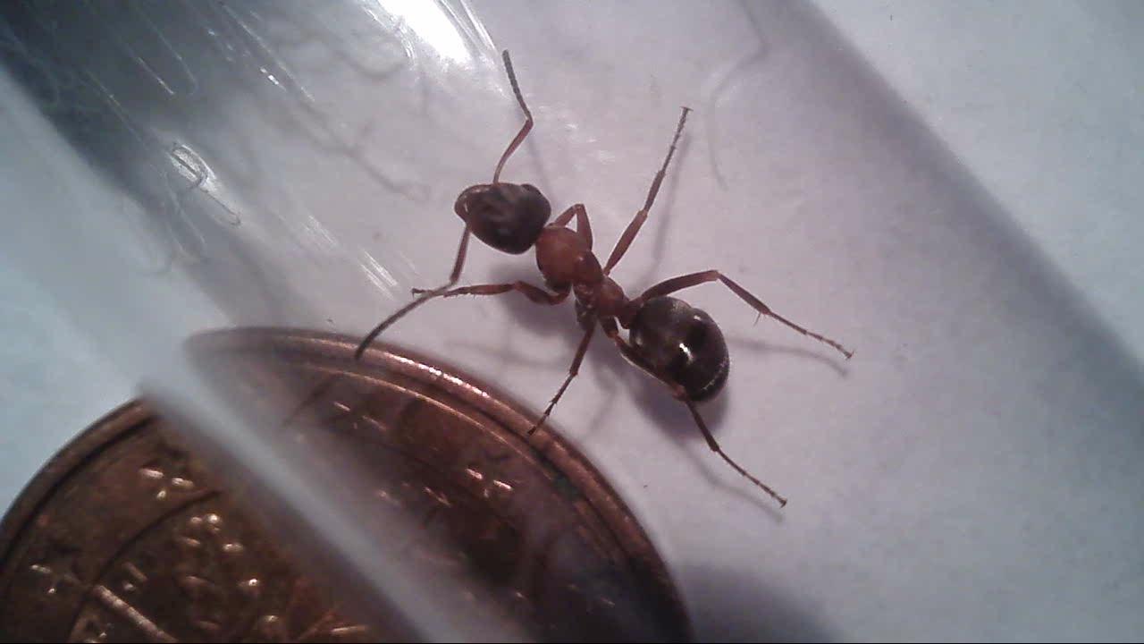 So erinnerte ich mich an ein Nest, welches ich letztes Jahr beim Vertikutieren gestoert habe, worauf mich gleich eine Hundertschaft angegriffen hat (die zwicken nicht schlecht) - heute sind diese wohl aus Ihrer Winterruhe erwacht und ich habe mir mal kurz ein Exemplar ausgeliehen, um Euch fragen zu koennen, um was fuer ein Tier es sich handelt.