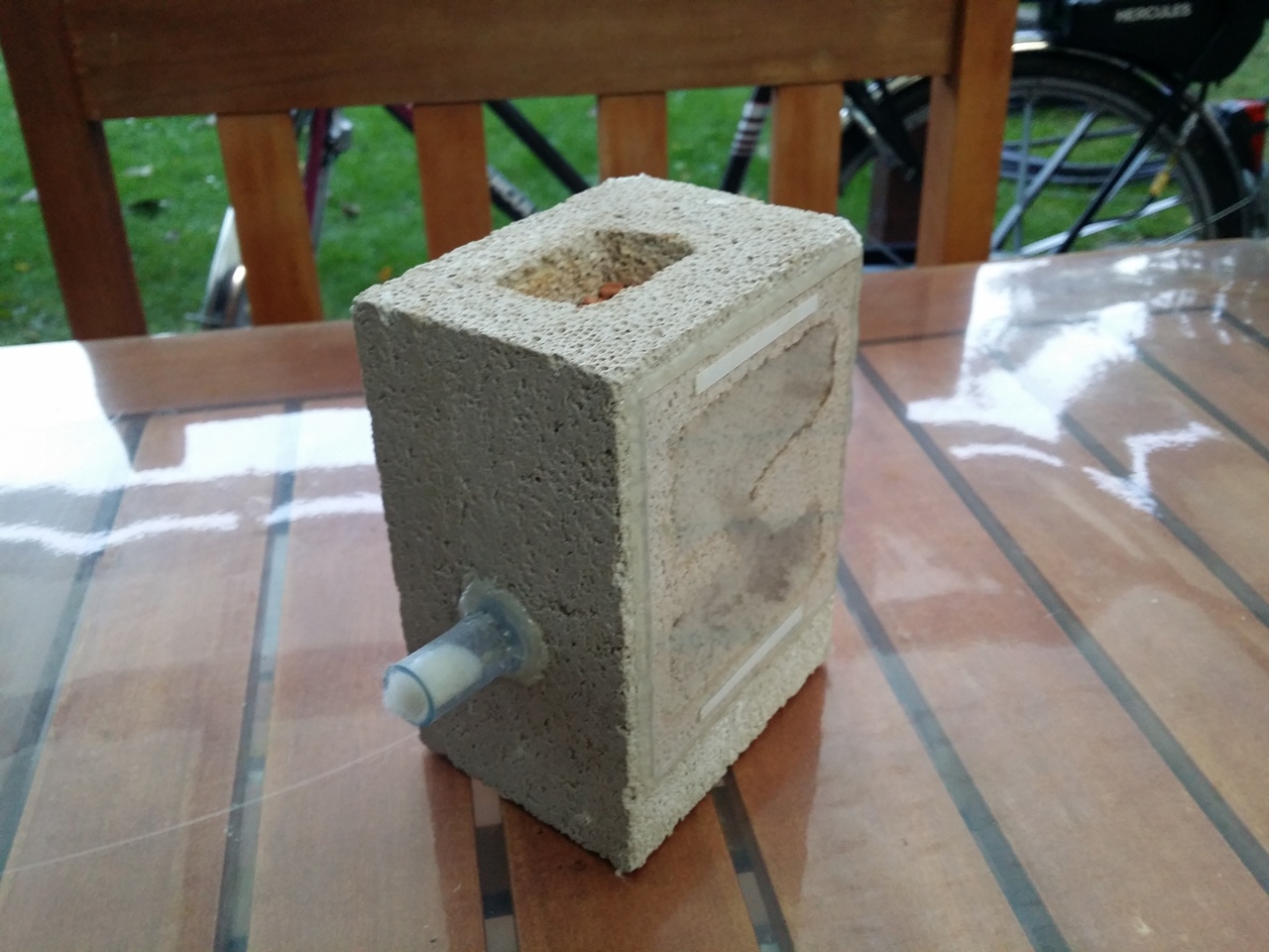 Erst am 28.05.2016 ging der Wassertank zu neige und erste Arbeiterinnen sind darin vorgedrungen. Es hat noch bis zum 07.06.2016 gedauert, bis sich die Kolonie dazu entschieden hat, vom Reagensglas ins Y-Tong Nest zu ziehen.