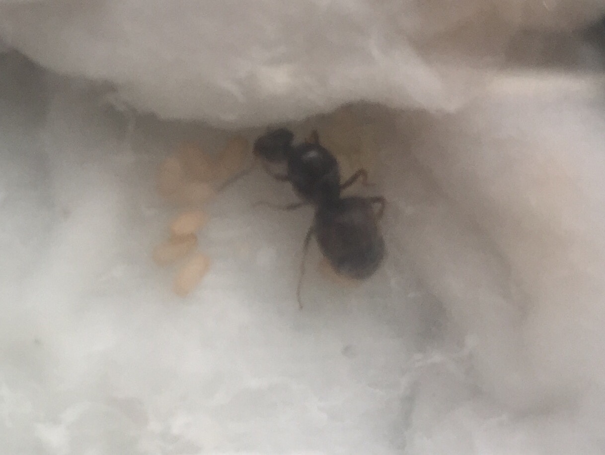 Meine EinschĂ€tzung, dass die Eier schon lange geschlĂŒpft sein mĂŒssten beruht auf den Daten in der Ameisenwiki. Dort steht fĂŒr Lasius niger eine Entwicklungsdauer der Eier von 14 Tagen.