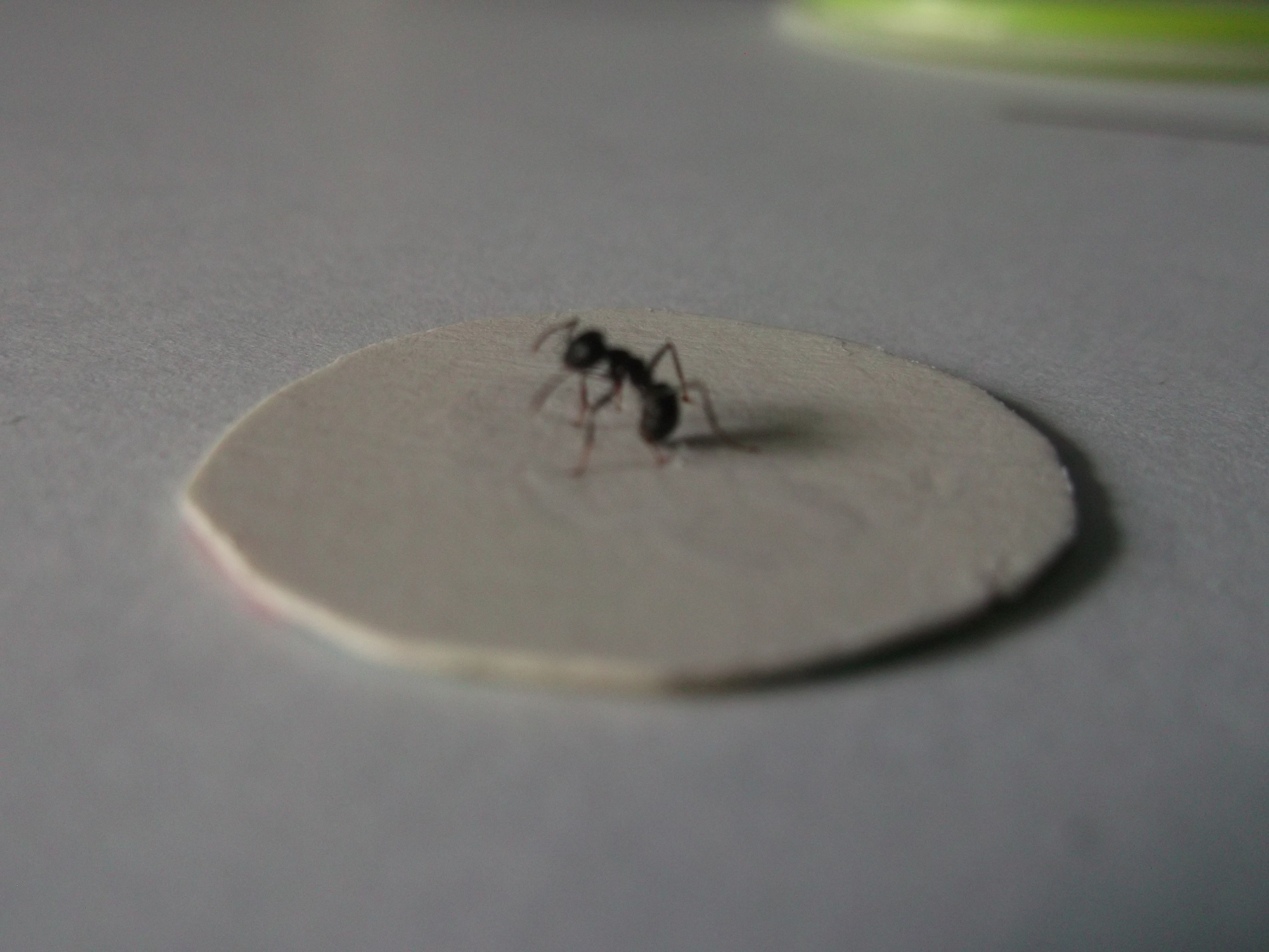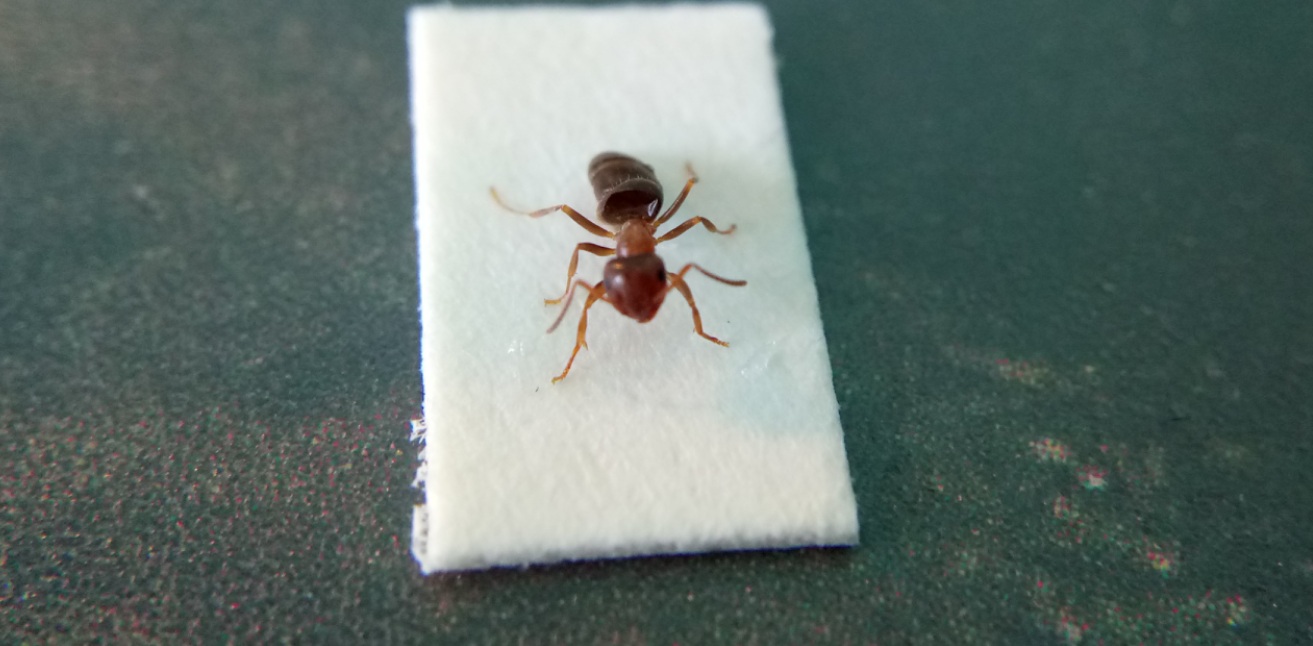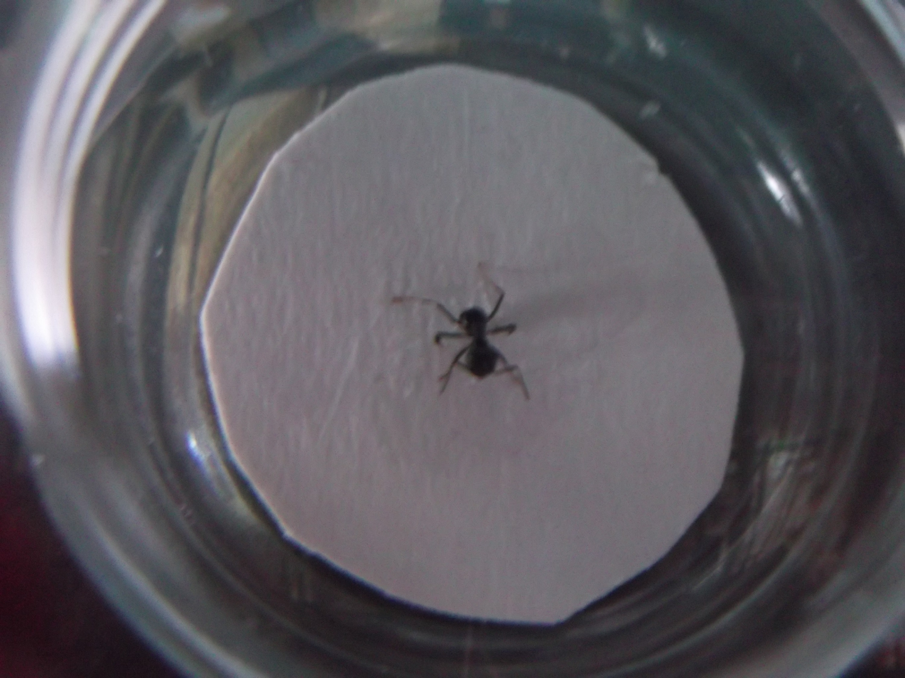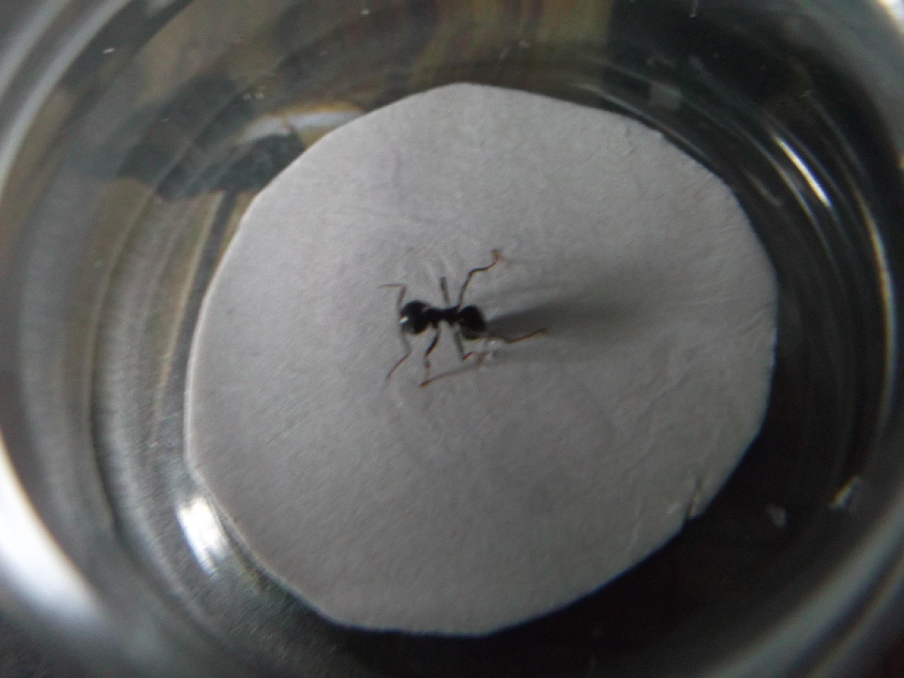 , aus der Not heraus mit Bastelkleber, es ist immer die Rede von Kleber, der wasserlöslich ist, damit man das Präparat jederzeit lösen kann, aber ich hatte so einen Kleber nicht da, noch glaube ich, dass ich die Ameise nochmal lösen muss. Ich denke solange er auf der Oberfläche hält und durchsichtig ist/wird, funktioniert jeder Kleber.