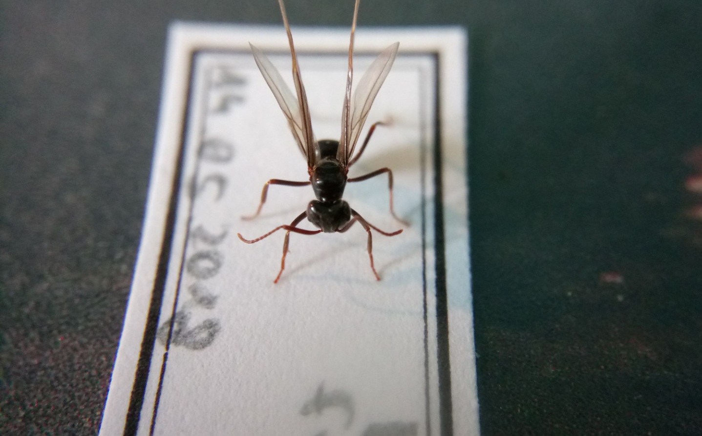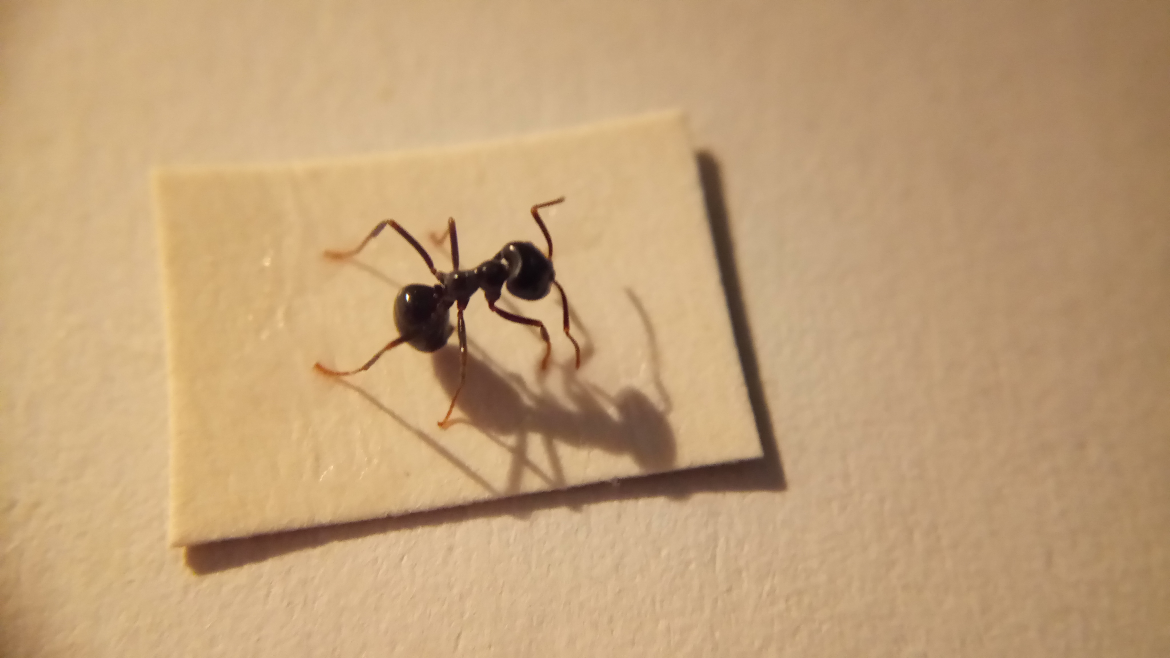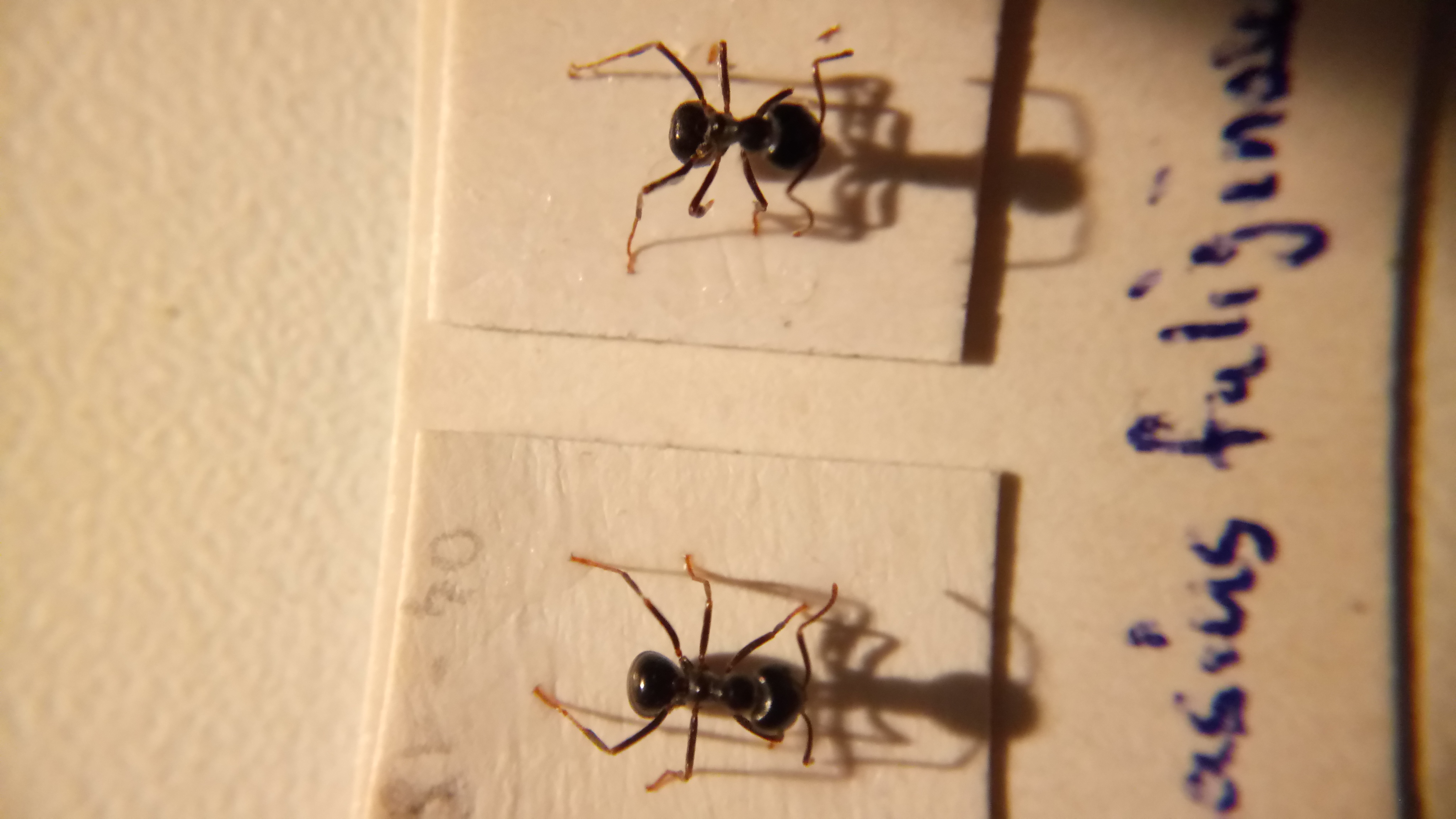 Es handelt sich um eine Lasius fuliginosus, ich habe mit Nadeln vorsichtig die Beine gerichtet, dann habe ich die Beine an ein Stück Pappe geklebt, nun lasse ich sie eine Woche an der Luft trocknen.