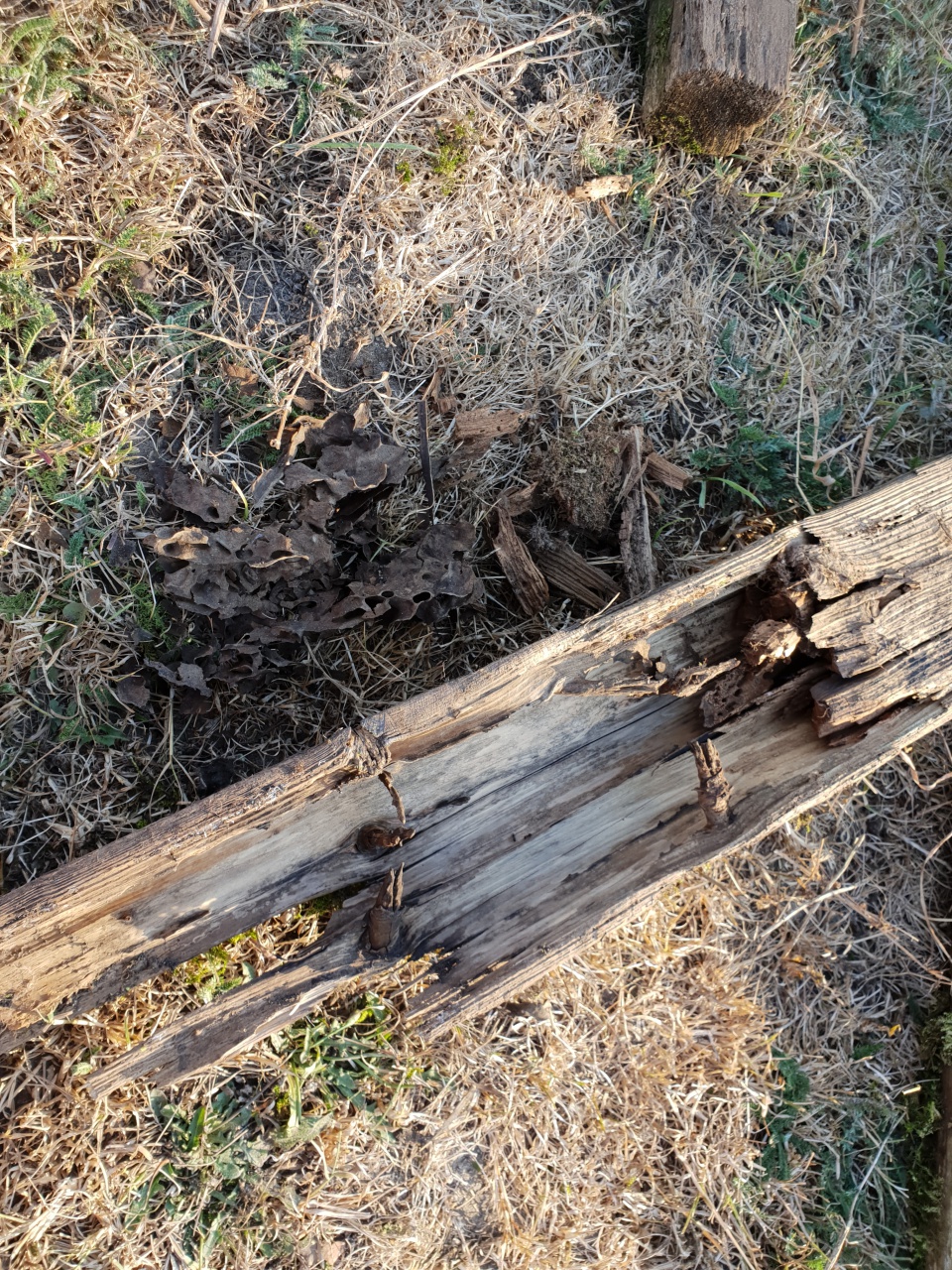 Ich habe also als erstes die Hölzer vorne vom Zaun entfernt und auch welche vom Boden beiseite gelegt (wohl eher geworfen). In so einem Holz, was bereits halb im Boden verwachsen war, befand sich auch ein Teil der Kolonie, das hatte ich allerdings erst spÀter bemerkt als ich bereits wieder aufrÀumen wollte.