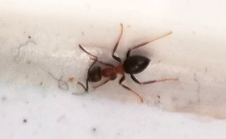 Anbei ein Foto einer Ameise. Diese ist in der Körpermitte rötlich, es gibt allerdings auch Exemplare die komplett schwarz sind, leider habe ich von diesen (noch) keine Fotos. Kann es sein das es sich hier um 2 verschiedene Arten handelt?