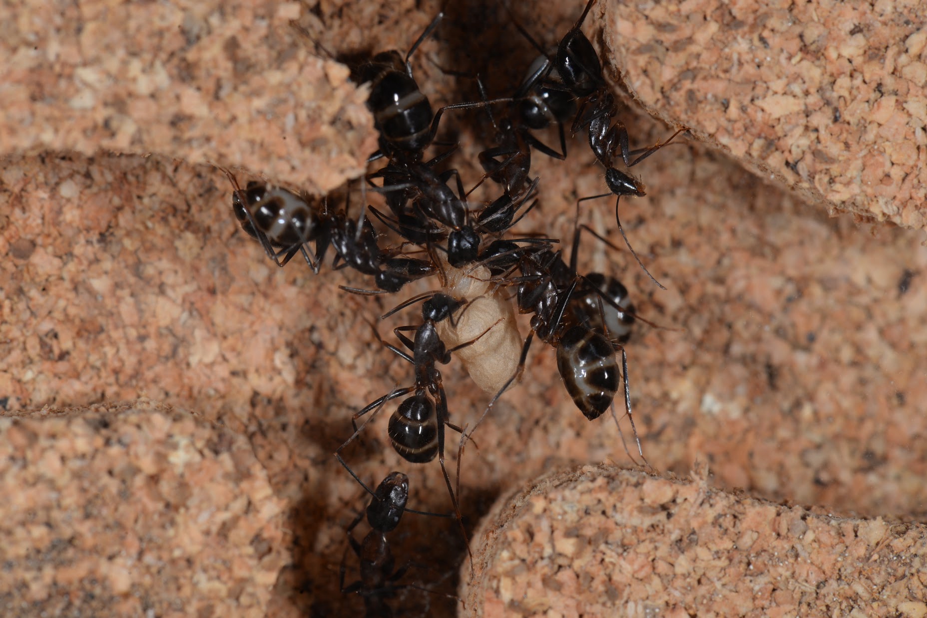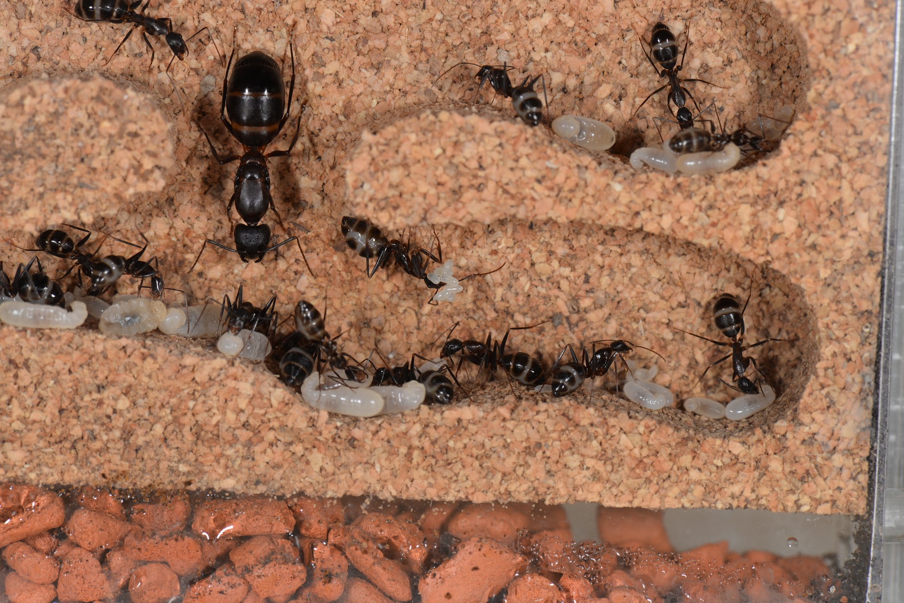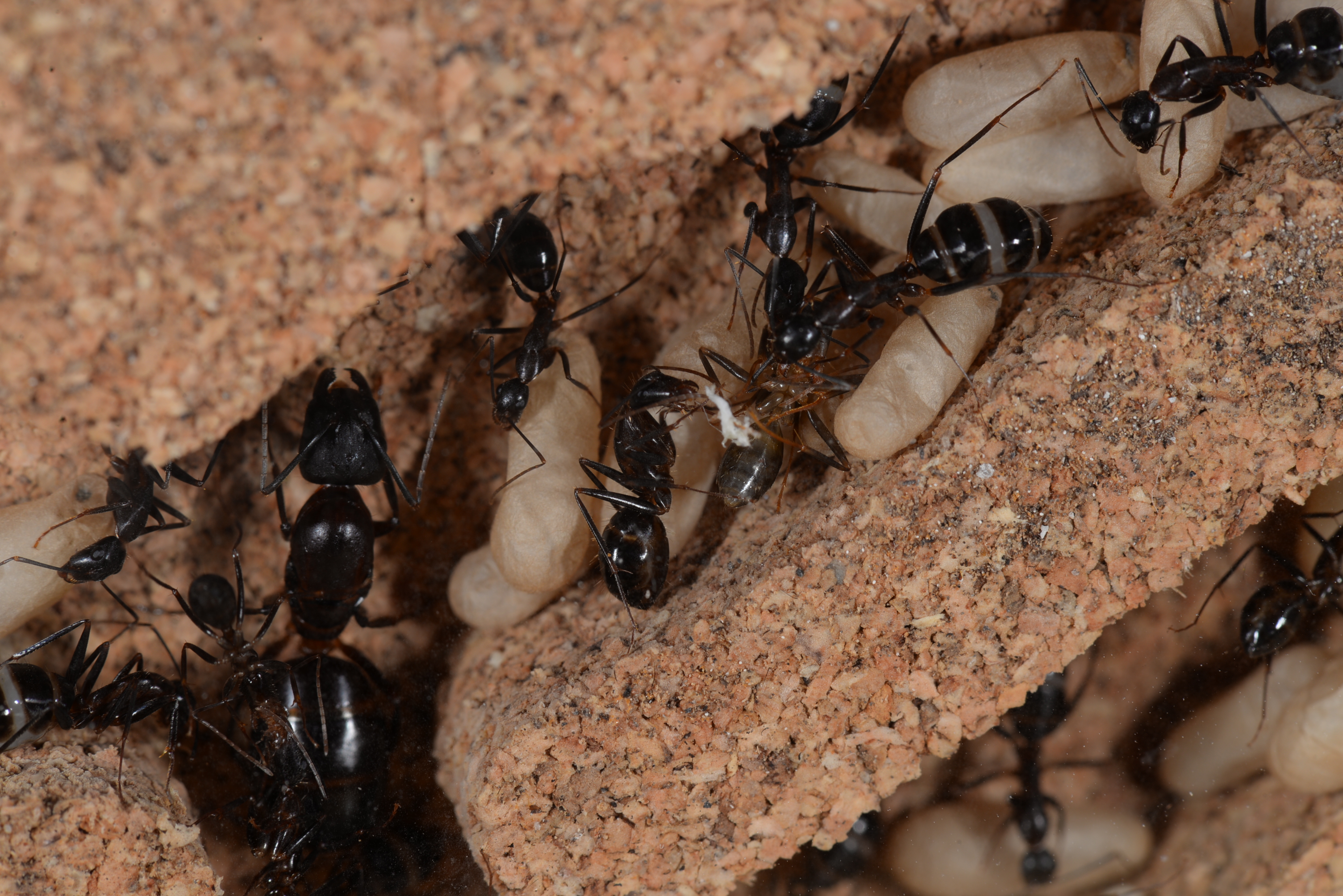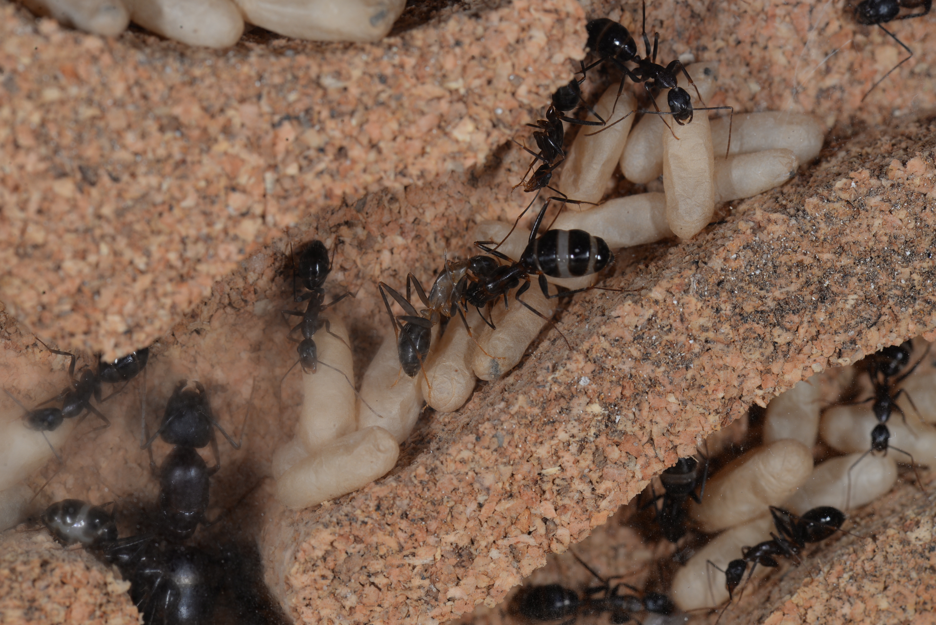 #1 Camponotus barbaricus frisst immer mal wieder Larven und Puppen