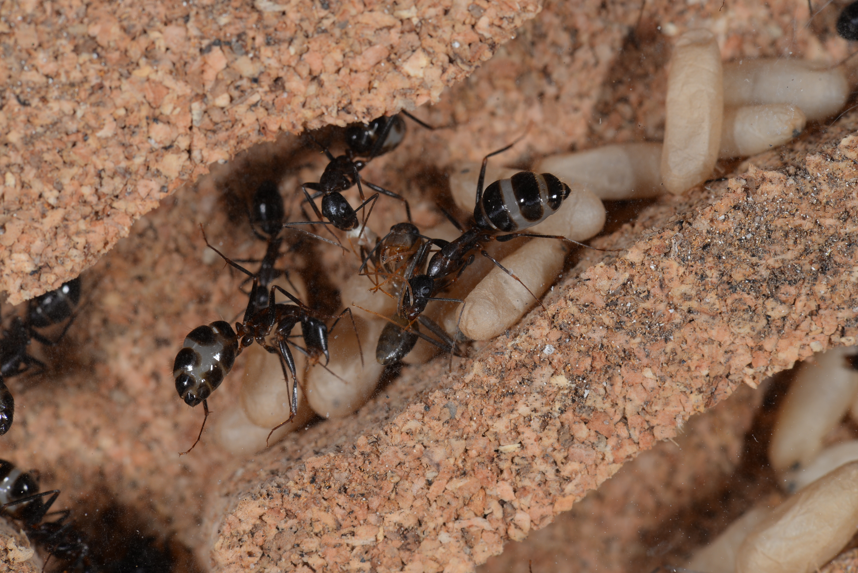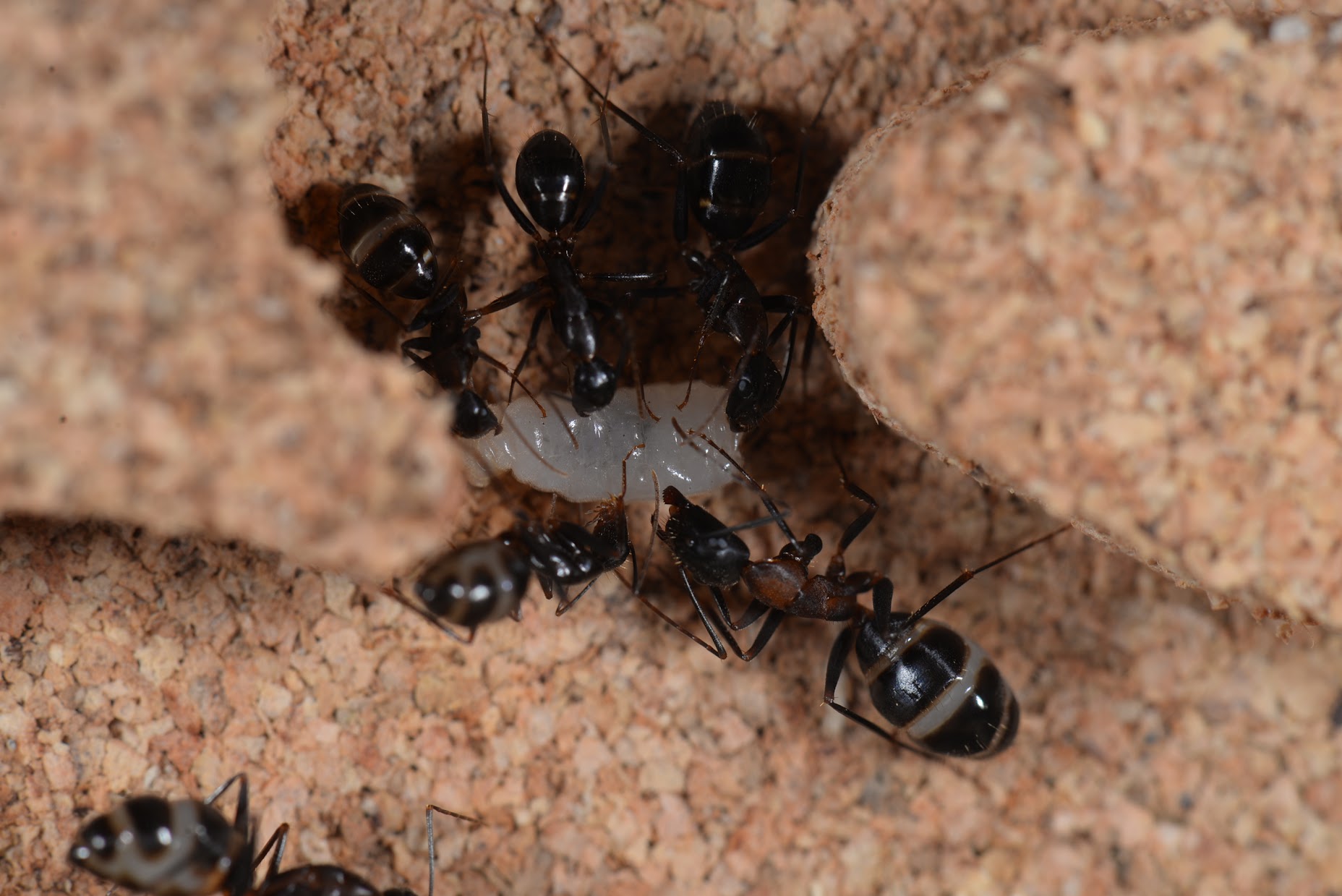 Camponotus barbaricus frisst immer mal wieder Larven und Puppen