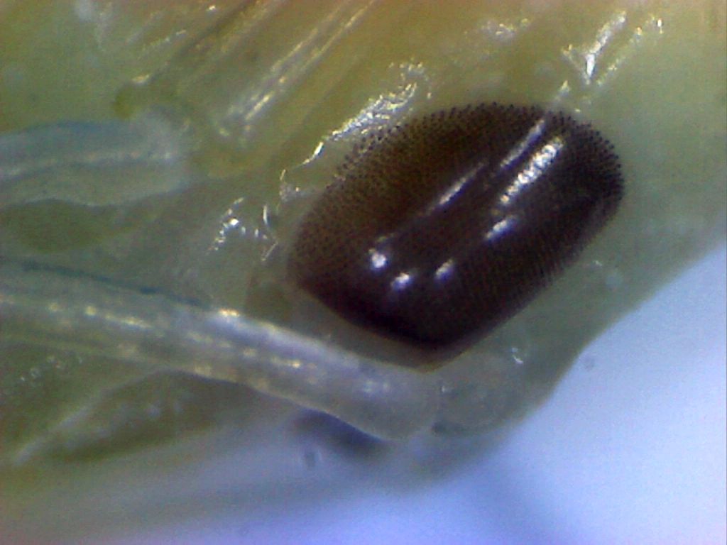 Die Konzentration der Ommatidien ist zu den Seiten des Auges hin auch sehr niedrig.