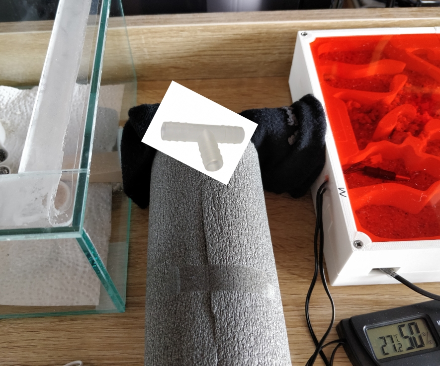 Die VerbindungsschlĂ€uche und T-StĂŒck habe ich mit einer Socke abgedunkelt.