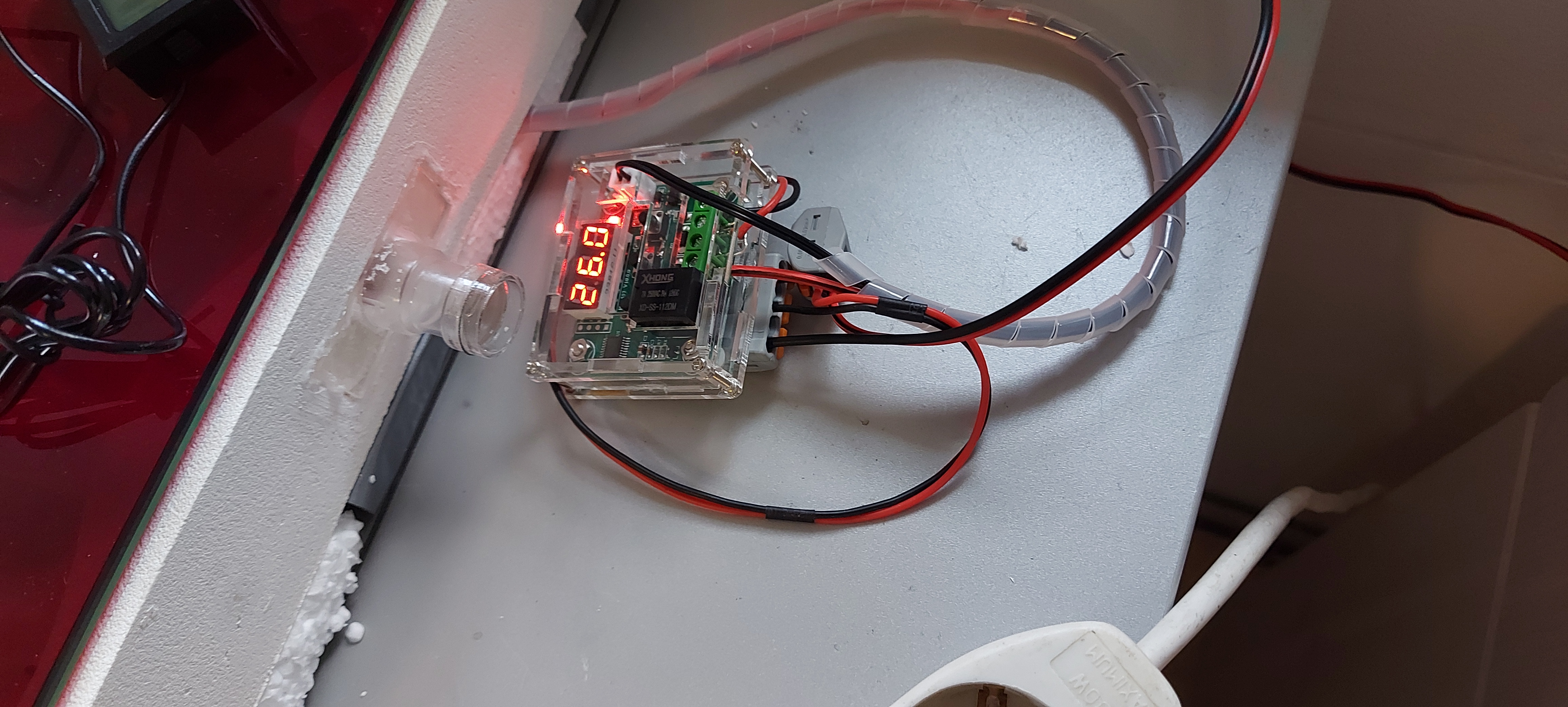 Ich habe eine kleine Heizmatte gekauft und reguliere sie mit ein paar eigenen Elektronikteilen