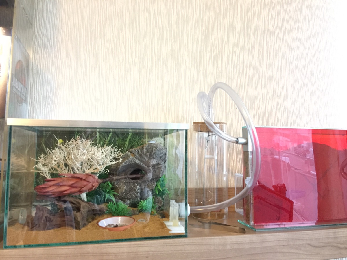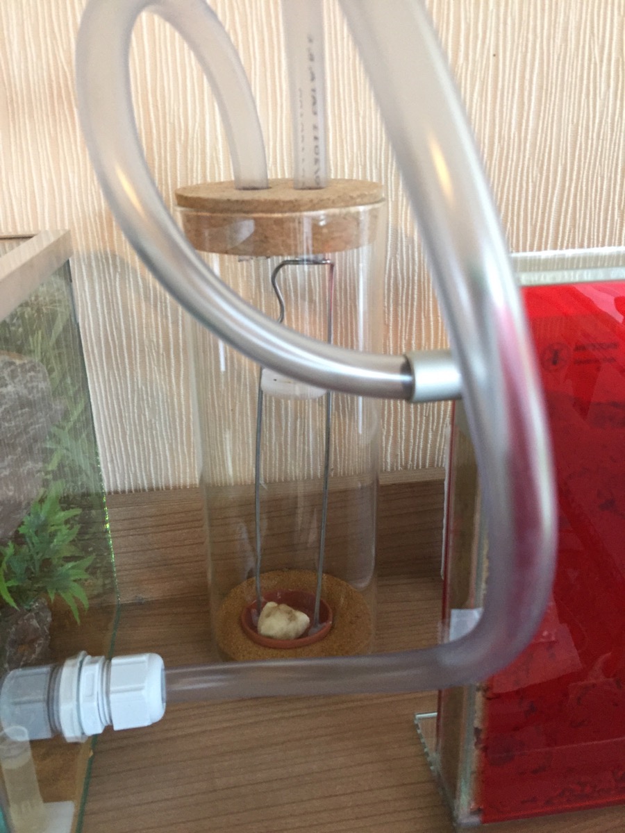 Ein Technischer Punkt.. ich hätte mir eine breite runde Säule besorgt(z.B. Von so großen Papierrollen) und da den schlauch außen drum gemacht. Dann macht das keine Loopings und man kann noch näher ran zum glotzen :)