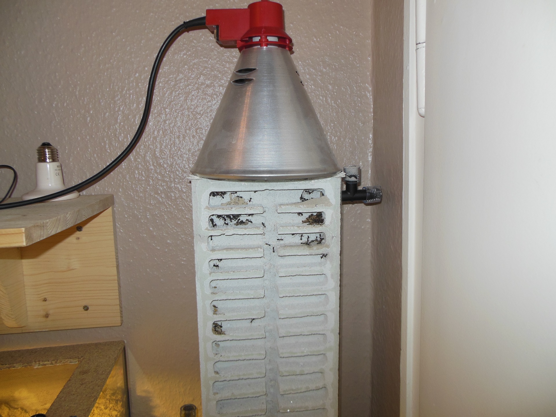 Das Futter bestand zu Beginn aus Schokoschaben und Grillen. Jetzt gibt es erstmal nur noch Fliegen, da diese sich bei den anderen Ameisen absolut bewährt haben.