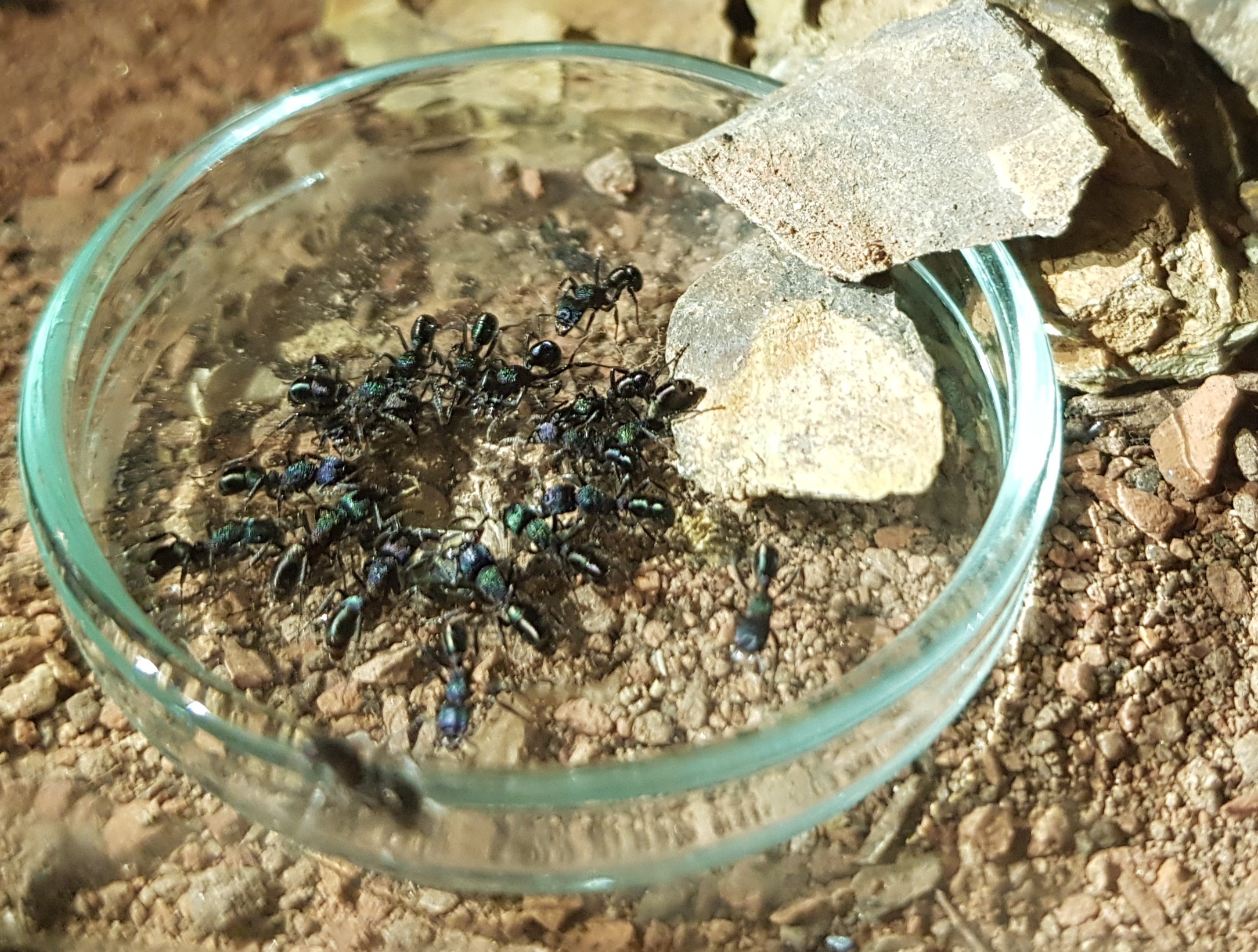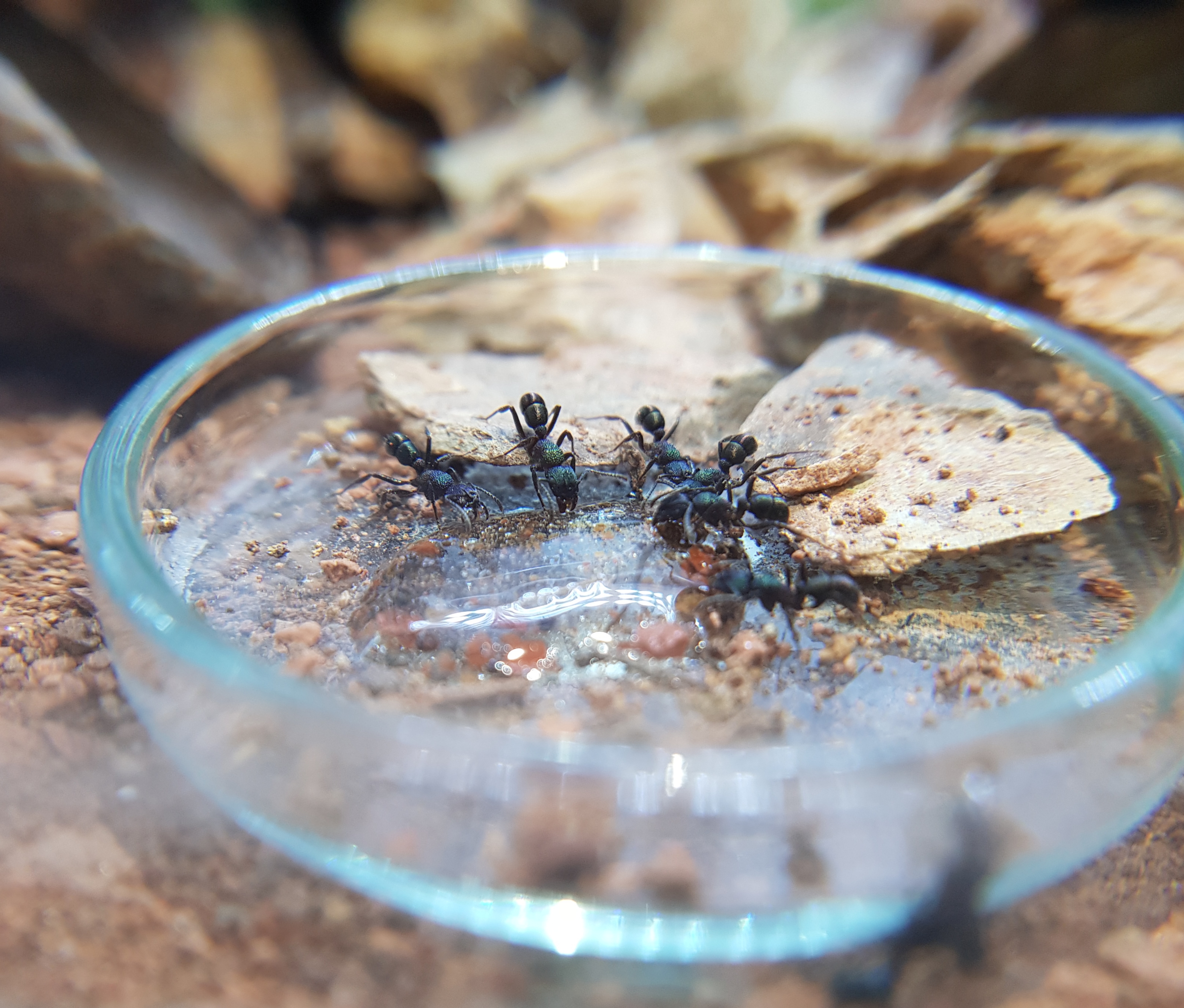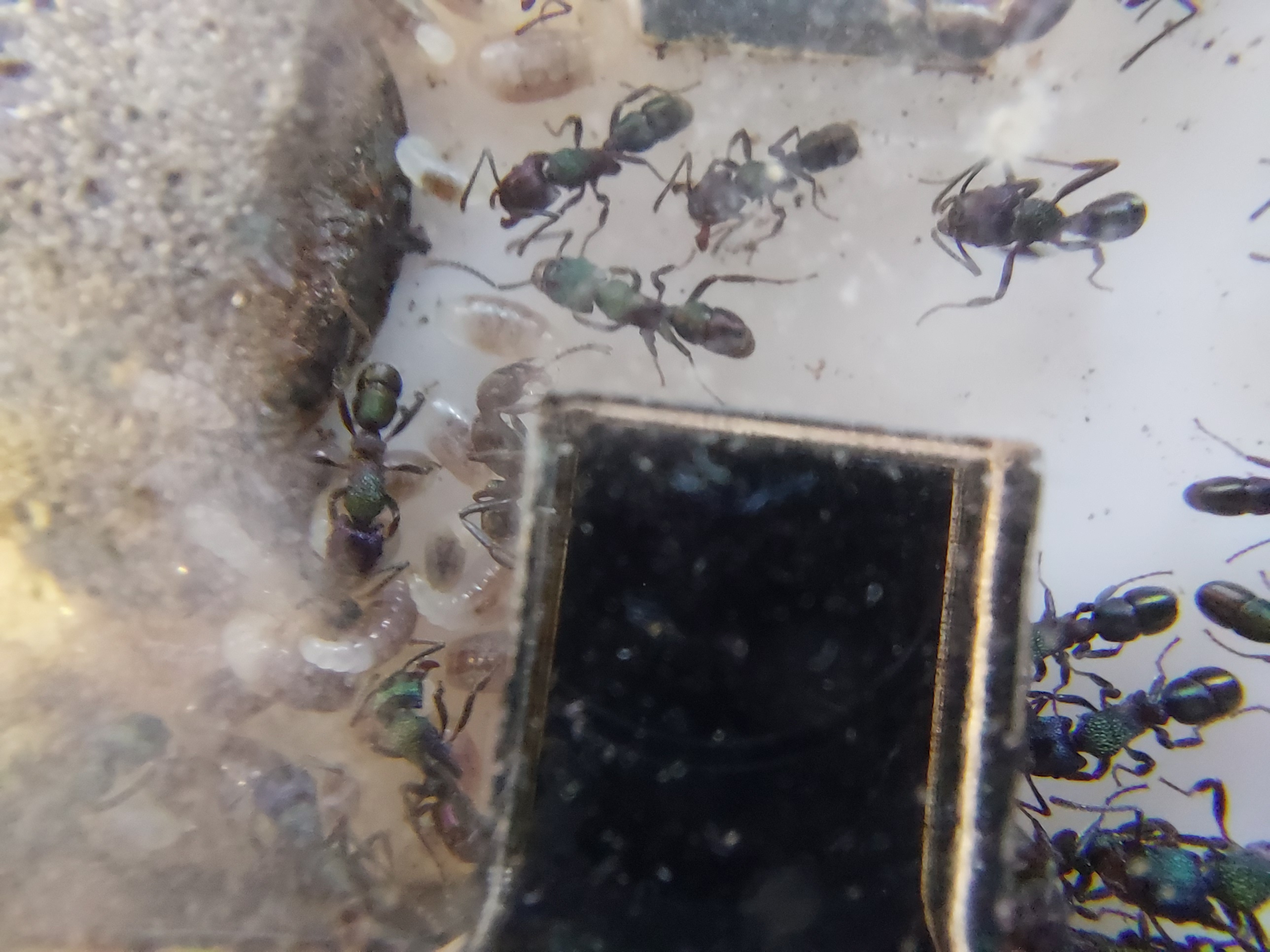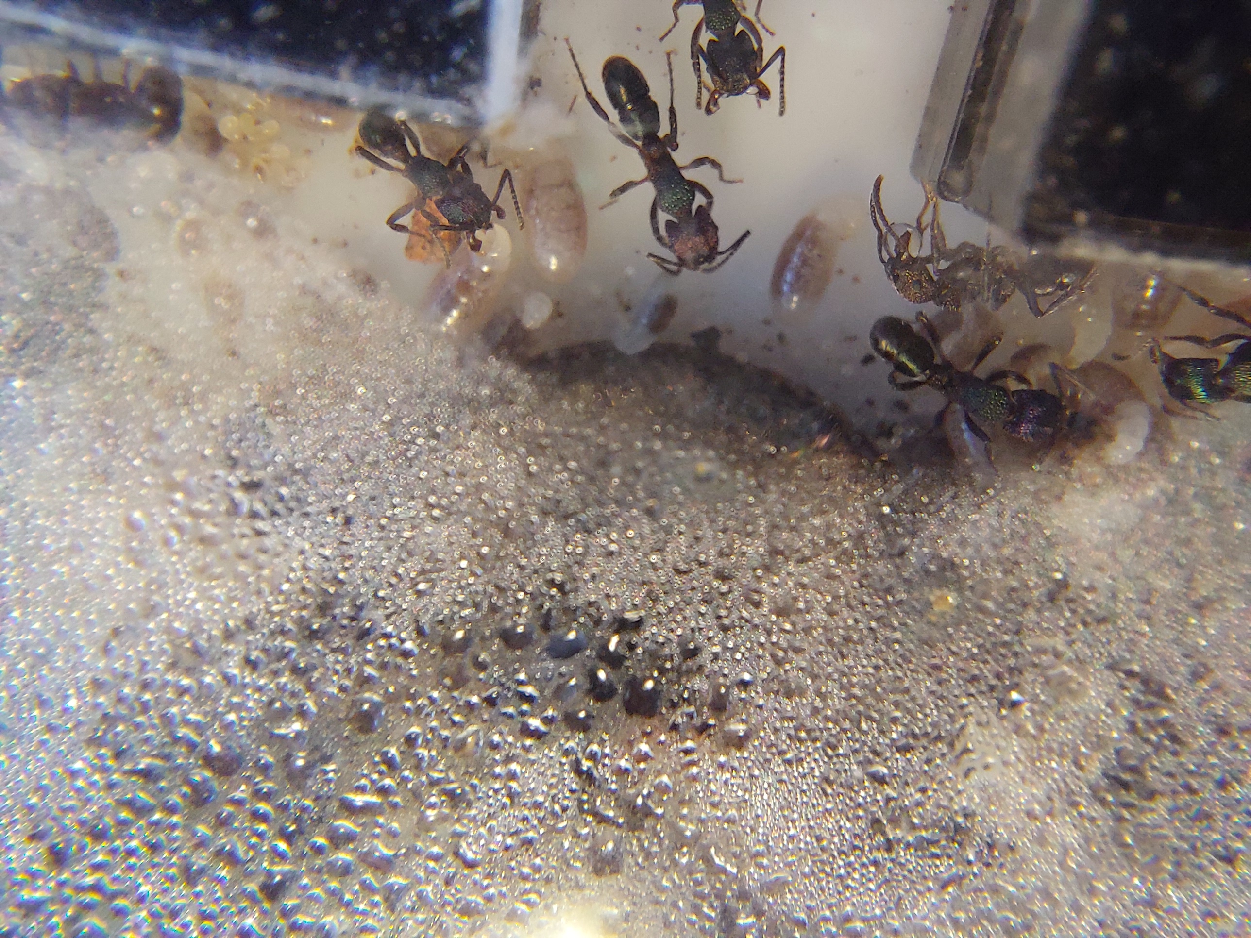 Die Haltungsbedingungen wĂŒrde ich "Myrmica rubra"-Ă€hnlich bezeichnen. Gerne feucht und gerne etwas wĂ€rmer, aber natĂŒrlich ganzjĂ€hrig (empfinde ich als Vorteil).