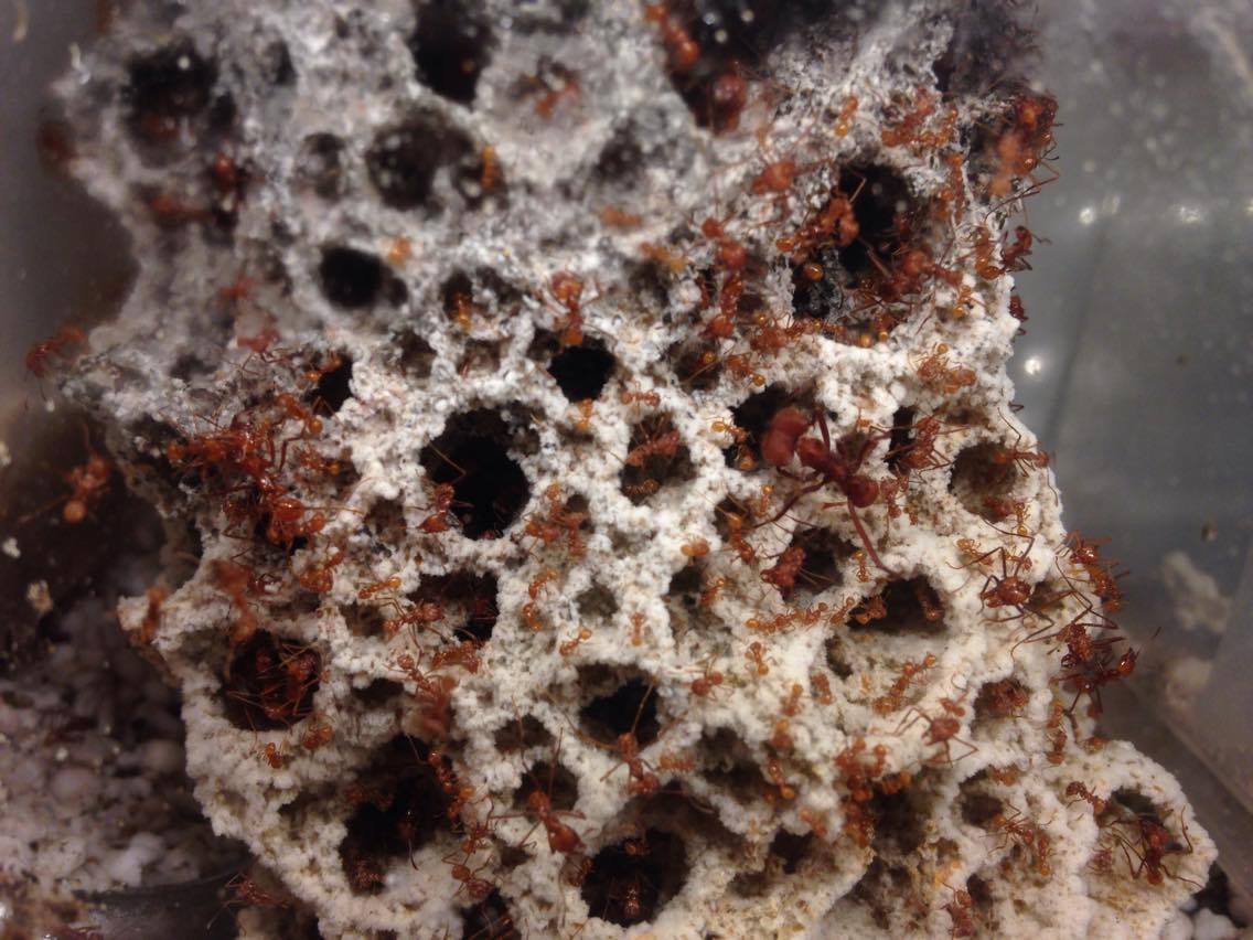 So wie du das beschreibst, hört sich das ziemlich normal an. Du darfst nicht vergessen, die Schneider kommen nur raus wenn sie wirklich müssen, viel lieber würden sie nur auf der Pilzkultur verweilen. Es starben noch nicht viele Ameisen und du siehst Brut, dann passt ja soweit alles. Solange die Koloniegröße nicht an bemerkenswerter Masse zunimmt, wird auch nicht der Pilz sonderlich größer kultiviert werden. Es muss ja genug Gärtnerpersonal da sein, um auch genug pflegen zu können.