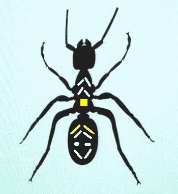 mir ist im Amazonas eine sonderbare Ameise begegnet: recht groß, ca. 4 cm, schwarz, unbehaart, jedoch mit einer sonderbaren Rückenzeichnung:
