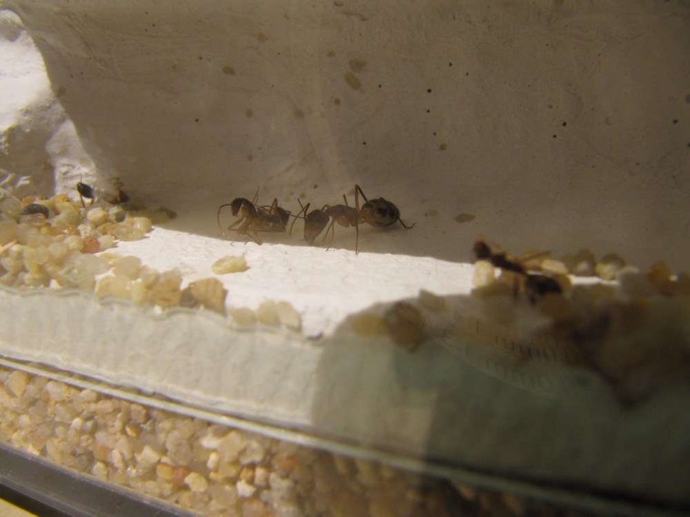 [font="]Mittlerweile haben wir Januar 2012 und ich habe ĂŒber 13 tote Ameisen in den beiden Nestern liegen. Das beunruhigt mich doch ein klein wenig. Obwohl ich ja weiĂ, das dies wahrscheinlich die ersten geschlĂŒpften Ameisen waren. Dennoch sind reichlich Eier und