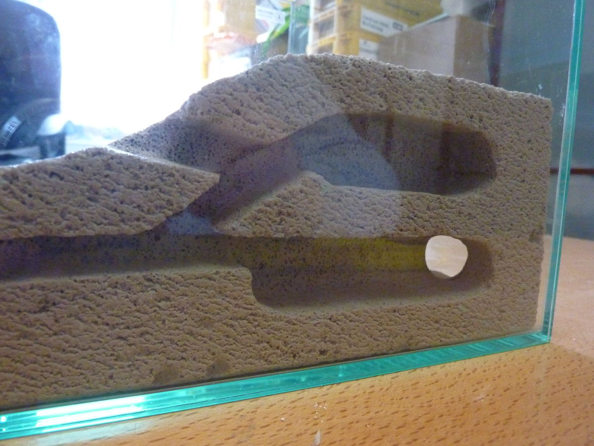 Zum Nest hin soll der Boden hügelförmig aufgebaut werden. Als Untergrund werde ich wohl auch Ytong nehmen und eine Art Rampe bauen. Die oberste Schicht wird dann aus Granitstücken / Steinen gebaut.