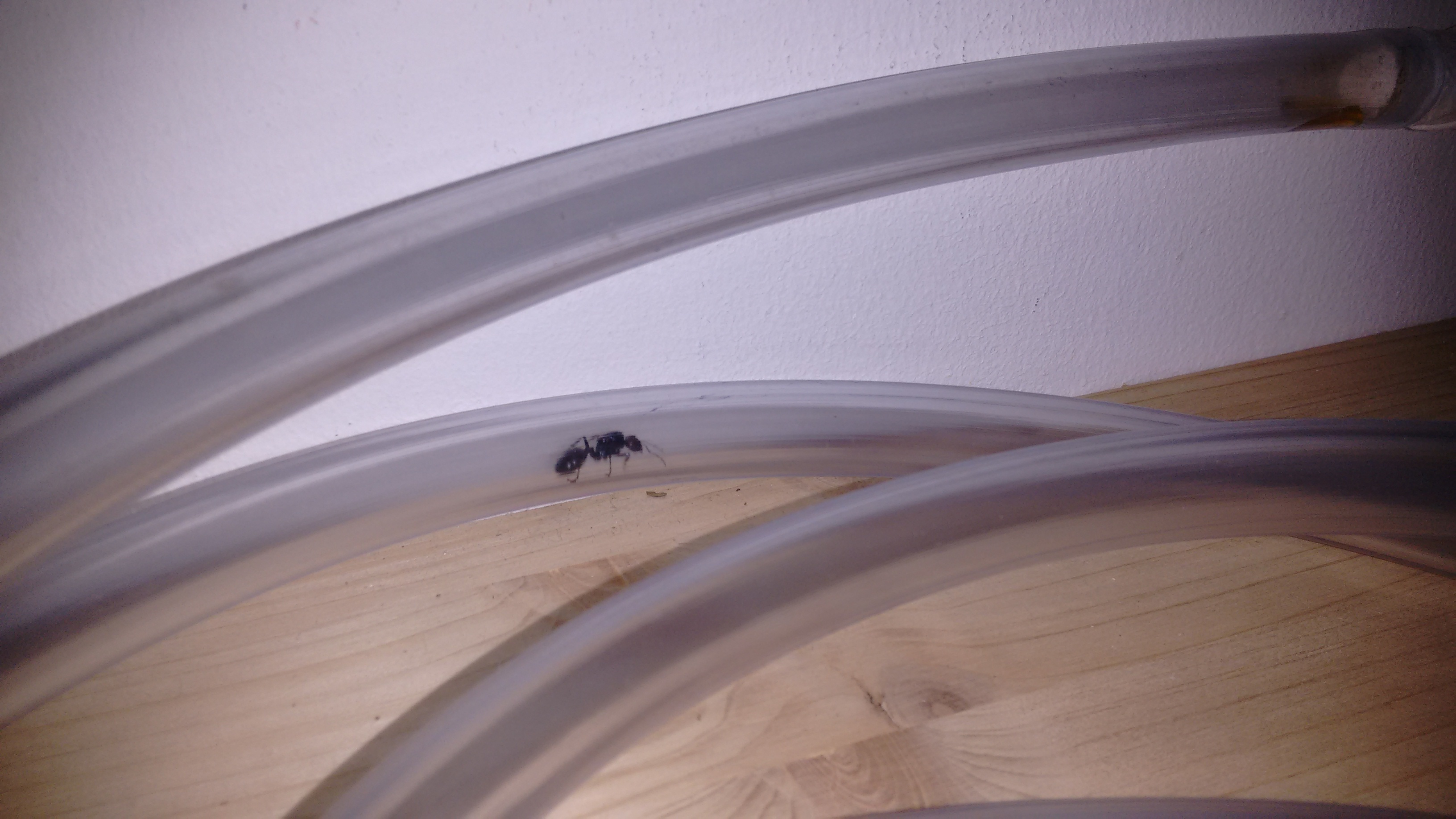 Die Ameisen kannst du oder solltest du sogar jetzt schon in die Arena setzen. Eine sehr aktive Art, die es dir sicher dankt, Auslauf zu bekommen. Vermutlich werden die Ameisen auch noch etwas etwas in dem RG bleiben bis das neue Nest erkundet, akzeptiert und bewohnt wird. Die Art kann problemlos in einem unbeheizten Raum überwintert werden und stellt vor allem im Winter gar keine Ansprüche an das Klima. In der aktiven Phase würde ich dir allerdings dazu raten, eine zusätzliche Beheizung anzubringen. Das macht sich gerade bei dieser Art in der Entwicklung sehr spürbar deutlich.