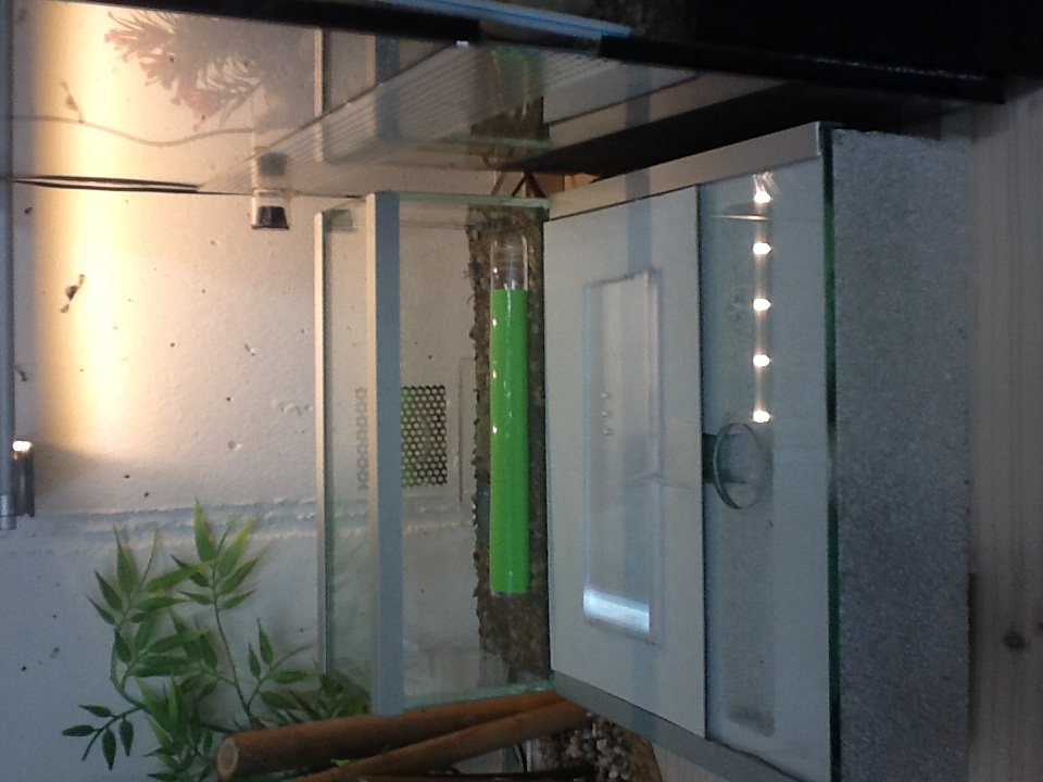 Die zwei sind in das Nest eingezogen, wobei die größere in einer Kammer sitzt und die zweite im Bereich des Eingangs ihr Unwesen treibt. Ich hoffe mit sterben ist jetzt Schluss. Die zwei haben eine ruhige und geschützte Unterkunft und können sich auf Nachwuchs konzentrieren (hoffentlich).