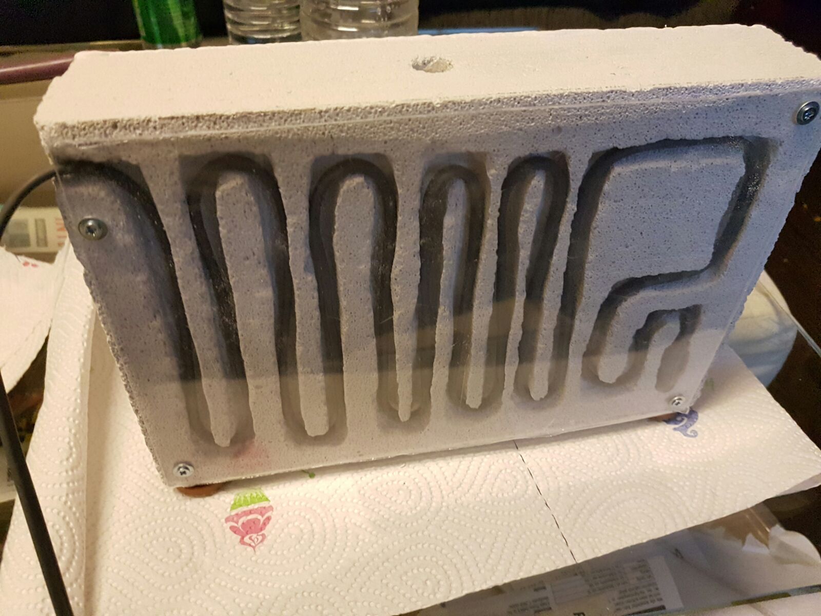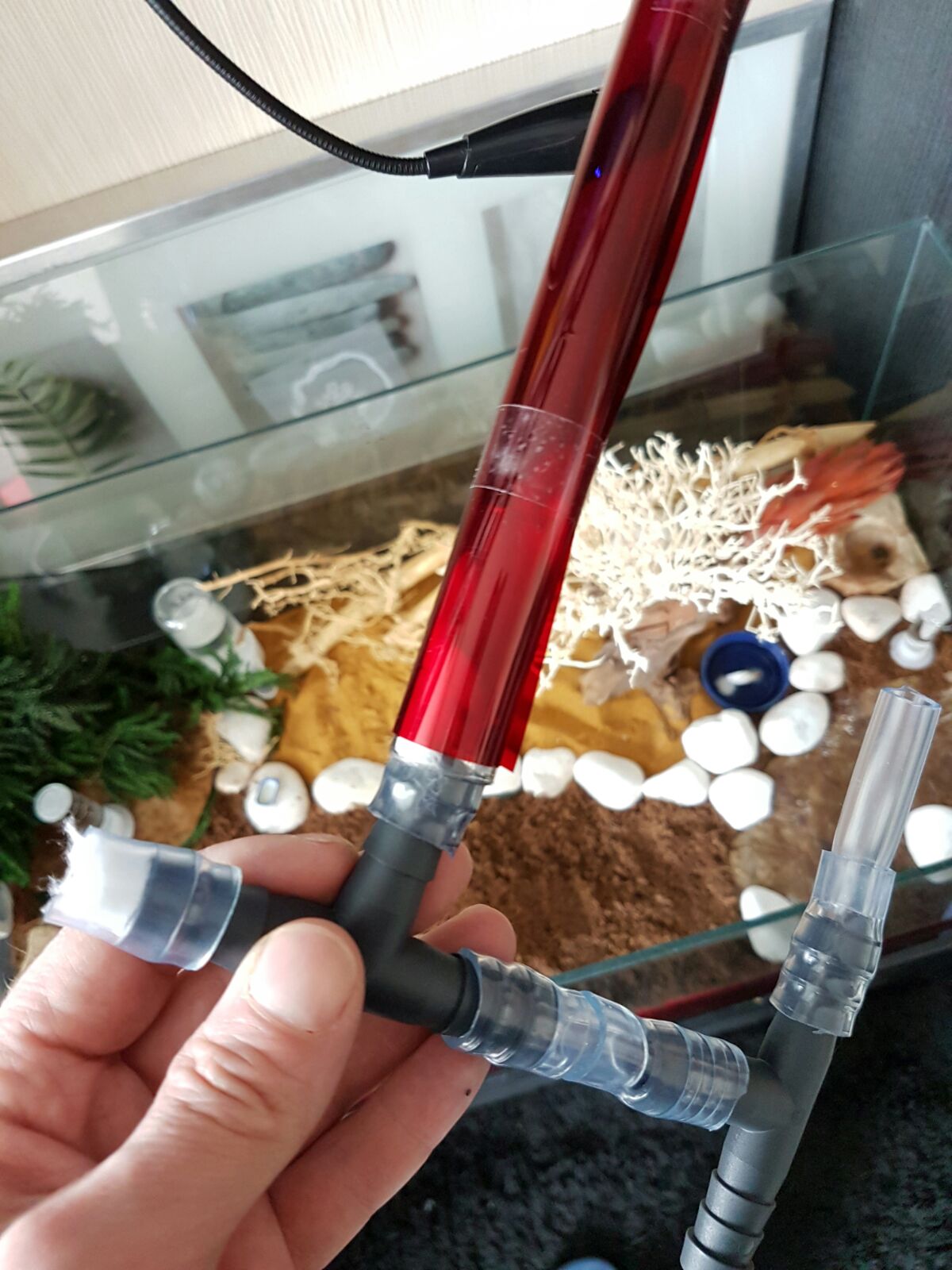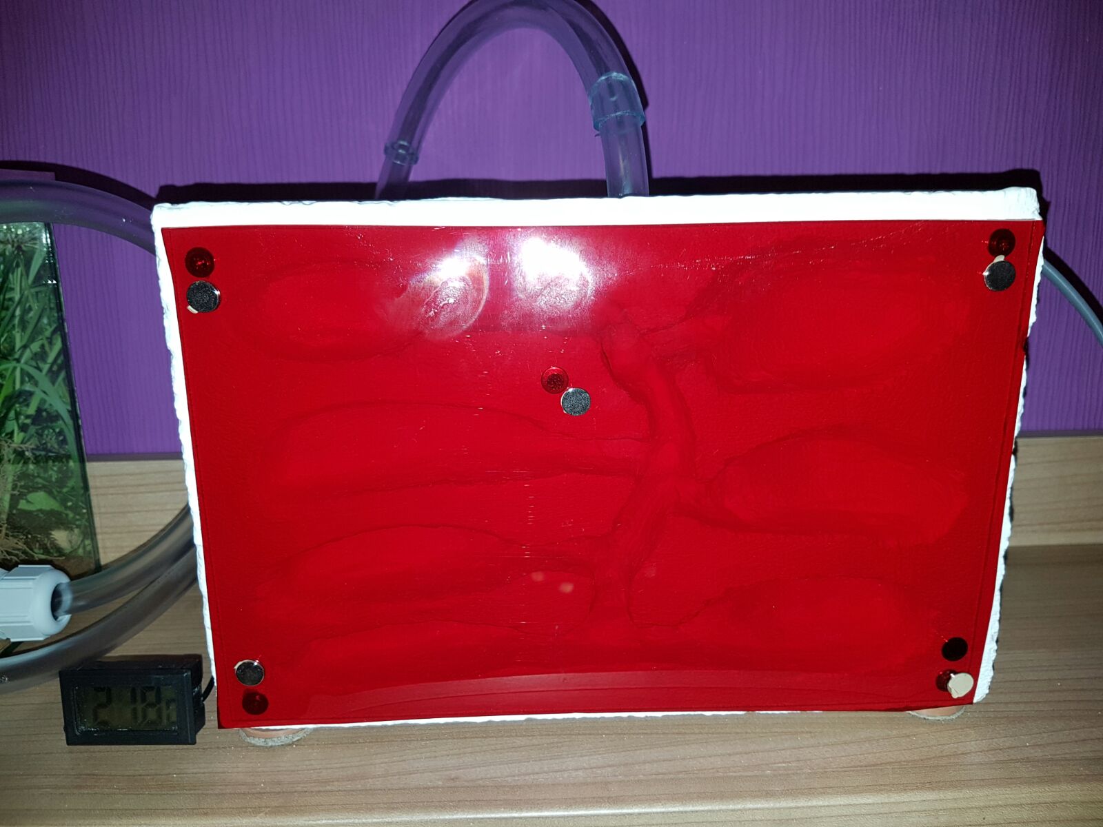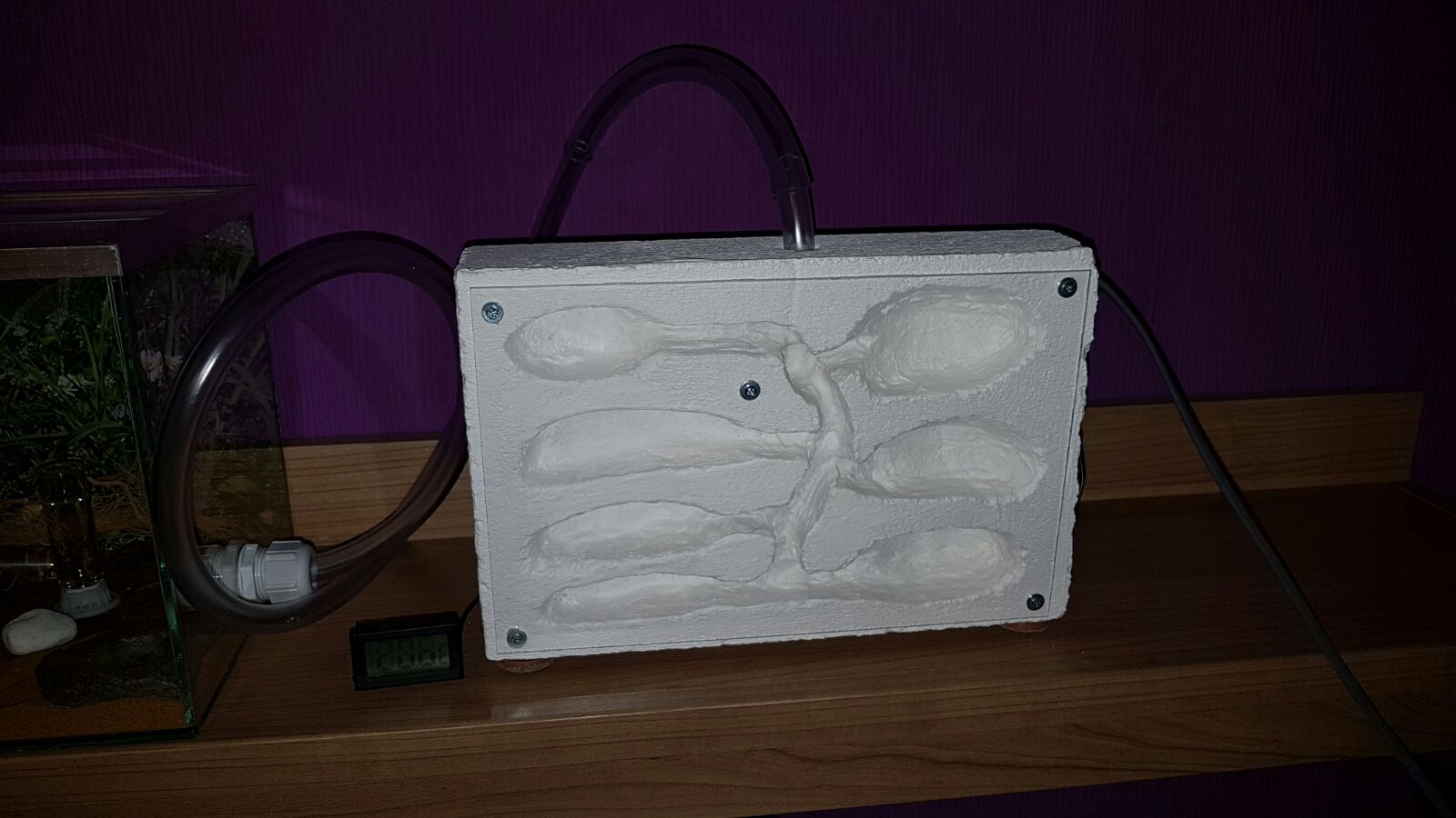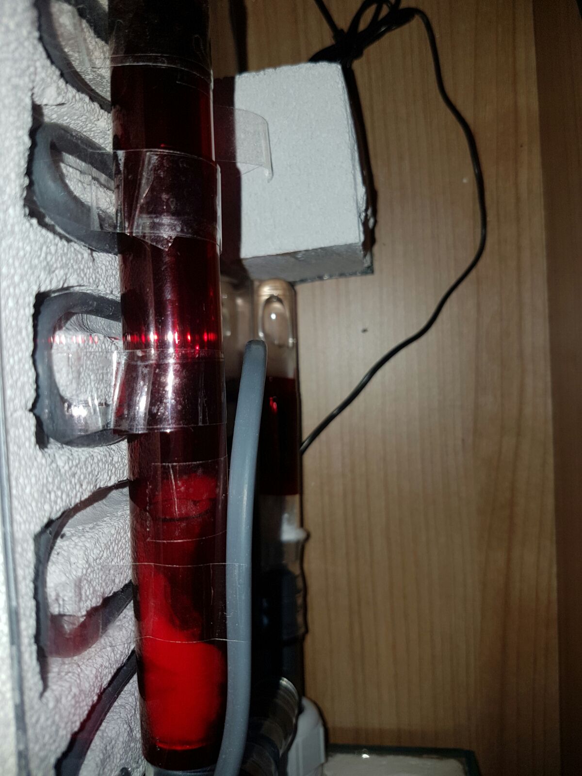 Das neue YTONG Nest ist ebenfalls schon im Einsatz, ich habe hinten ein Reagenzglas mit Tesa an der Plexiglasscheibe befestigt, dahinter ist das Heizkabel.