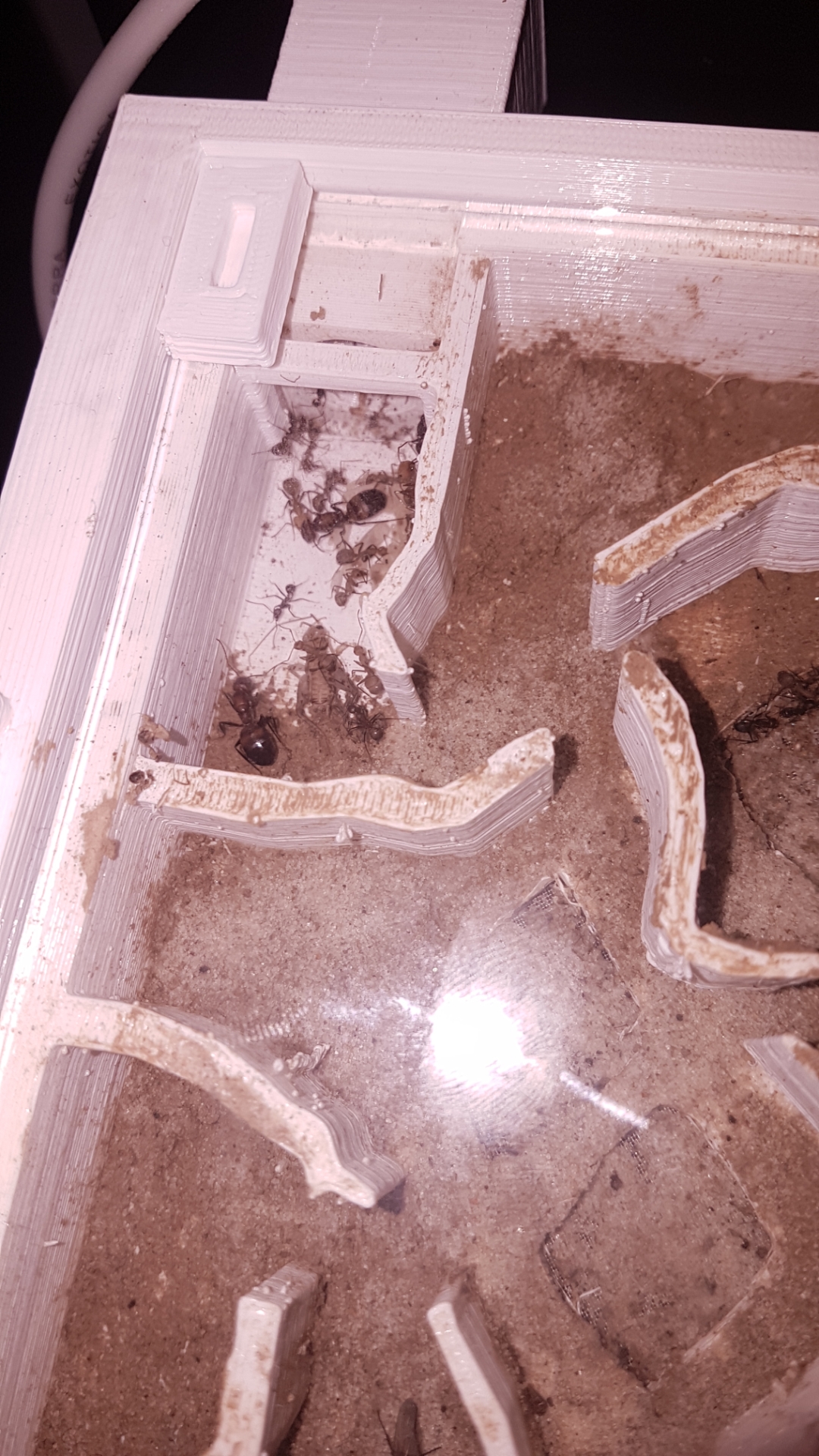 Meine Camponotus nicobarensis sind nach dem Reagenzglas Umzug in den Verbindungsschlauch gezogen. Haltungstemperaturen 24-26 grad Luftfeuchte ca 60%. Wobei diese Art sich sehr gut anpassen kann. Mein Problem aber nun ist das ich sie lieber im Nest gerne hätte. Sie aber nicht umziehen wollen und ich habe wirklich alles probiert obwohl auch Gewagtes. Beispiel mit einer Heizmatte unter den Schlauch. Sie nisten bereits seit 2 wochen im Schlauch. Und lange warten bis die kolonie groß genug wird damit sie selber merkt das Nest wäre doch besser...