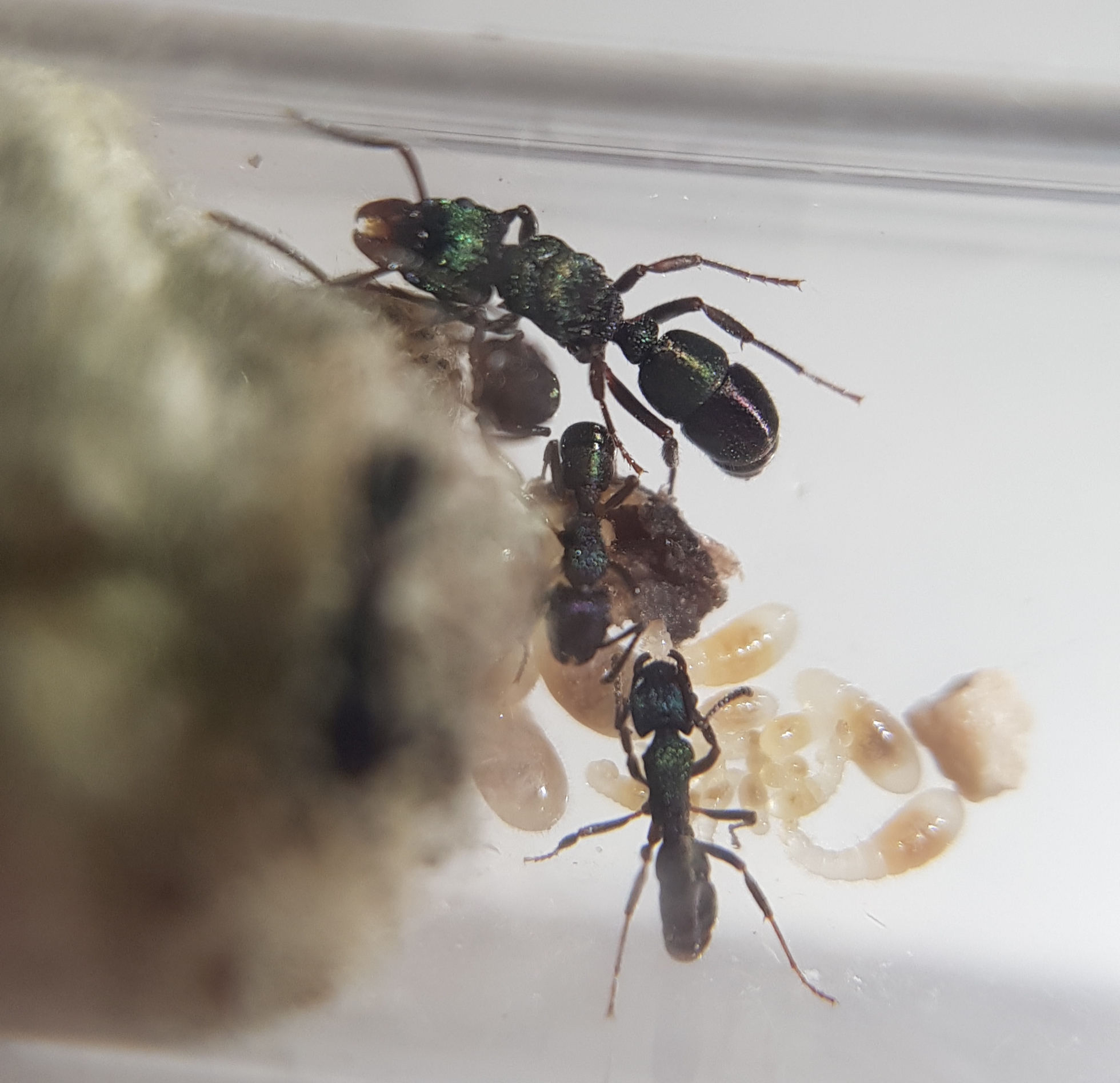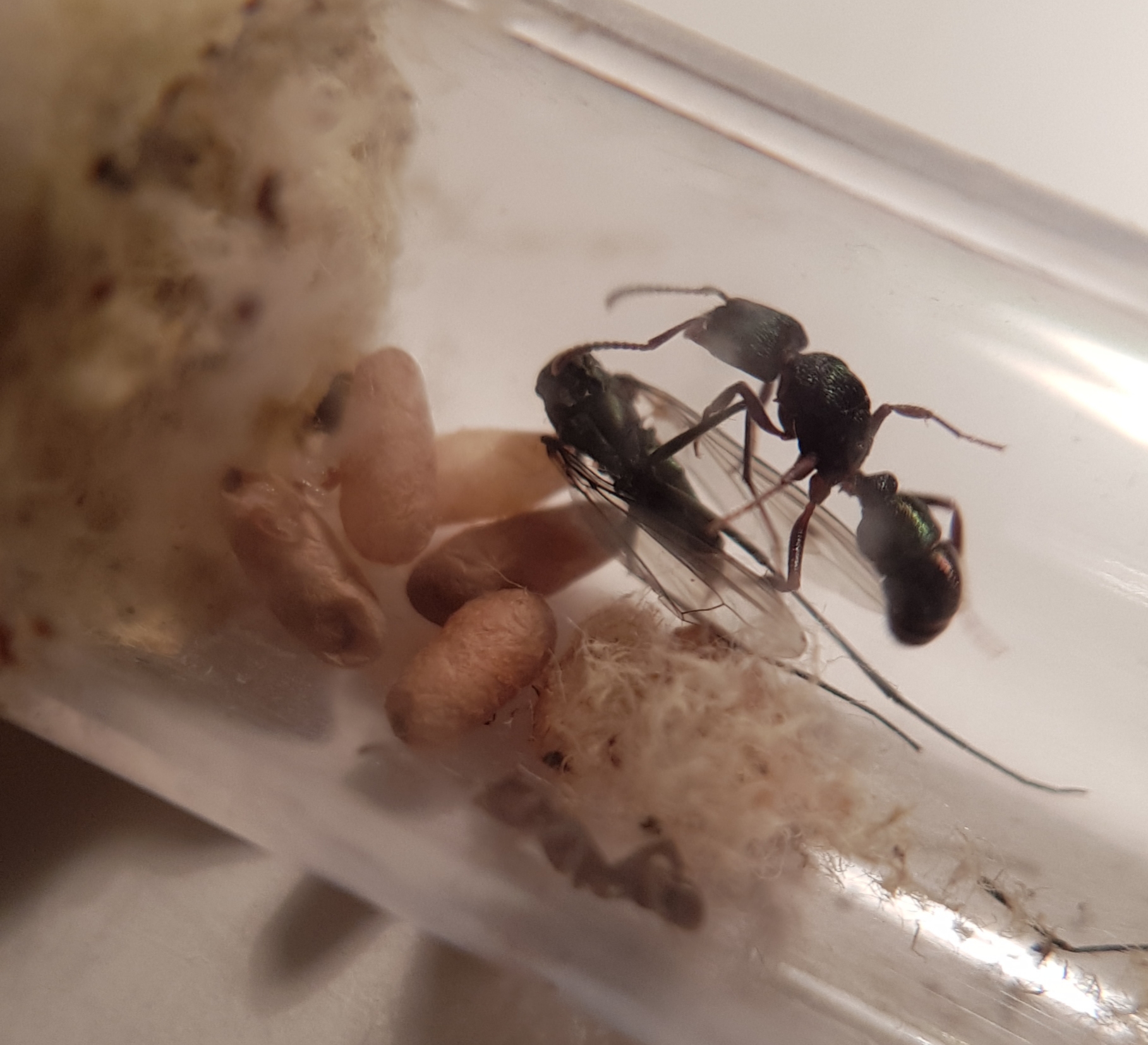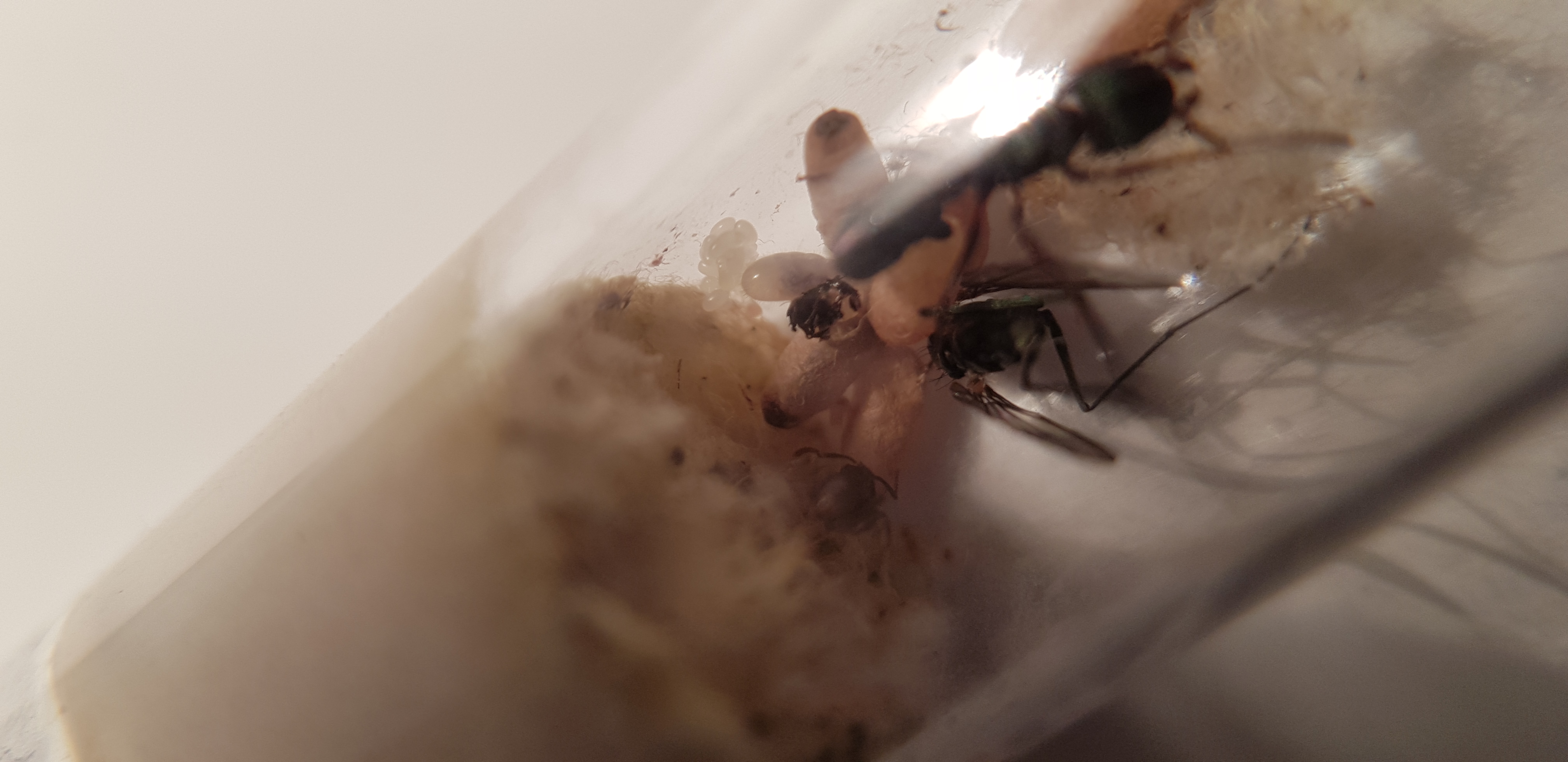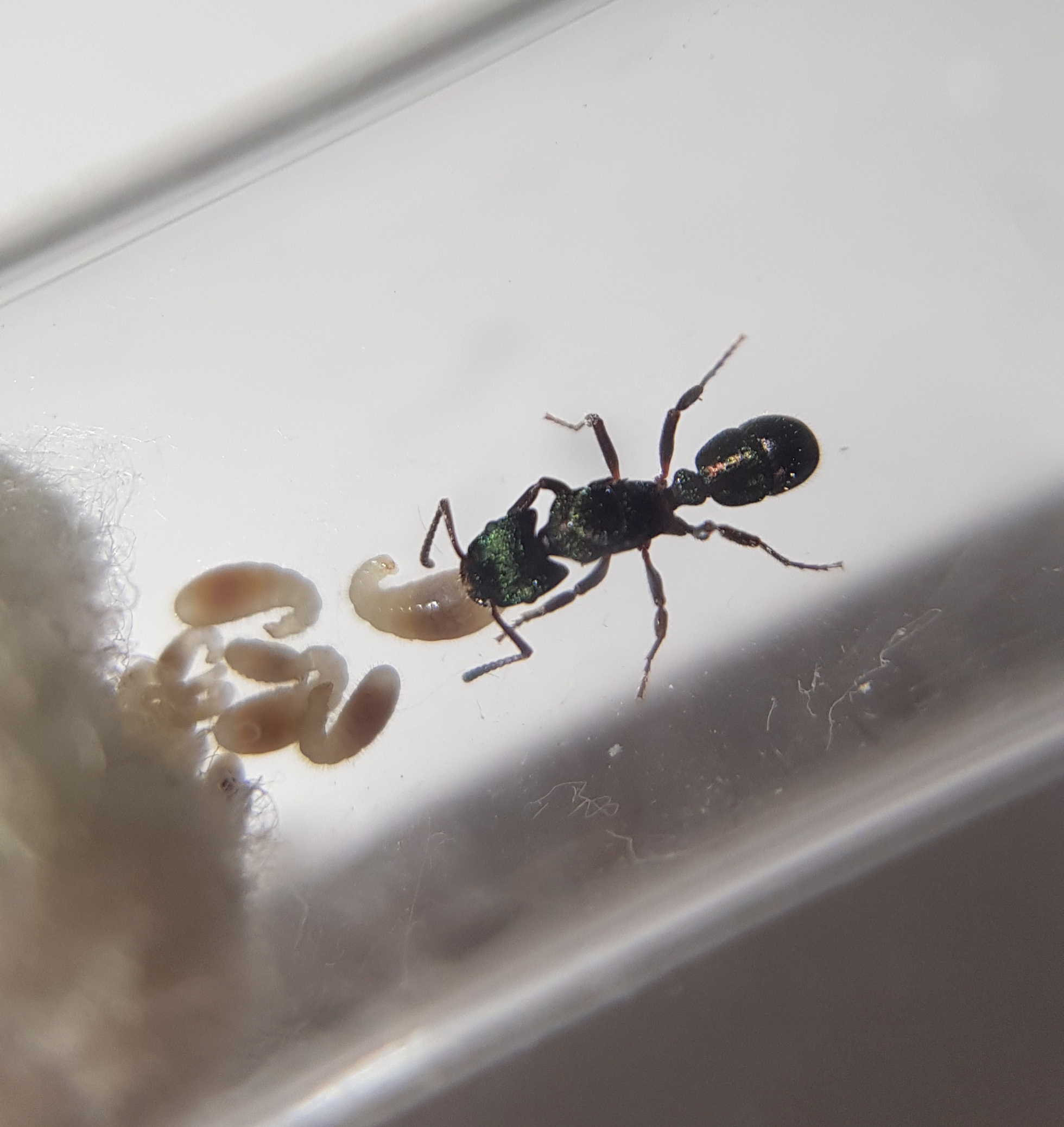 Königin ist sehr "fĂŒrsorglich". Kann man das so sagen bei Insekten? Naja, auf jeden Fall kĂŒmmert sie sich vorbildlich um ihren Nachwuchs. Die
