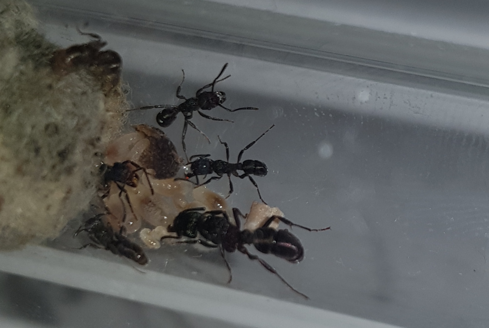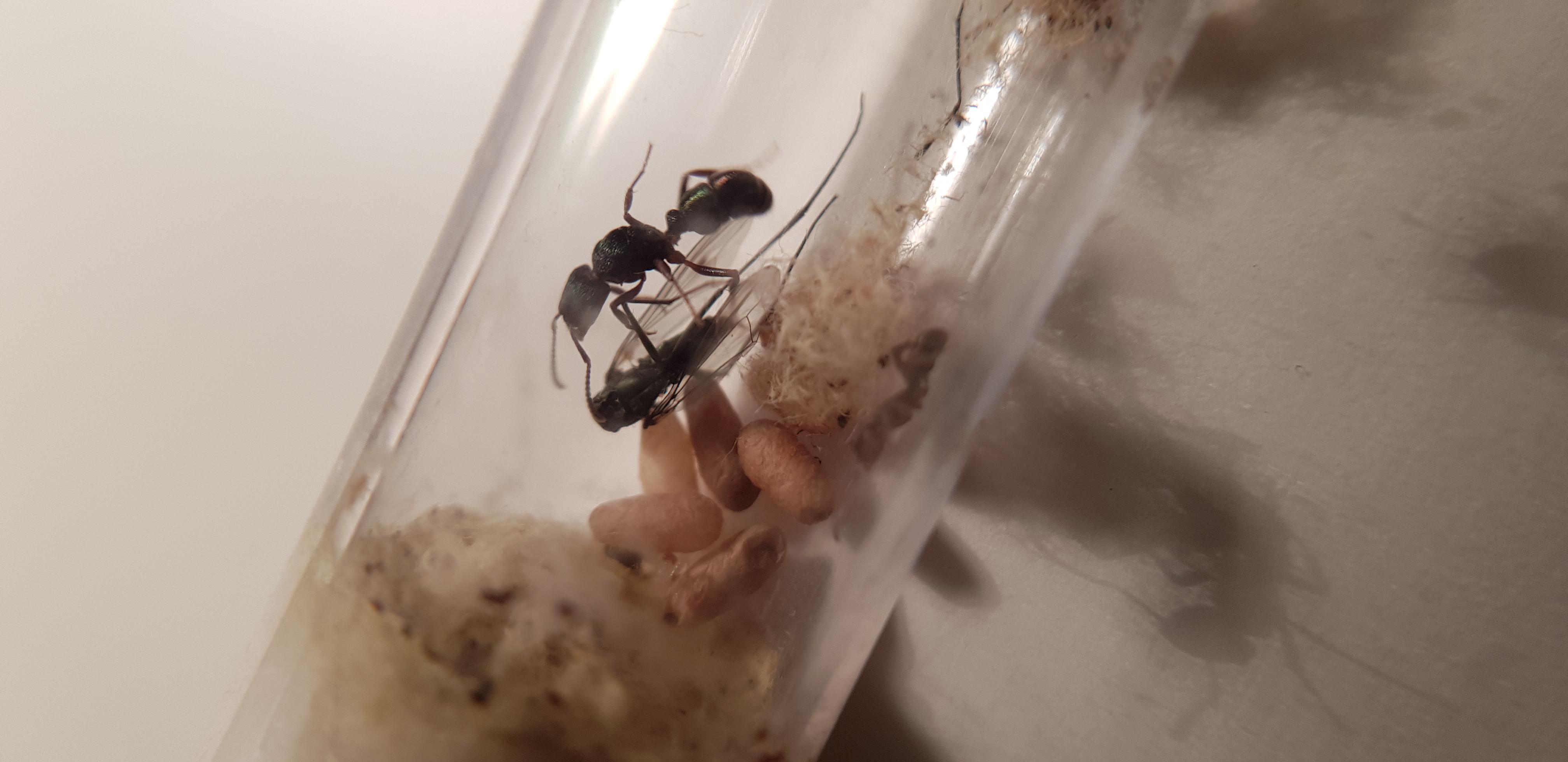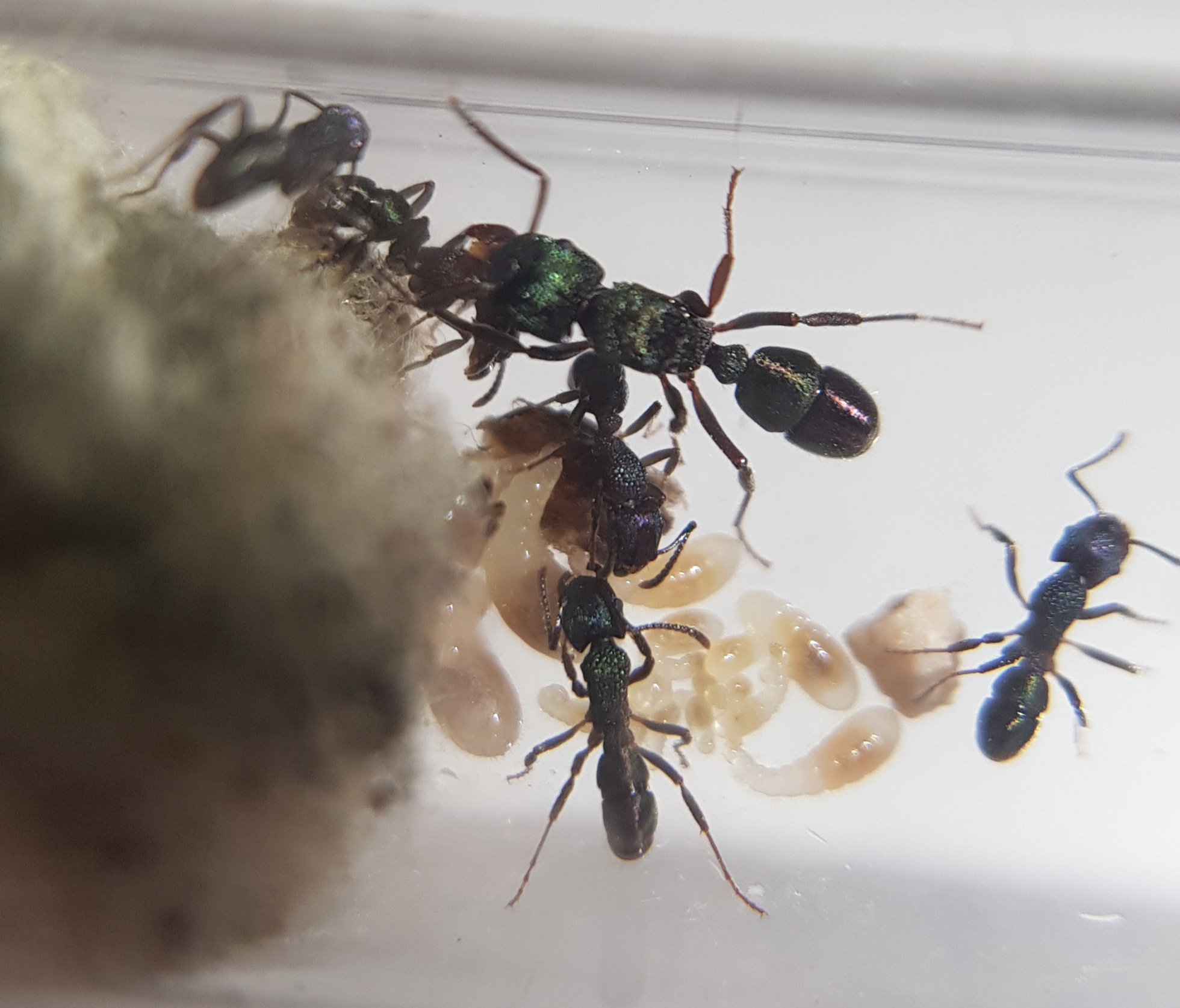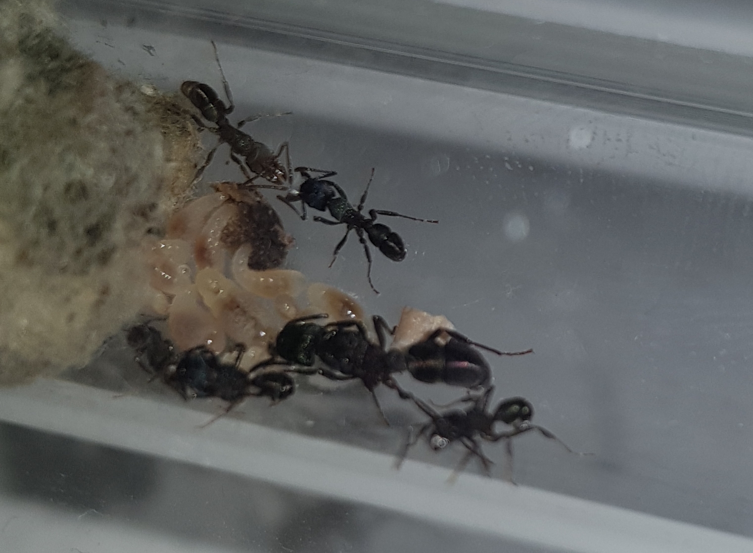 Königin ist sehr "fĂŒrsorglich". Kann man das so sagen bei Insekten? Naja, auf jeden Fall kĂŒmmert sie sich vorbildlich um ihren Nachwuchs. Die
