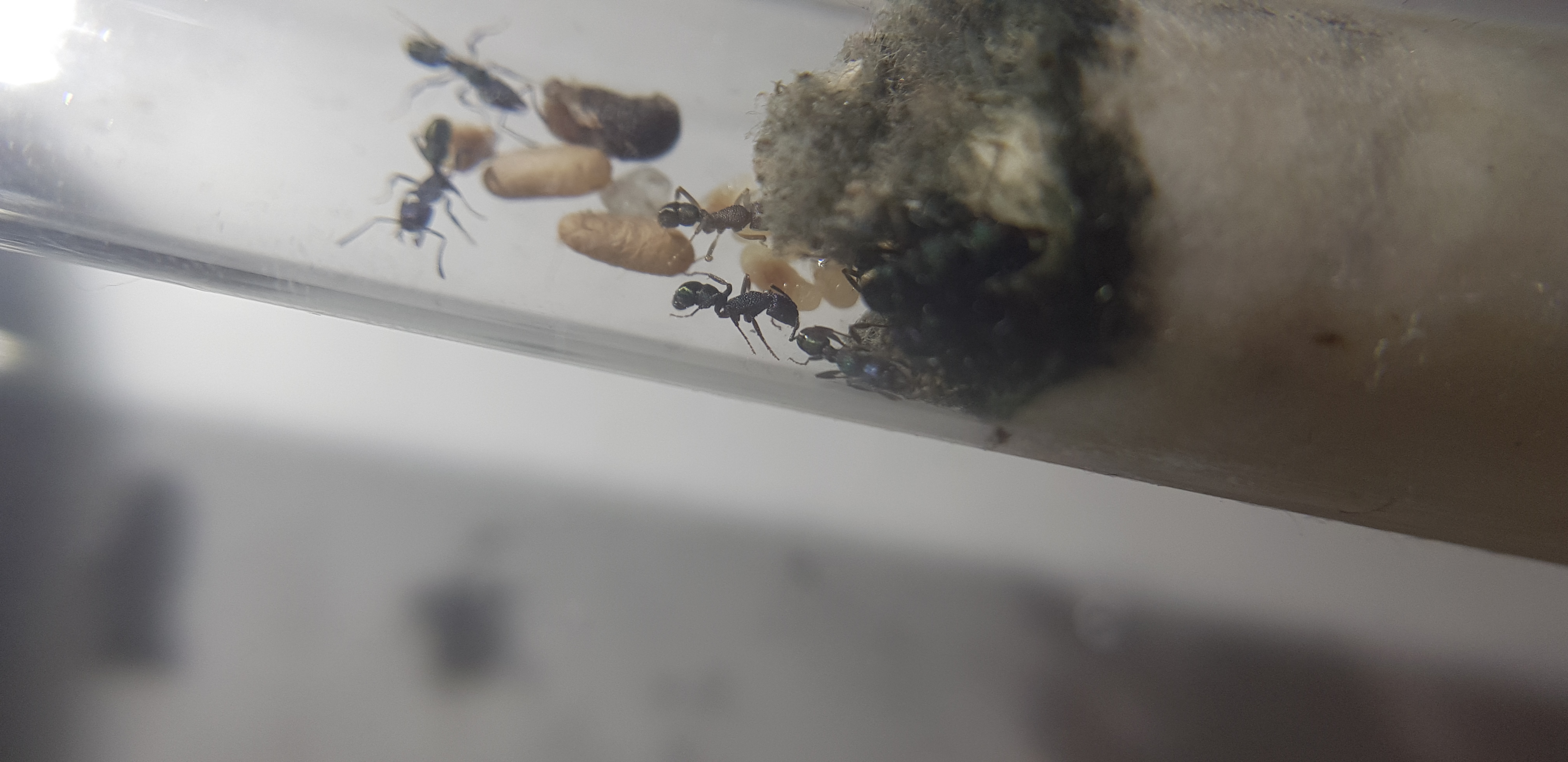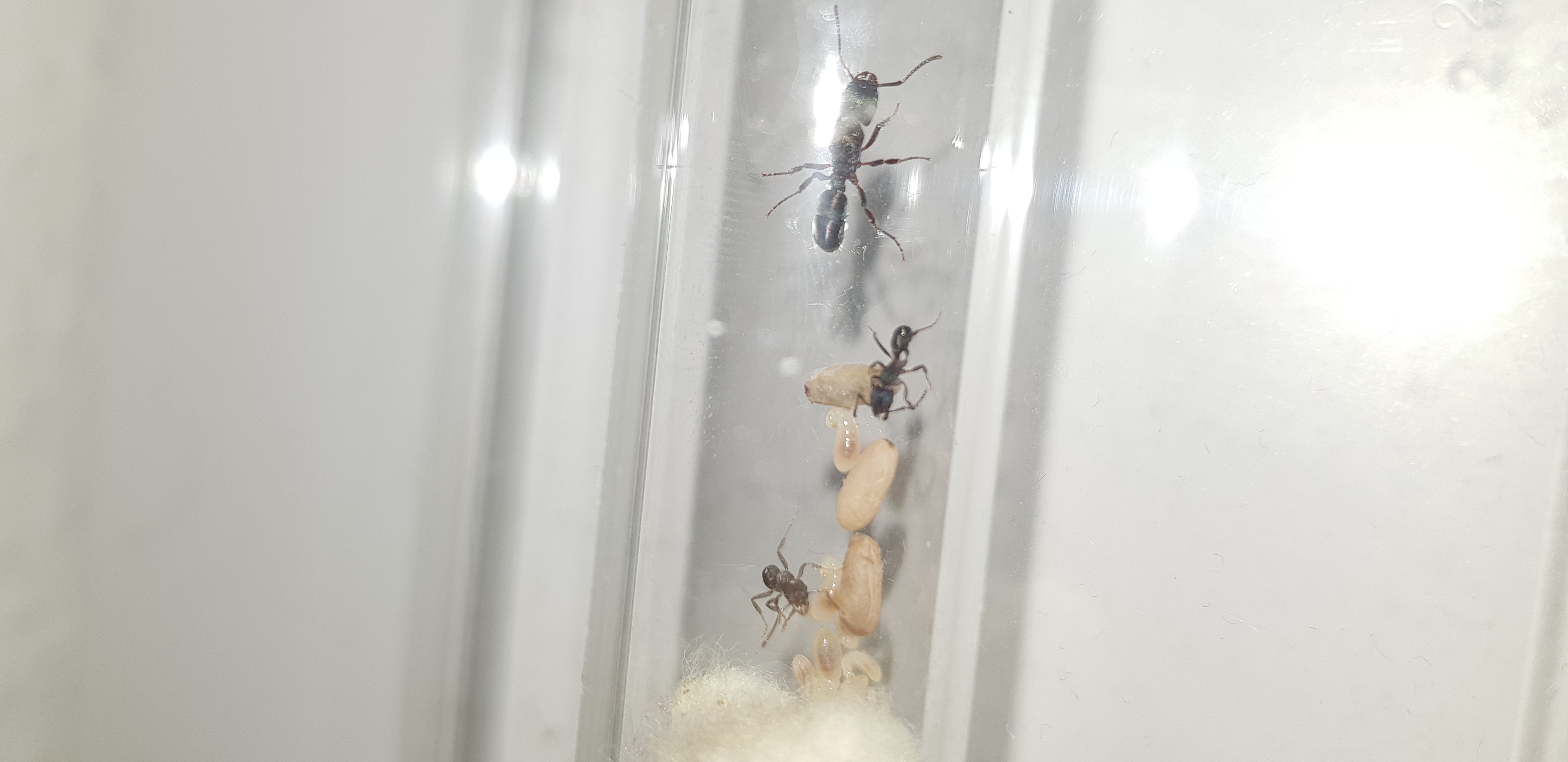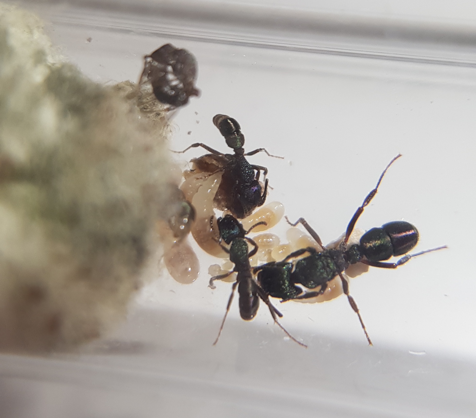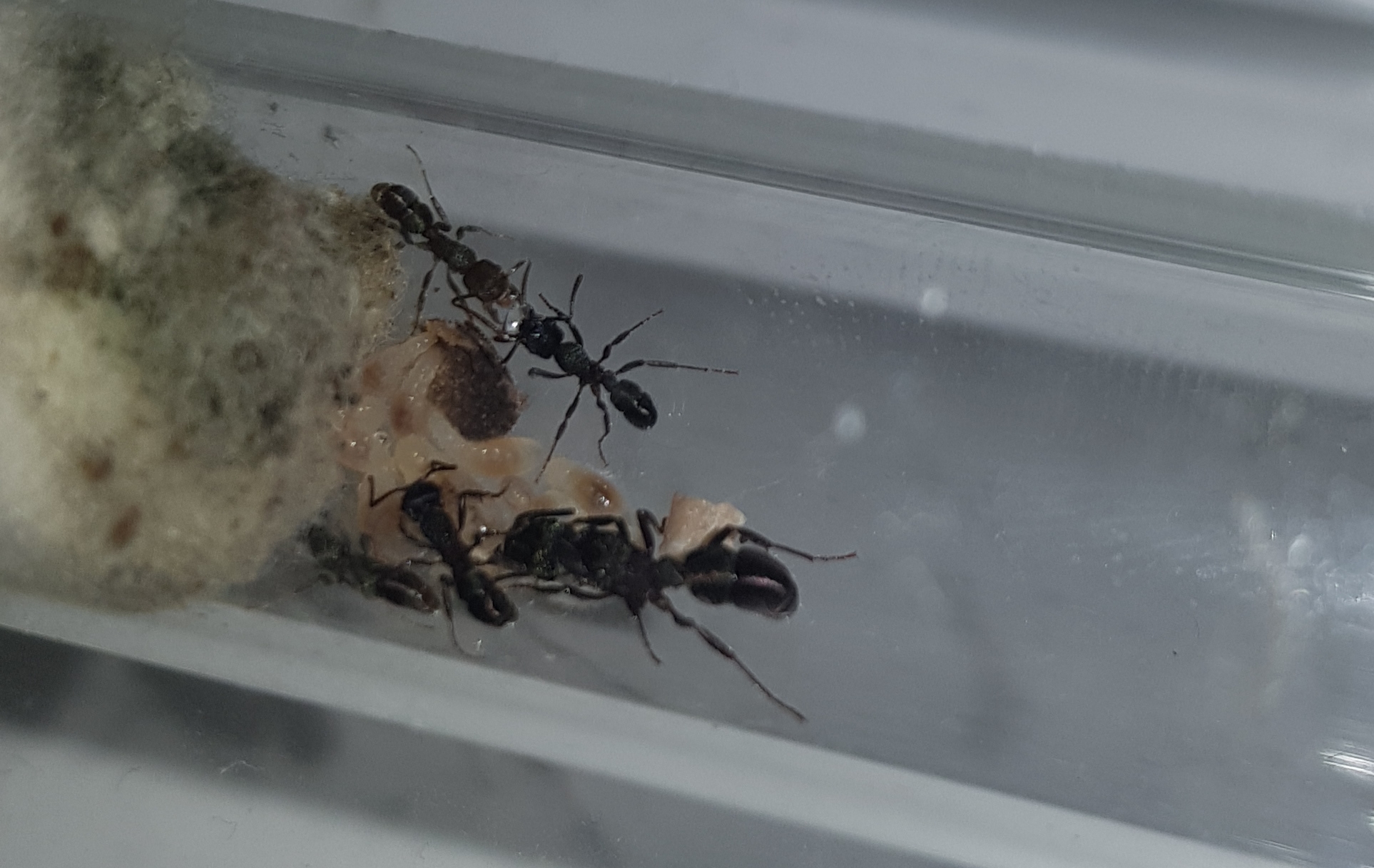 Königin ist sehr "fĂŒrsorglich". Kann man das so sagen bei Insekten? Naja, auf jeden Fall kĂŒmmert sie sich vorbildlich um ihren Nachwuchs. Die