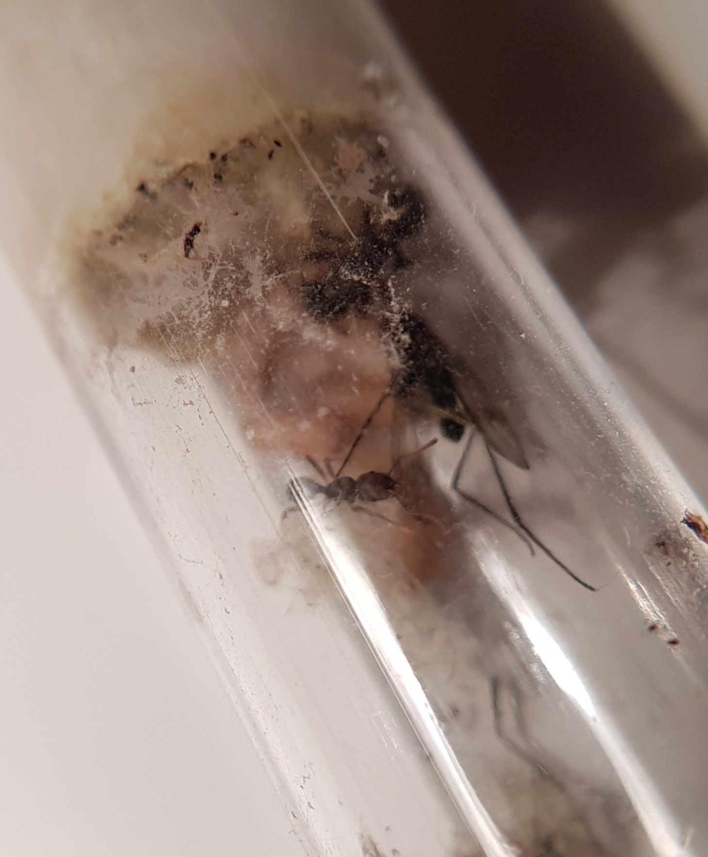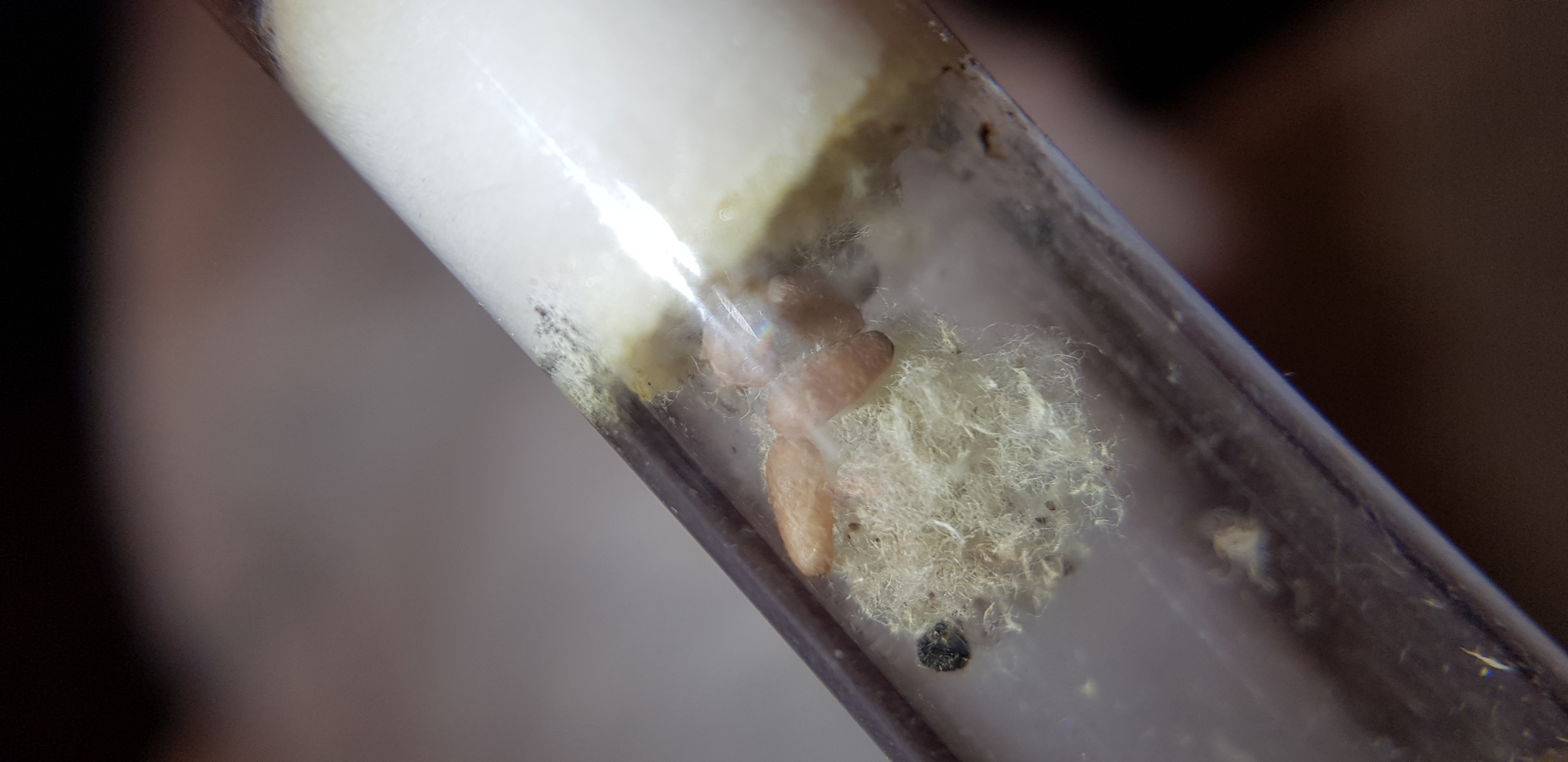 Larven UnterstĂŒtzung durch abgezupfte Watte.