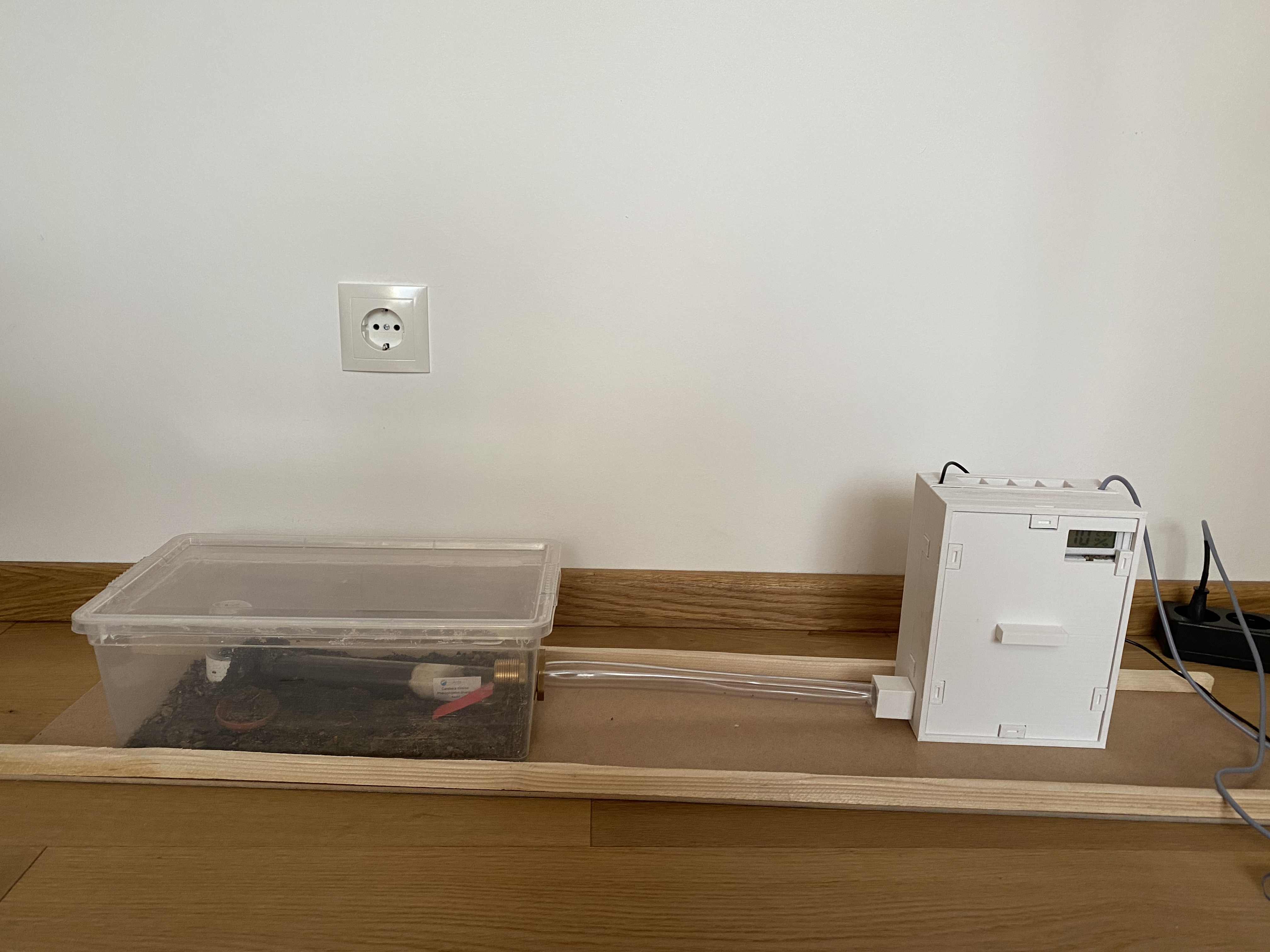 Also die Temperatur betrĂ€gt ca.20-24 Grad. Ich halte die Ameisen in eine Sammlerbox. Sie selber wohnen in einem Reagenzglas, dass sie mit Erde zugebaut haben. Die Feuchte kann ich leider nicht regeln , doch ich sprĂŒhe alle paar Tage etwas Wasser hinein. Ich möchte die Kolonie in ein neues Nest (3-D Nestnest mit Beheizung umsiedeln.)Wie kann ich die Ameisen dazu bewegen in das neue Nest umzuziehen. Wie warm soll ich da die Temperatur einstellen? Ich fĂŒttere alle 2 - 3 Tage 5 - 10 lebendige MehlwĂŒrmer. Manchmal auch eine Fliege. Auch Honig und manchmal etwas Schinken gebe ich ihnen zu fressen. Leider ist der Wassertank leer, die Ameisen haben ihn zugebaut.Soll ich ihn rausnehmen und neu befĂŒllen? Die KoloniegröĂe betrĂ€gt ungefĂ€hr 120-200 Tiere. Vom Nest und der Arena habe ich hier ein Foto gemacht: