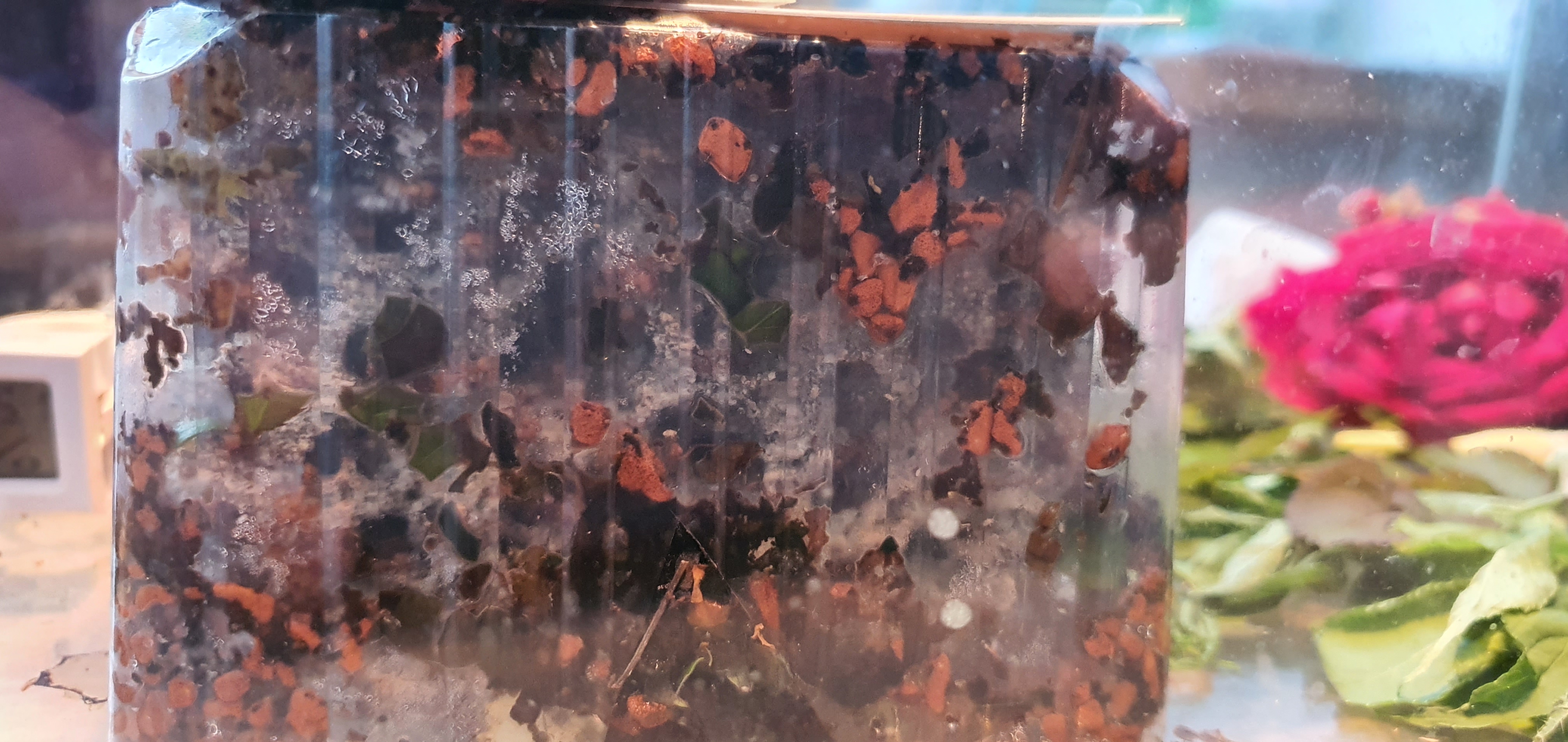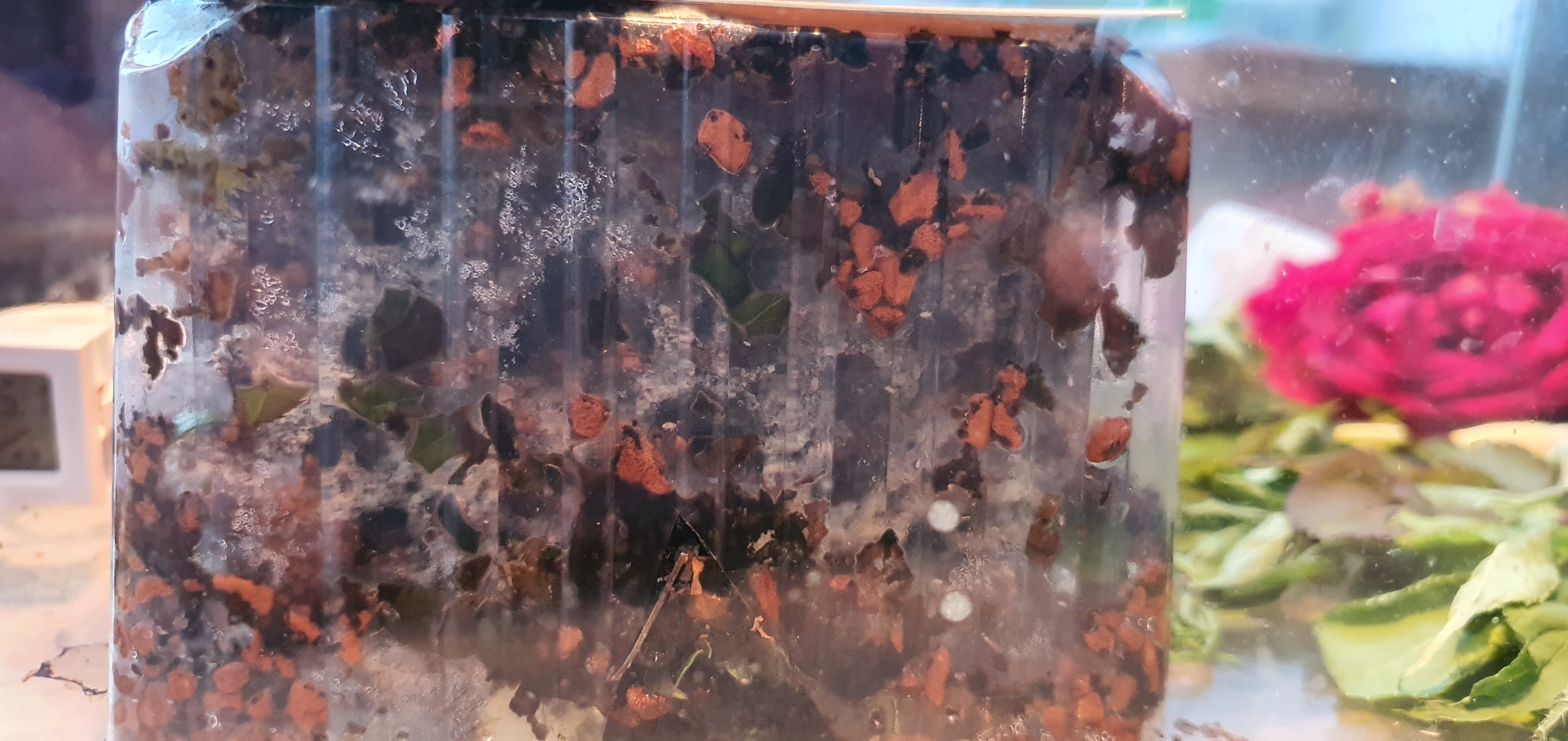 allerdings ist mir etwas aufgefallen und zwar habe ich ja über dem Pilz noch eine Haube diese Haube haben die Ameisen mit seramis und blättern zugebaut.