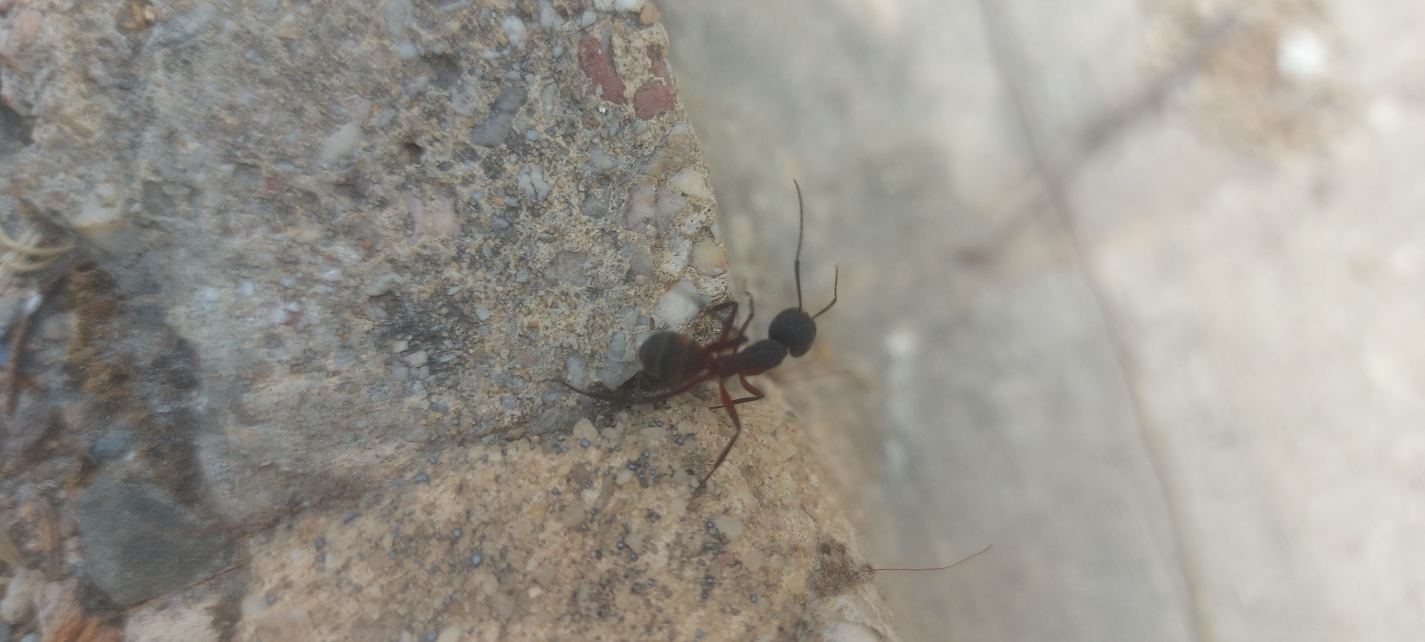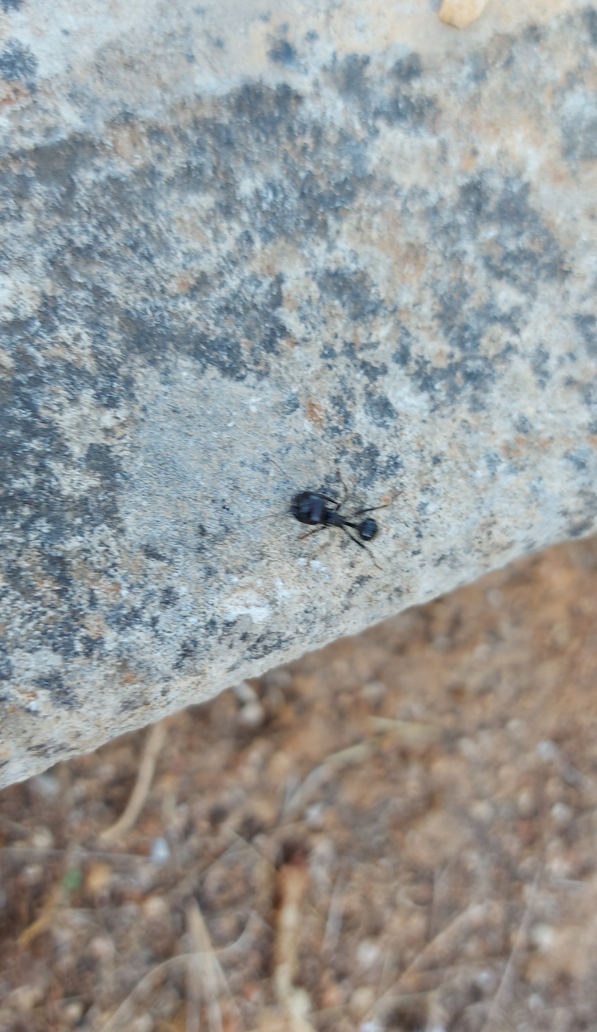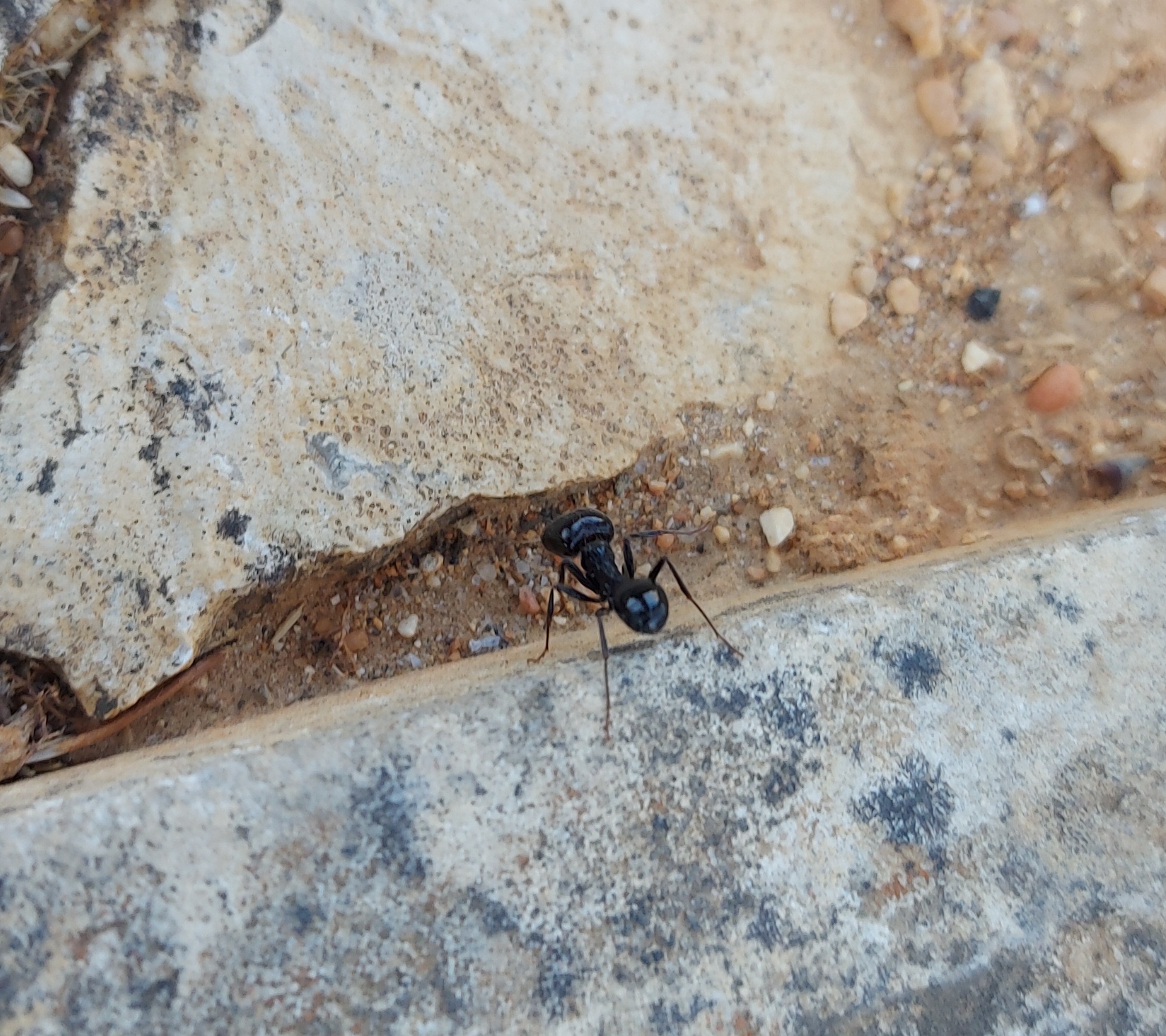Ich habe auch eine Königinn gesehen , ziemlich groß (~ein bischen größer als Messor barbarusköniginnen ) . Sie war schwarz mit langen beinen und weniger stämmig als Messor königinnen . Es könnte auch eine Camponotus art sein.