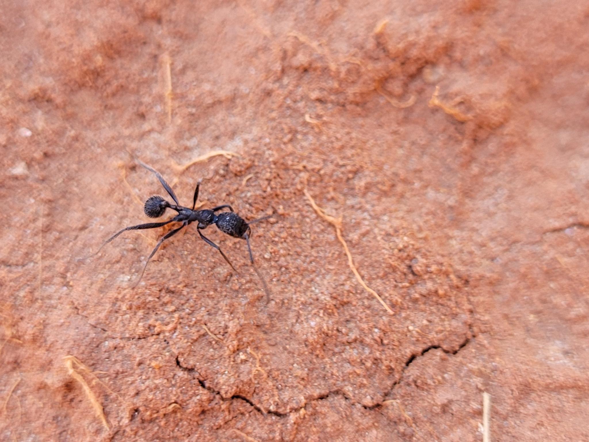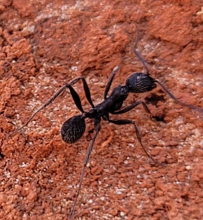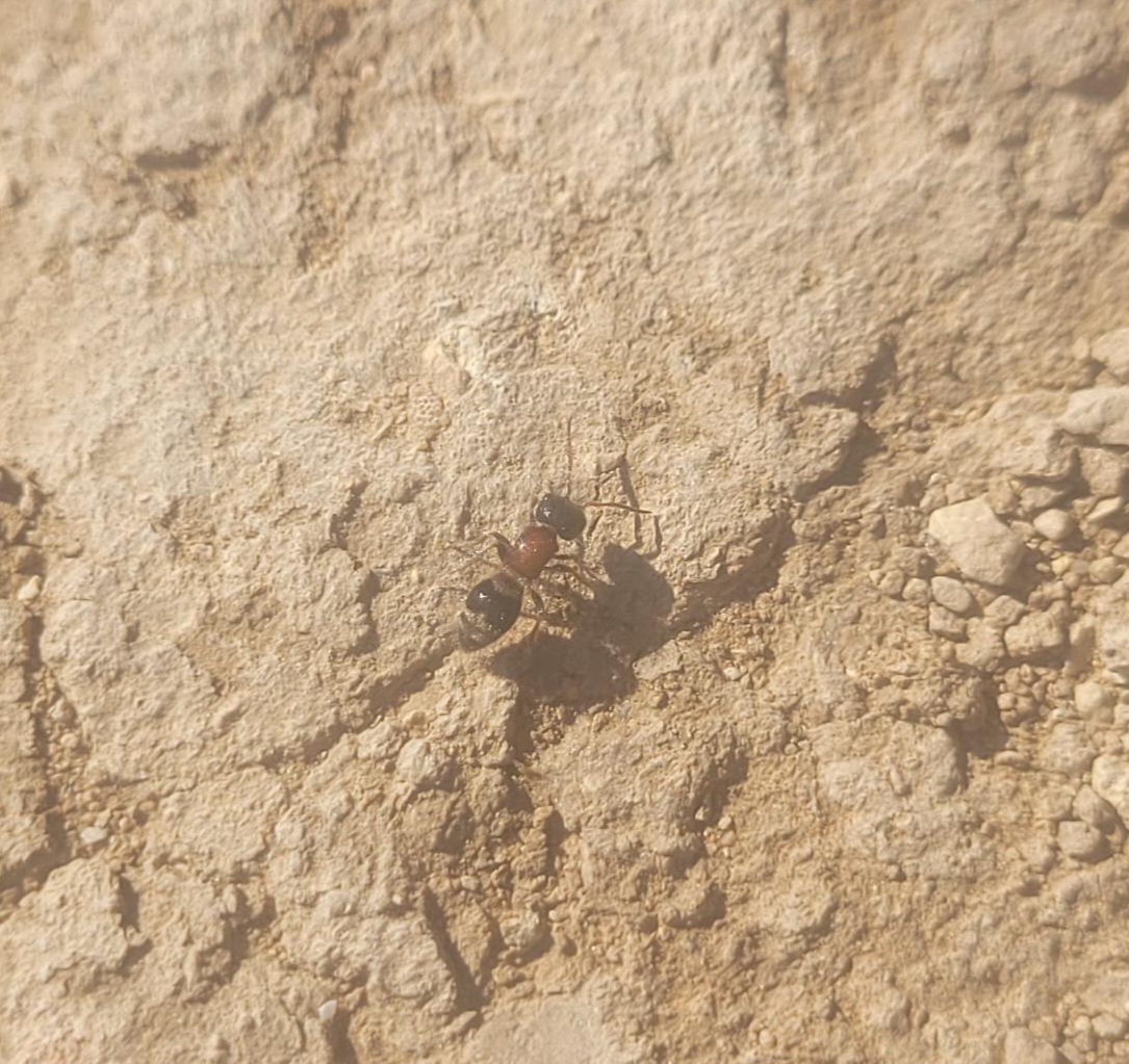 Ich habe auch eine Königinn gesehen , ziemlich groß (~ein bischen größer als Messor barbarusköniginnen ) . Sie war schwarz mit langen beinen und weniger stämmig als Messor königinnen . Es könnte auch eine Camponotus art sein.