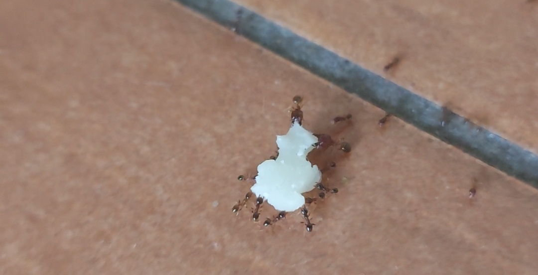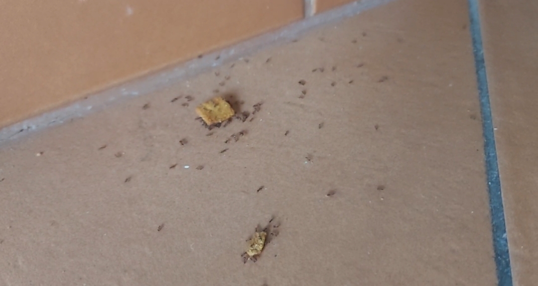 Heute morgen bin ich zu sehr großen Ameisenstraßen in meinem Hotelzimmer aufgewacht , sie haben alle möglichen Krümel eingesammelt und weggetragen .