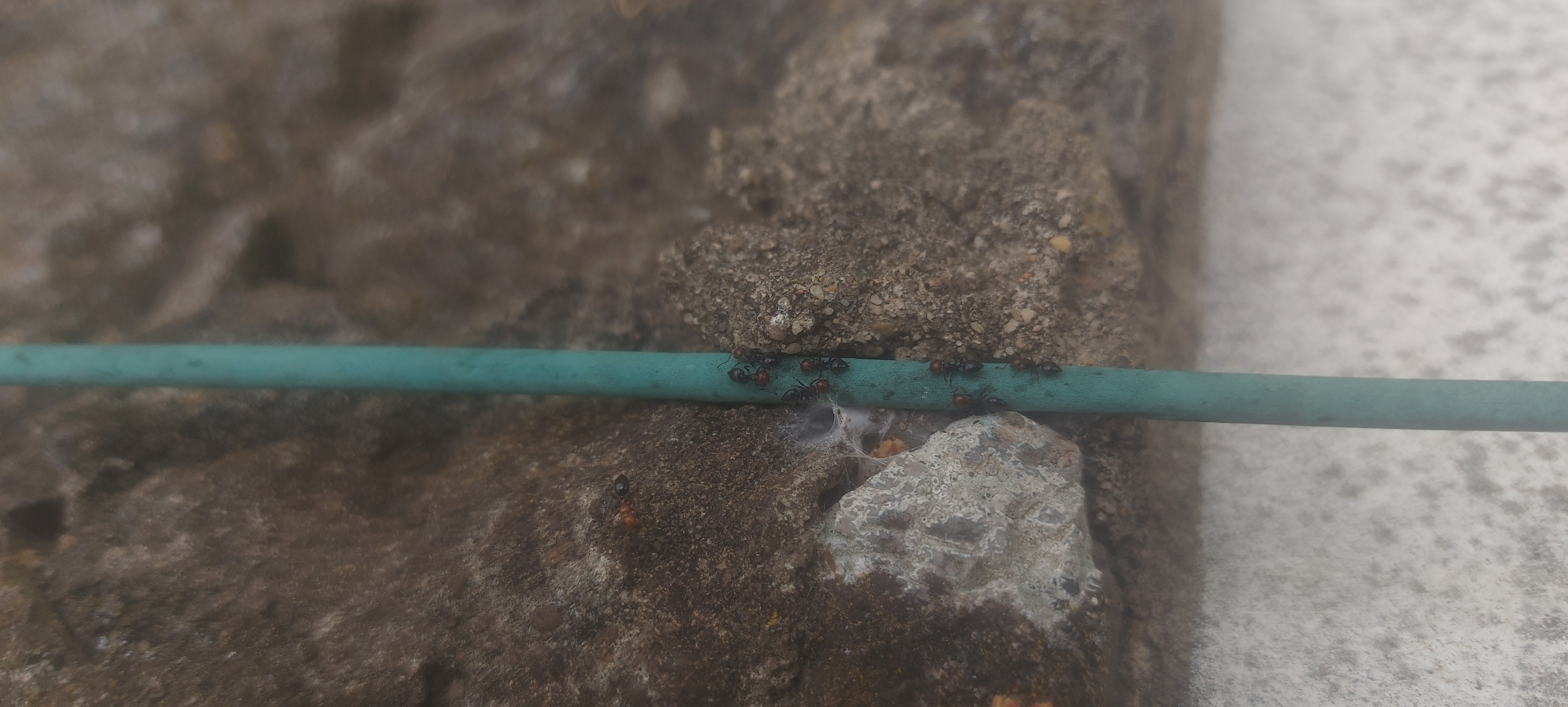 Als letztes habe ich noch eine kleine Ameisenstraße über einen Draht gesehen .