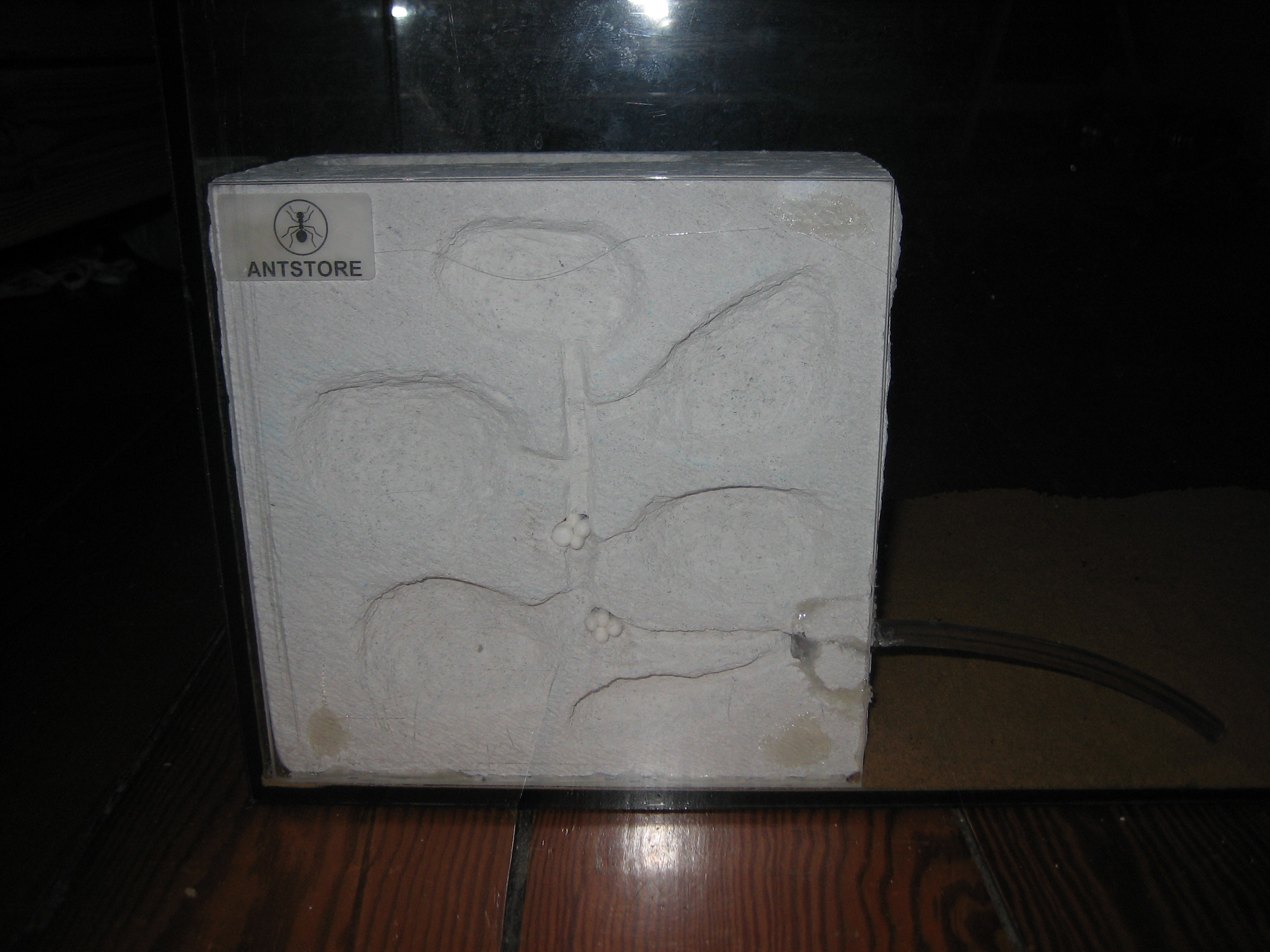 bild drei zeigt das formi in der Arena, glaubt ihr, dass die ameisen sich an dem nach unten gebogenen schlauch stören. ich hab etwas sand lehm gemisch auf den boden gestreut ist mehr optisch (bis ich was besseres habe) und so dünn dass sie eigentlich nich graben sollten