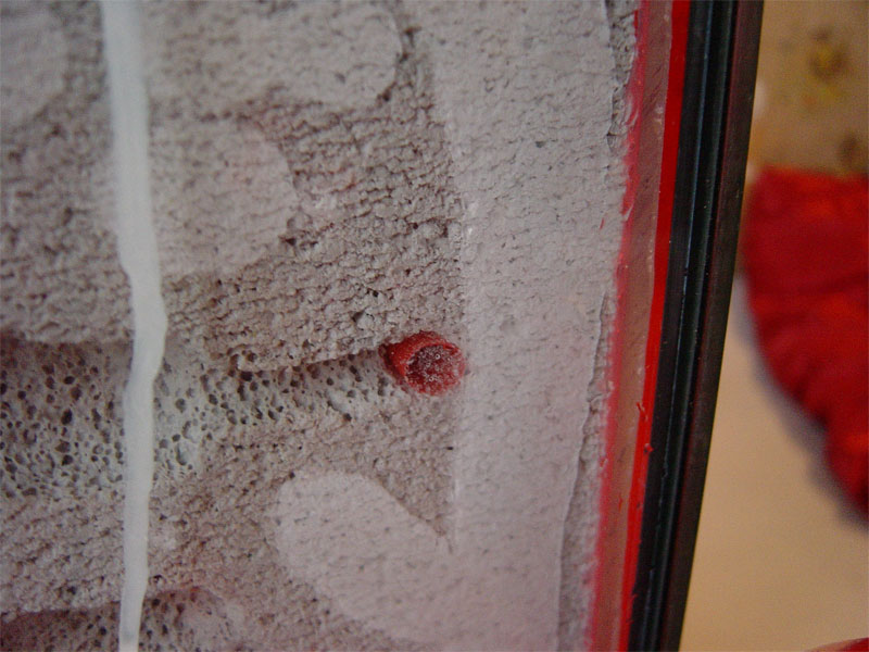 Bild 6: Die Strohhalmabsperrung von der anderen Seite. Es sind 7mm Löcher bei 6,5mm Strohhalmen. Eventuell werde ich bei meinen nächsten Ytongnest noch die Bohrkante vergipsen. Es sollte dann komplett dicht werden.