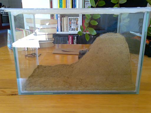 Ich wollte mal mein erstes Formicarium vorstellen. Es ist ein 20x20x30(HTB) Aquarium fĂŒr eine Formica fusca